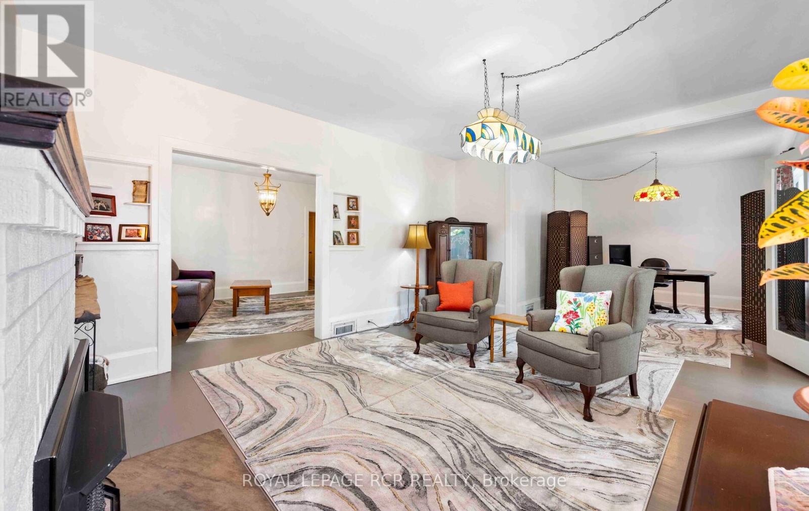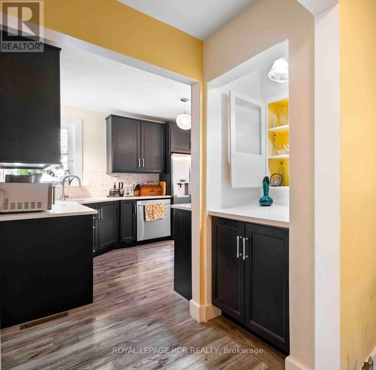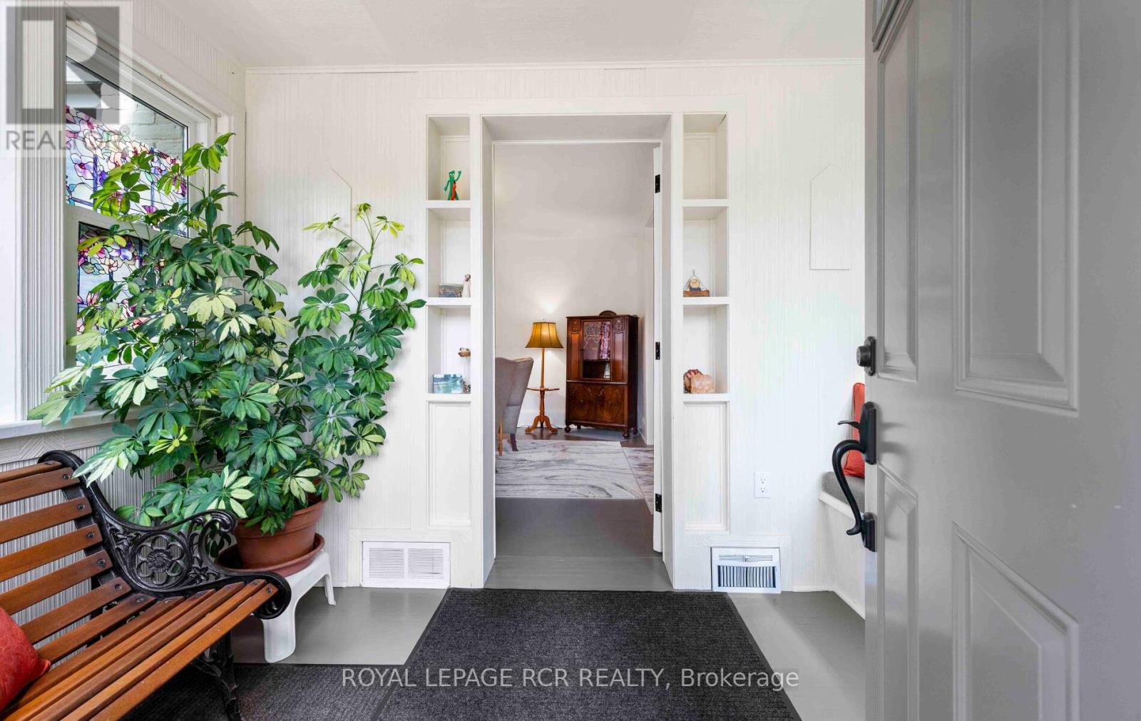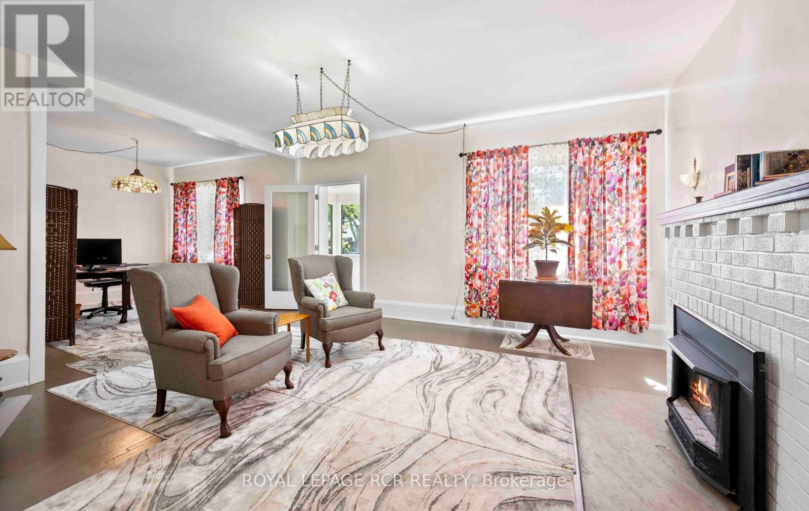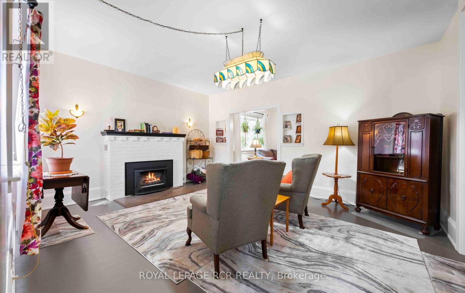 All the charm of yesteryear with the convenience of modern amenities - this 1870's classic, century bungalow is situated on an outstanding lot 54 ft. x 188 ft. Beautiful mature trees and perennial gardens, provide a private rear yard with additional/seasonal rear lane access, and a short walk to downtown shops, cafes, restaurants, Theatre and more. The bright, enclosed foyer welcomes you to a spacious one-level floor plan complete with gas fireplace in the living room, separate dining room, updated rear kitchen and breakfast room overlooking the expansive yard. Enjoy meal prep and entertaining with features such as the dedicated coffee niche/butlers pantry, breakfast bar, Quartz counters, corner sink with a view and beautiful glass door cabinets to display those special serving pieces. Large picture window overlooks a sprawling patio and yard. Convenient powder room and rear laundry/mudroom offers access to the yard. Primary bedroom features space for a king-sized bedroom and has built-in storage cabinets. The home has been well maintained and updated throughout including most new windows, front door, fenced rear yard, updated bathroom, additional attic insulation, driveway paved 2023, sealed 2025, updated paint décor throughout and wood floors painted. Over 1,600 sq.ft. of living space and the list goes on ... (id:51158)
