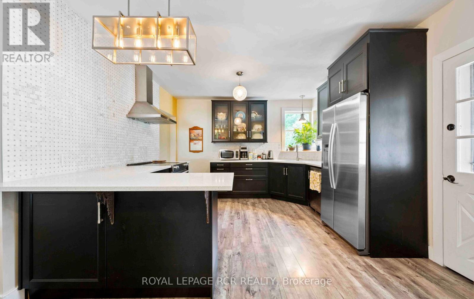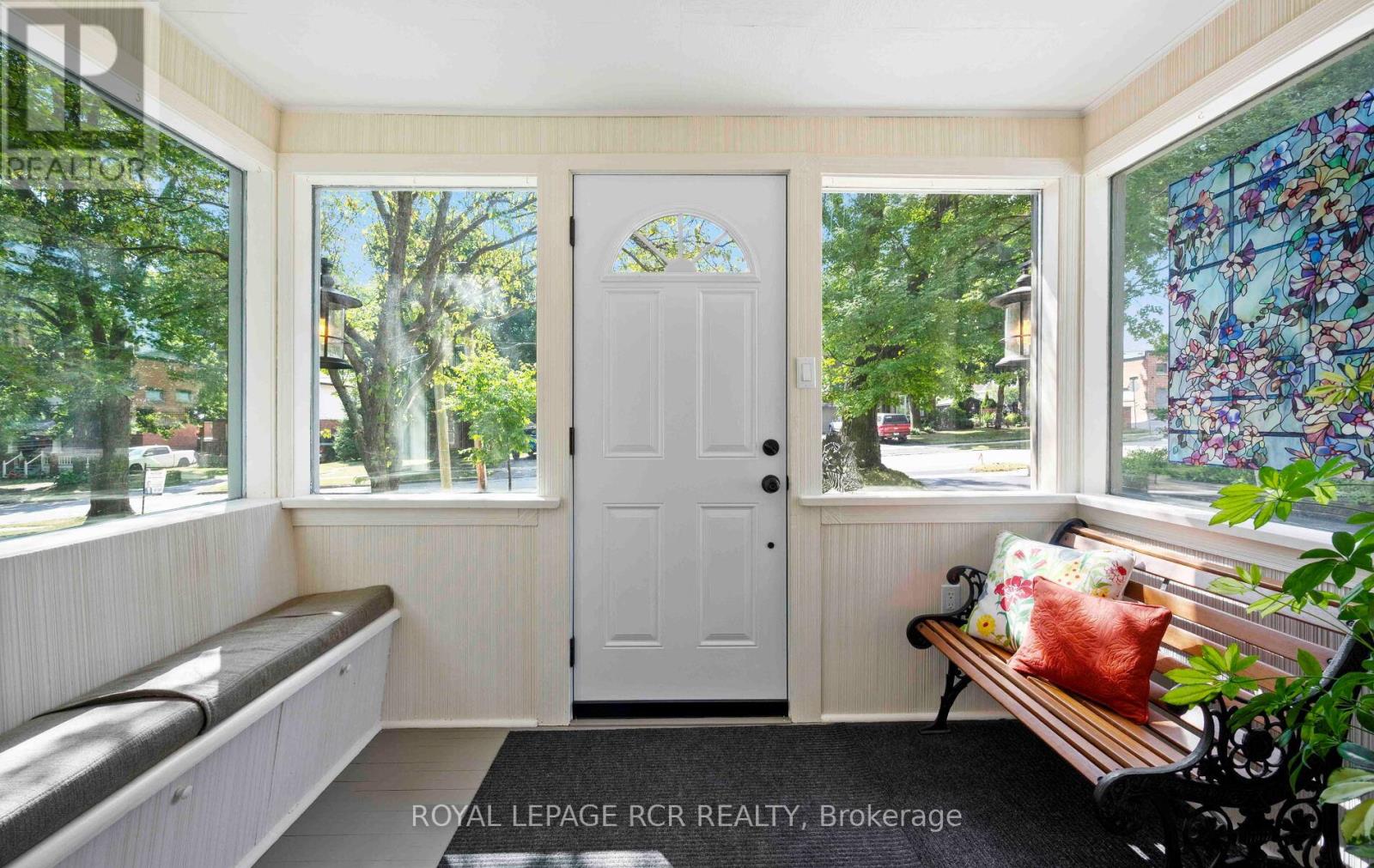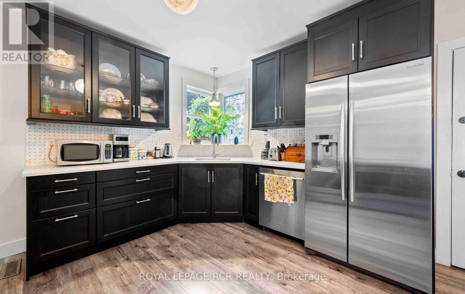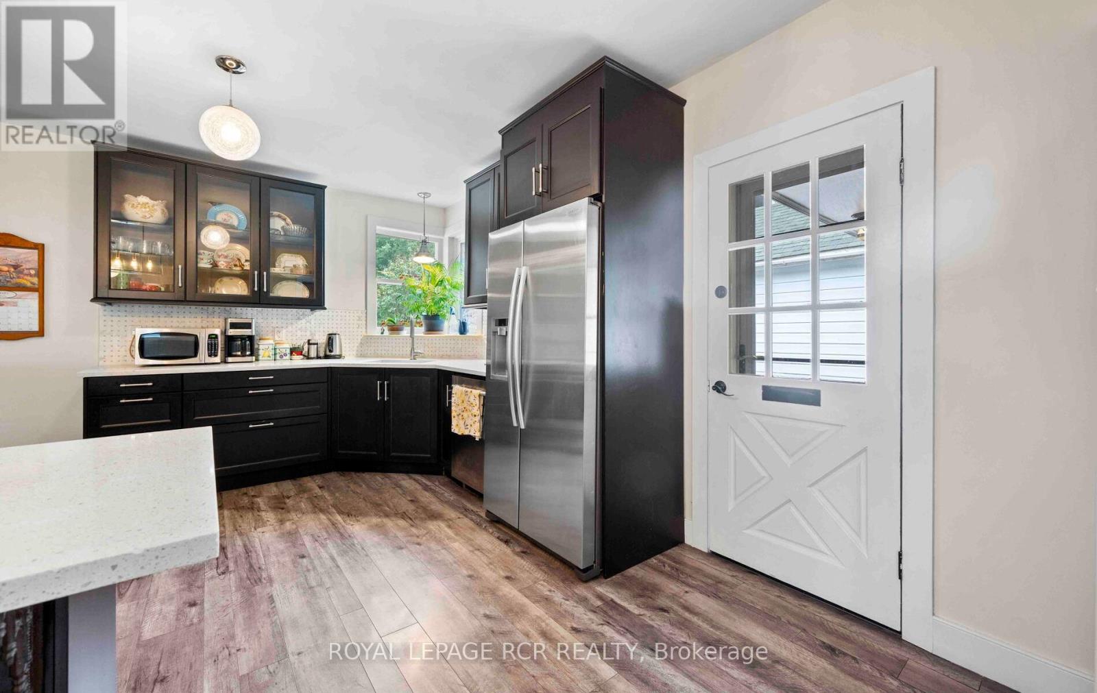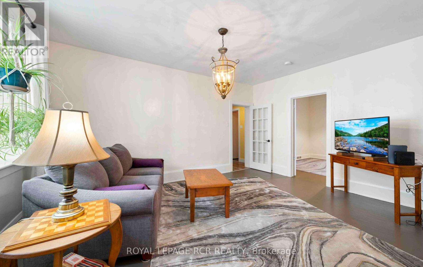 All the charm of yesteryear with the convenience of modern amenities - this 1870's classic, century bungalow is situated on an outstanding lot 54 ft. x 188 ft. Beautiful mature trees and perennial gardens, provide a private rear yard with additional/seasonal rear lane access, and a short walk to downtown shops, cafes, restaurants, Theatre and more. The bright, enclosed foyer welcomes you to a spacious one-level floor plan complete with gas fireplace in the living room, separate dining room, updated rear kitchen and breakfast room overlooking the expansive yard. Enjoy meal prep and entertaining with features such as the dedicated coffee niche/butlers pantry, breakfast bar, Quartz counters, corner sink with a view and beautiful glass door cabinets to display those special serving pieces. Large picture window overlooks a sprawling patio and yard. Convenient powder room and rear laundry/mudroom offers access to the yard. Primary bedroom features space for a king-sized bedroom and has built-in storage cabinets. The home has been well maintained and updated throughout including most new windows, front door, fenced rear yard, updated bathroom, additional attic insulation, driveway paved 2023, sealed 2025, updated paint décor throughout and wood floors painted. Over 1,600 sq.ft. of living space and the list goes on ... (id:51158)