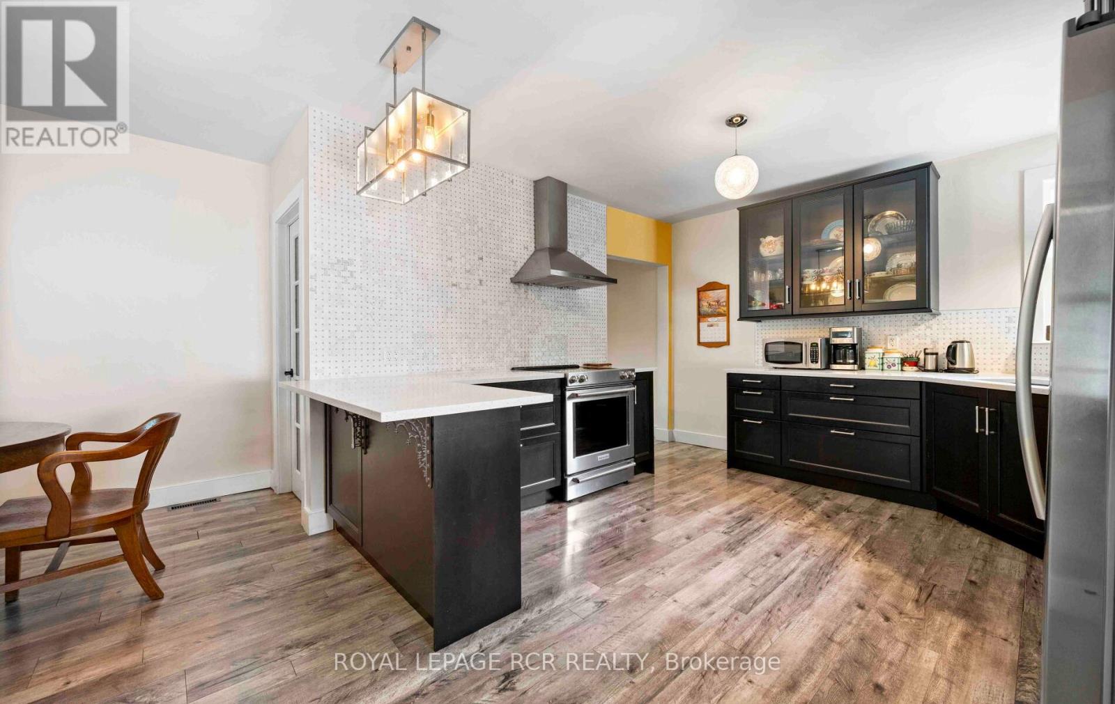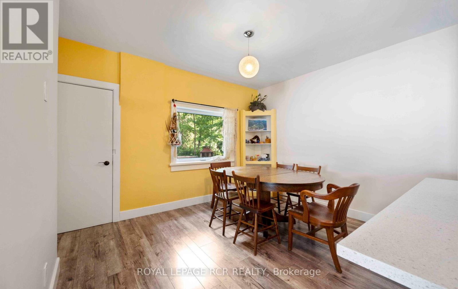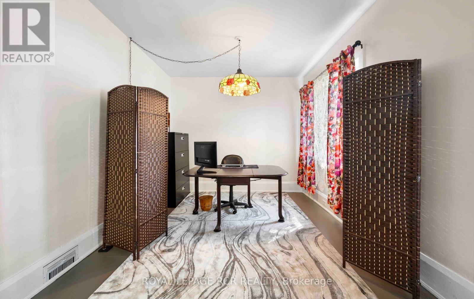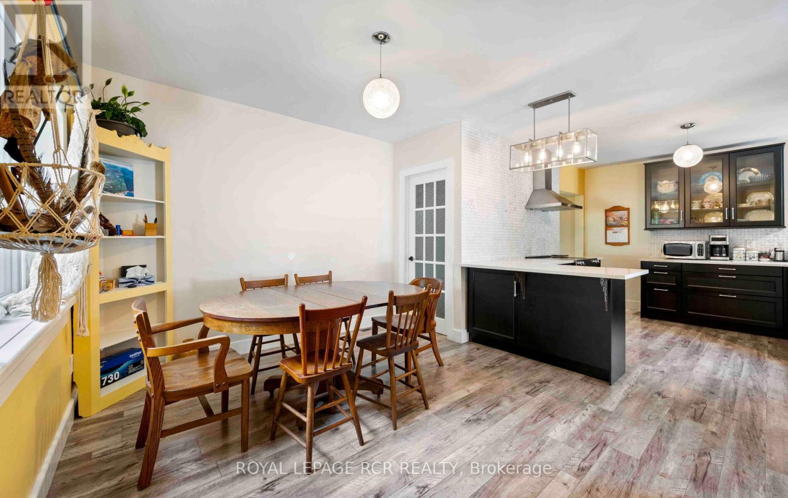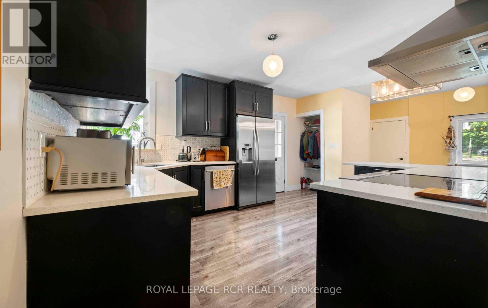 All the charm of yesteryear with the convenience of modern amenities - this 1870's classic, century bungalow is situated on an outstanding lot 54 ft. x 188 ft. Beautiful mature trees and perennial gardens, provide a private rear yard with additional/seasonal rear lane access, and a short walk to downtown shops, cafes, restaurants, Theatre and more. The bright, enclosed foyer welcomes you to a spacious one-level floor plan complete with gas fireplace in the living room, separate dining room, updated rear kitchen and breakfast room overlooking the expansive yard. Enjoy meal prep and entertaining with features such as the dedicated coffee niche/butlers pantry, breakfast bar, Quartz counters, corner sink with a view and beautiful glass door cabinets to display those special serving pieces. Large picture window overlooks a sprawling patio and yard. Convenient powder room and rear laundry/mudroom offers access to the yard. Primary bedroom features space for a king-sized bedroom and has built-in storage cabinets. The home has been well maintained and updated throughout including most new windows, front door, fenced rear yard, updated bathroom, additional attic insulation, driveway paved 2023, sealed 2025, updated paint décor throughout and wood floors painted. Over 1,600 sq.ft. of living space and the list goes on ... (id:51158)