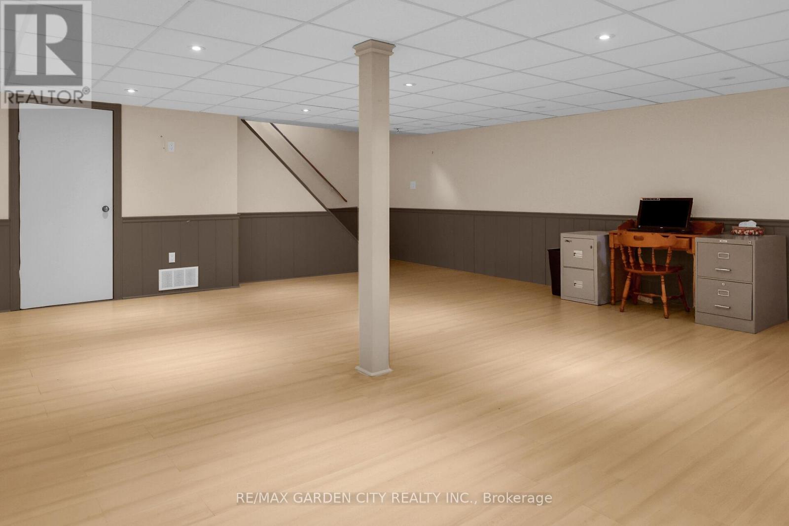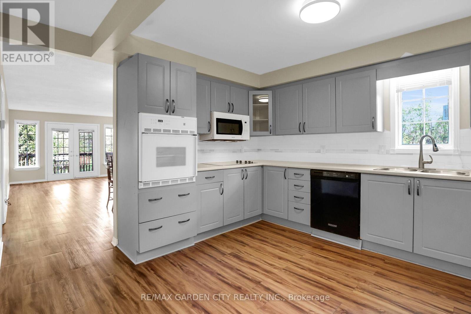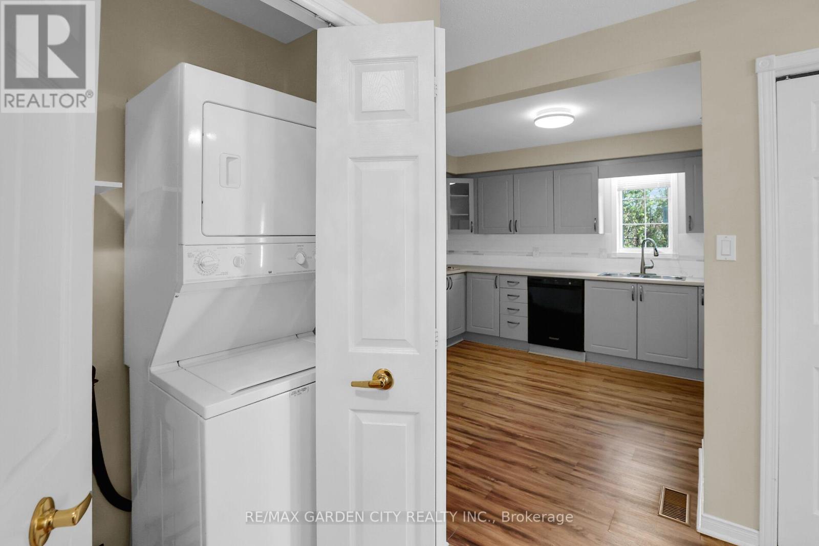 $275 MonthlyFantastic end-unit in the sought-after adult community of West-Li Gardens! This beautifully maintained end-unit bungalow offers exceptional value in a prime location, just a short stroll from town amenities. Enjoy the convenience of visitor parking right next door and a spacious side yard exclusive to end units. Featuring easy-care laminate flooring throughout and refinished kitchen cabinets, this home is move-in ready. The bright and welcoming living room includes a cozy fireplace and garden doors that open to a peaceful deck are perfect for relaxing or entertaining. The main floor layout offers everything on one level, including 1.5 baths and two bedrooms, with the second bedroom easily adaptable as a home office or den. A built-in oven (installed April 2015) adds modern functionality to the kitchen. Convenient main floor laundry and inside access to the single car garage. Downstairs, the finished lower level boasts a massive recreation room and a versatile workshop area complete with counters and storage cabinets ideal for hobbies or projects. Dont miss this opportunity to own in a friendly, well-maintained community! (id:51158)