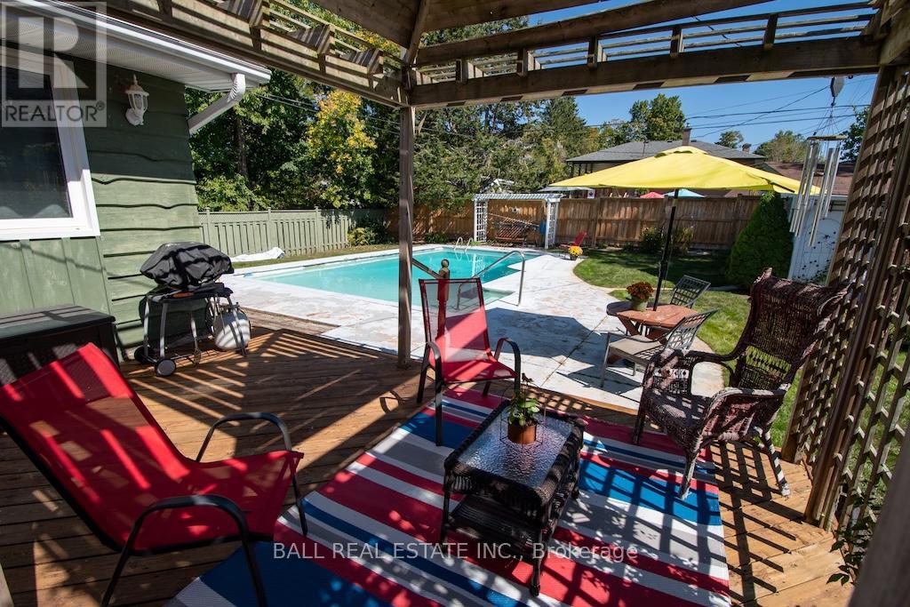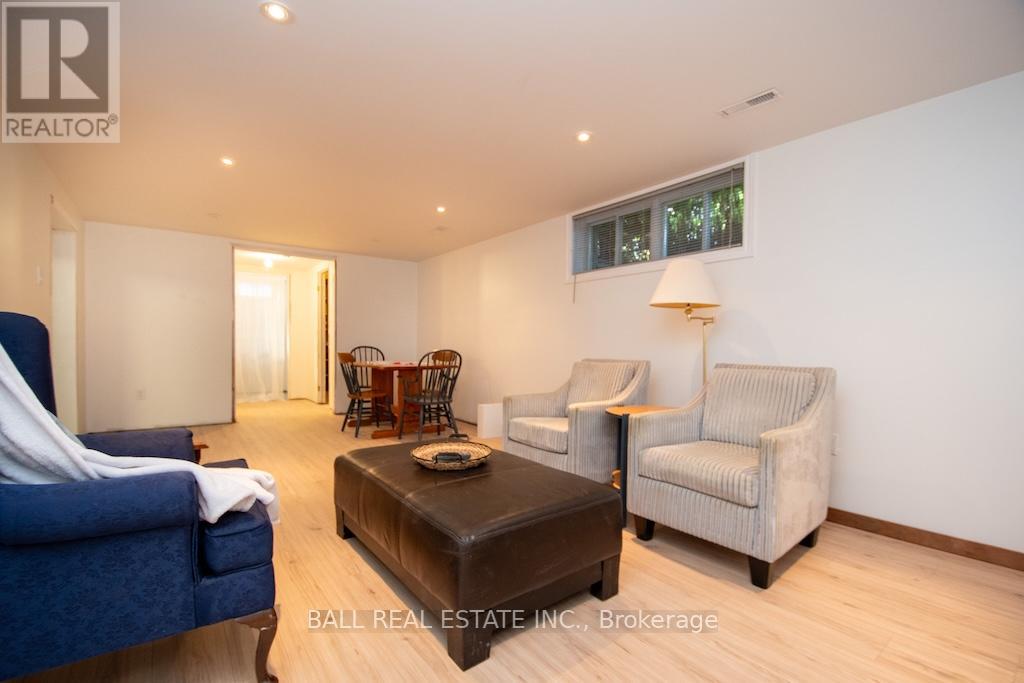 Solid Brick Bungalow in the Quaint Village of Lakefield. Charming solid brick bungalow located in the heart of the Village of Lakefield. The main floor offers 3+1 bedrooms, a spacious living/dining room, kitchen, and a 4-piece bathroom - all with beautiful hardwood flooring throughout. Enjoy your morning coffee on the inviting covered front porch.The recently updated lower level features a large family room, 2-piece bathroom, laundry area, storage, and a workshop. Step outside to your private backyard oasis complete with an inground pool - perfect for relaxing or entertaining. Conveniently located within walking distance to two elementary schools and all village amenities. Lakefield is a vibrant and welcoming community offering miles of walking trails, a weekly farmers market, summer festivals, a marina, restaurants, hardware stores, two banks, churches, and plenty of shopping. Active local groups include the Curling Club, Legion, and Lions Club, with golf courses nearby. Additional info: Roof done in 2016. Leaf filter in 2020. Furnace installed in 2025. Washer and dryer purchased in 2025. Pool pump installed in 2025. Gas Heater for the pool was serviced in 2024 but has not been used since then. Dishwasher is not working. Seller has a service contract with Sterling Pools for the maintenance of the pool. Two sections of the fence were redone in 2023 and 2024. (id:51158)