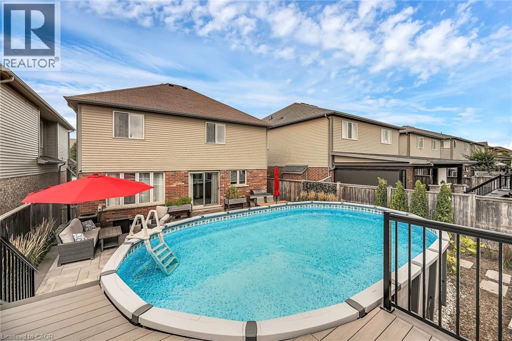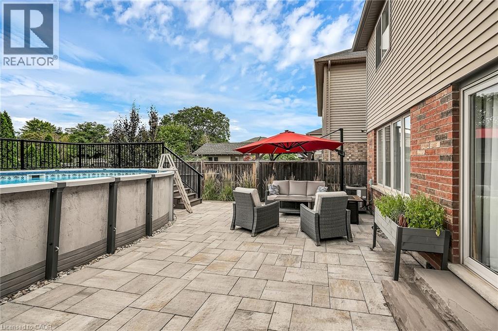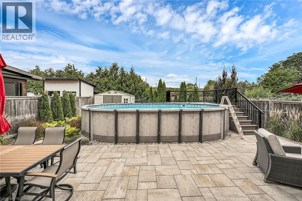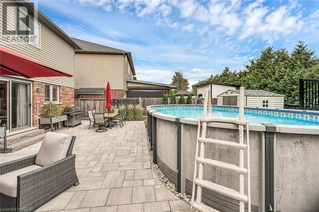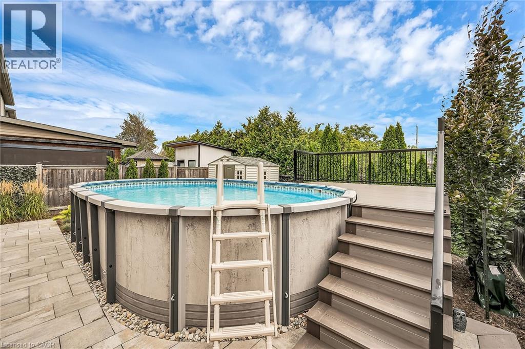 4+1 bedrooms located close to 50 Road. Easy highway access. Shopping & schools close by. Open concept with separate dining room, large kitchen island with granite and stainless appliances. New quartz counters in upstairs bathrooms. Sliding doors to a lovely updated backyard. New patio, nicely finished above ground heated salt water pool & shed. Great for entertaining. 4 bedrooms upstairs, primary has an ensuite, glass shower and walk in closet. Lower level is finished with a large laundry room, laminate flooring, electric fireplace and 5th bedroom or den. Great for a growing family. (id:51158)