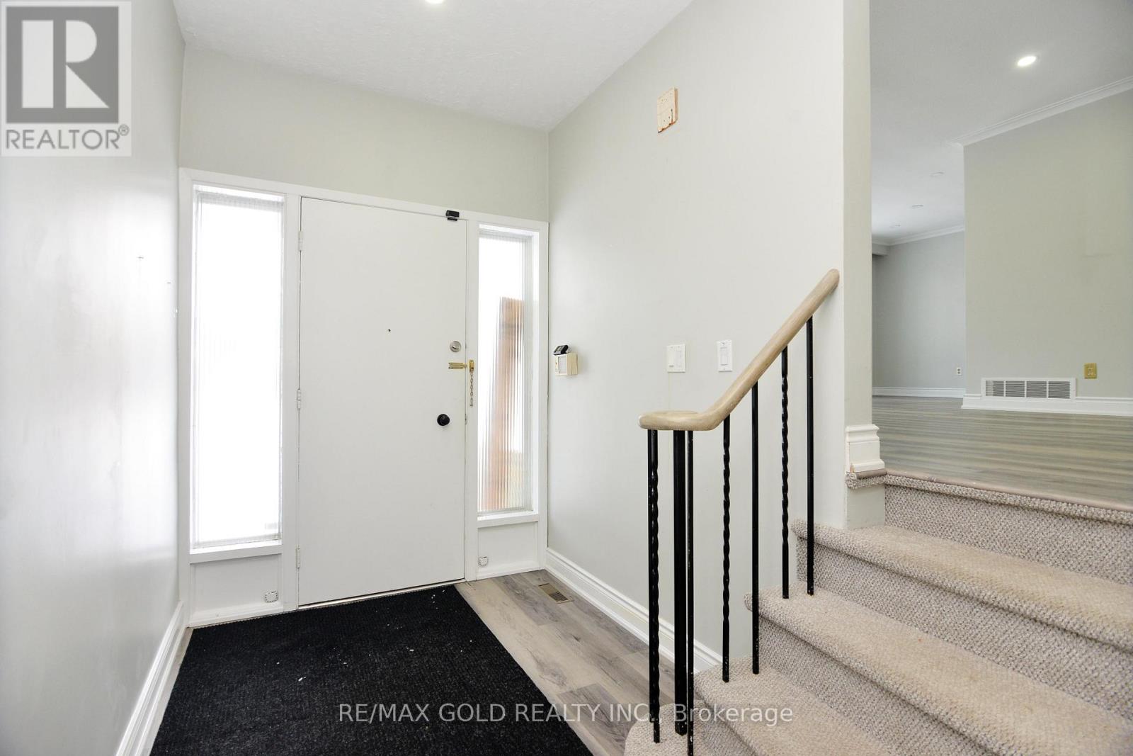 Spacious home situated on a large corner lot backing directly onto a park. The property offers three bedrooms and a bright open-concept living and dining area. Vinyl flooring runs throughout the main level, complemented by LED pot lights. The eat-in kitchen provides generous space for family meals. A separate entrance leads to a large basement with excellent potential for a future three-bedroom legal apartment. Enjoy the expansive fully fenced backyard with park views and a large storage shed, perfect for additional storage. (id:51158)