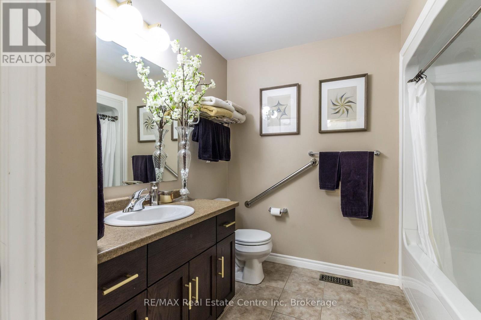 This beautifully maintained 1,629 sq. ft. bungalow, built by Wright Haven Homes, is nestled in a picturesque and peaceful neighborhood, waiting for its next proud owner. With excellent curb appeal and a double-car garage, this home offers both style and functionality. Step inside and be immediately impressed by the bright, open-concept layout and tasteful, neutral finishes throughout. The main floor features a spacious kitchen with stainless steel appliances, flowing seamlessly into the living room and dining area, ideal for entertaining or everyday living. You'll find two generously sized bedrooms, a 4-piece main bathroom, and the convenience of main floor laundry. The primary bedroom is a true retreat, complete with a walk-in closet and a luxurious 5-piece ensuite bathroom. Step outside to your private backyard oasis, featuring a large composite deck and interlock patios, perfect for relaxing with a morning coffee or hosting guests on warm summer evenings. The fully finished basement adds even more living space with large windows that bring in plenty of natural light. Enjoy a spacious rec room with a cozy gas fireplace, a third bedroom, and a versatile bonus area ideal for a home office, gym. Don't miss your opportunity to own this exceptional home in one of Elora's most desirable neighborhoods. Book your private showing today! (id:51158)