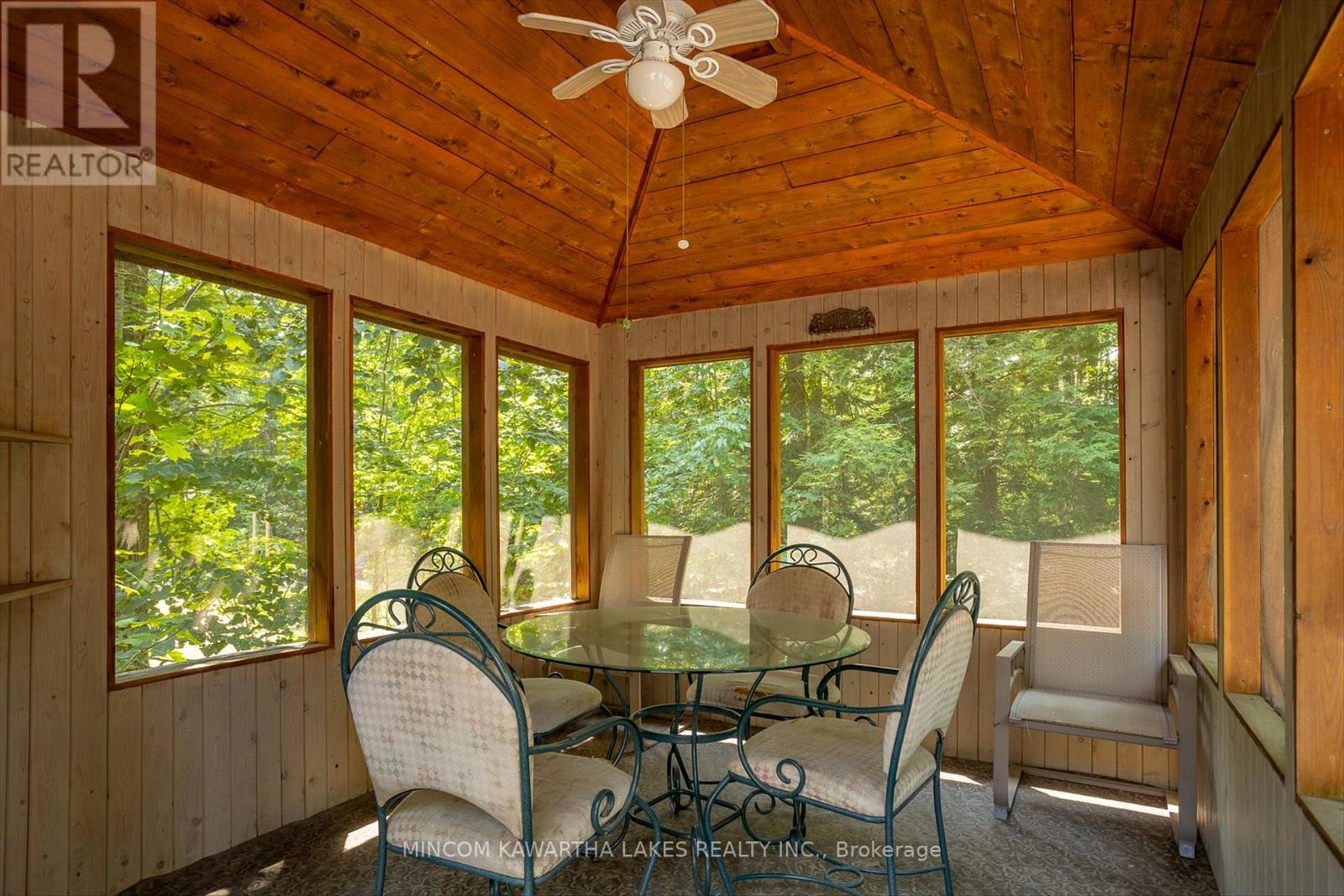 Tucked away in this peaceful hamlet of Buckhorn Estates, this beautifully maintained custom-built (1999) 3-bedroom, 2-bathroom ranch-style bungalow sits on a private, tree-lined 0.76 acre lot backing onto Crown Land - offering exceptional privacy and a true connection to nature. Relax on your spacious deck or in the enclosed gazebo while enjoying the sights and sounds of the surrounding forest or walk to your Private Deeded Access to Buckhorn Lake with boat launch and connection to the Trent-Severn Waterway. Optional boat docking (subject to availability and fee) step inside this bright and inviting home that features a generous main floor layout with three large bedrooms, a cozy sunroom with a fireplace ft scenic backyard views, a spacious living room, and a beautiful family-sized country kitchen. Ideal for multigenerational living, the fully finished lower level offers its own separate walk-out entrance, which allows ample natural light into the space, a full second kitchen, bathroom, large family room, and a flexible bonus room - perfect for in-laws, guests, or rental potential. Additional highlights include: Brand-new furnace (2025) Attached oversized single garage. Located just minutes from the charming village of Buckhorn and within easy reach of Peterborough this property is a rare find that combines nature, space, and convenience. A must-see for families, retirees, or anyone looking for a peaceful country living with lake access. (id:51158)