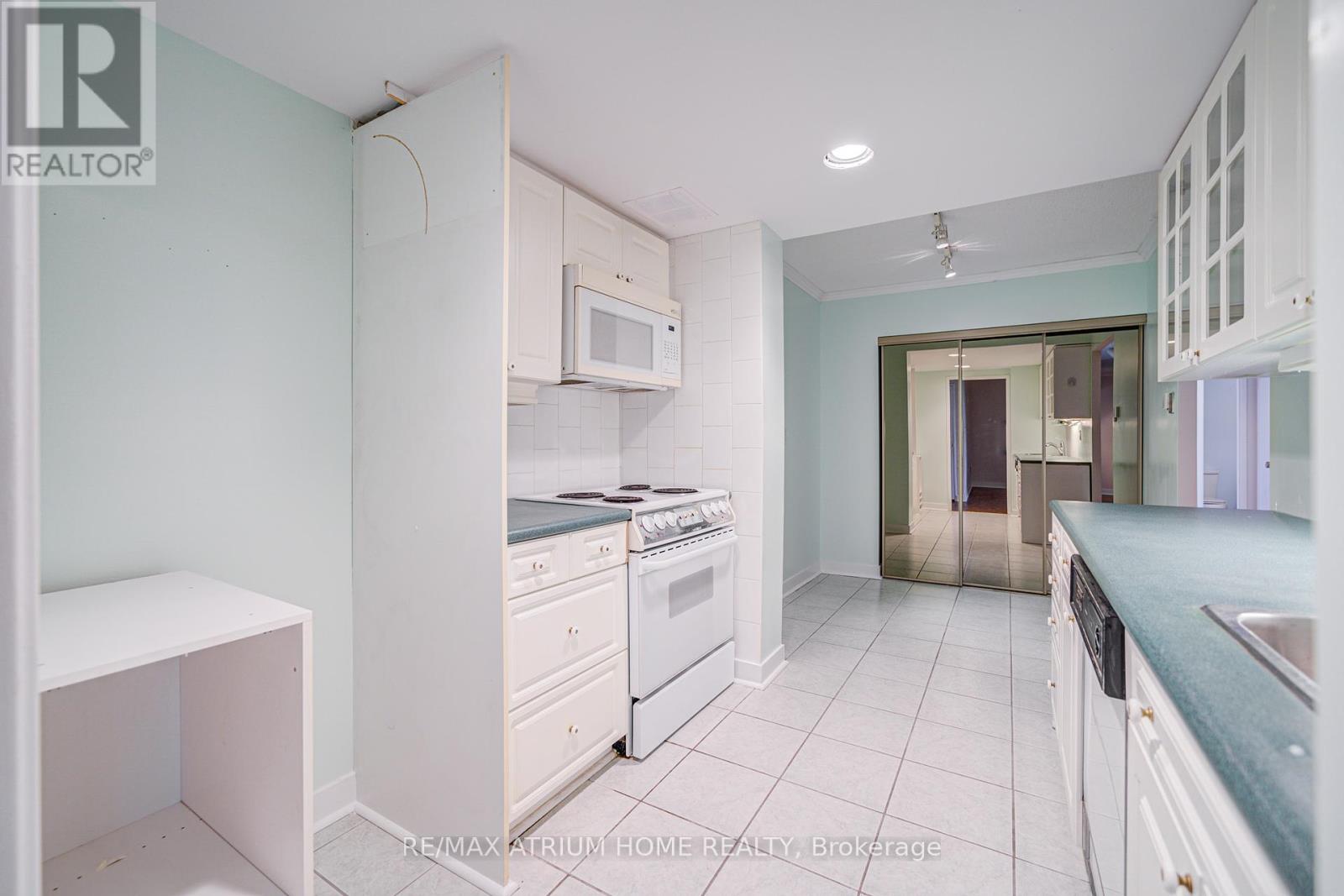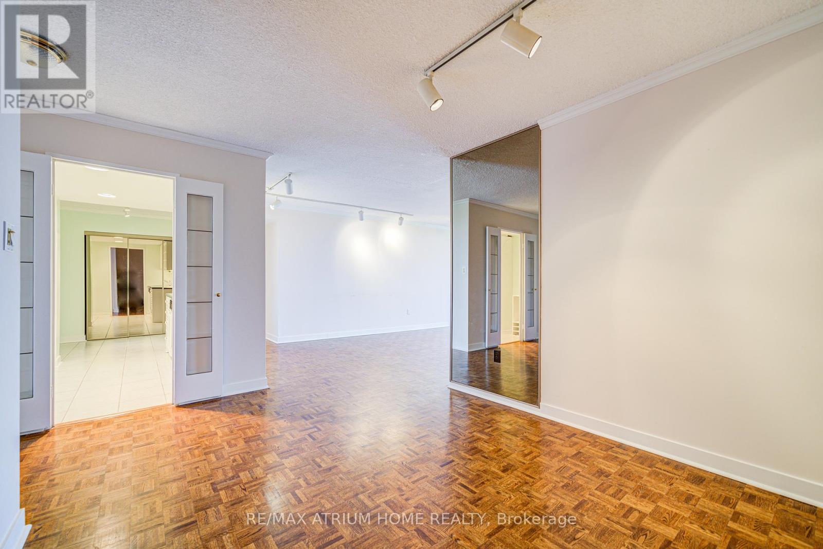 $975.34 MonthlySpacious Tridel 1+Den, 2 Bath (1199 Sqft) with West Views! Large primary bedroom with walk-in closet & balcony walk-out. Generous sized den easily used as office or second bedroom. Kitchen with French door entry and cozy breakfast area. Separate formal dining room for entertaining. Oversized living room with balcony walk-out, perfect for cozy nights in or lively gatherings. Gorgeous greenery views from the 113sqft balcony. All inclusive maintenance fee covers Hydro, Heat, Water, Cable TV, Internet, and Parking. Building amenities include Sauna, Tennis Court, Parking Garage and Security System as well as Visitor Parking, Indoor Pool, Meeting Room, Party Room, Rec Room and Gym. Unbeatable location across from Bridletown Mall, Metro, parks, TTC, and minutes to Hwy 404. Seller/listing brokerage does not warrant the accuracy of any dimensions; buyer/buyers agent to verify all measurements, maintenance fee, and taxes. (id:51158)