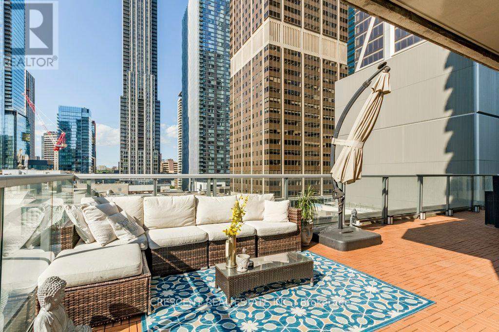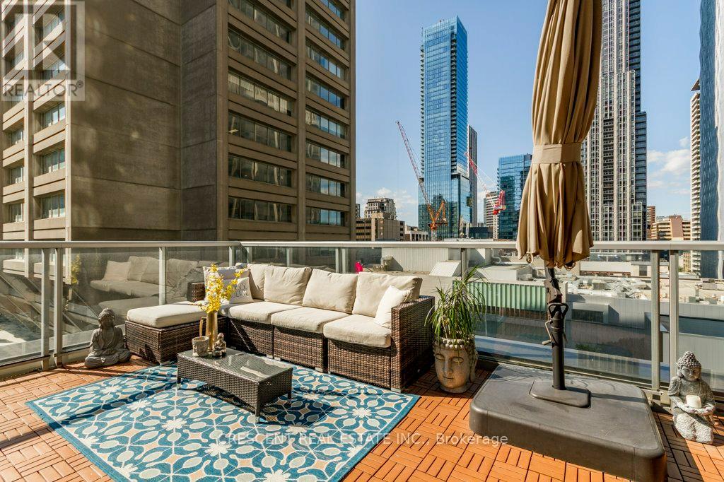 Exclusive Condo for Sale in the Heart of Yorkville! 701-35 Balmuto St in Toronto, ON is a rare opportunity like no other, at the prestigious Uptown Residences, Yorkville lifestyle can be yours. Offering ~900 sq ft of interior living space and complemented by an expansive ~450 sq ft private, uncovered, sunny wrap-around terrace overlooking Bloor St W, Holt Renfrew, and Toronto's bustling downtown city life. This residence delivers a coveted indoor-outdoor experience in the heart of Toronto's downtown core. The terrace is truly a highlight, perfect for morning coffee, sunset dinners, hosting friends or simply enjoying open-air city views in privacy, creating an outdoor sanctuary within the busy city. Inside, a functional/open layout features 2 beds & 2 baths (1 ensuite), a bright living room w/large windows and w/o onto the terrace, while the renovated kitchen impresses w/updated cabinets, premium finishes & stainless steel appliances. Modernized bathrooms & new flooring in the living & dining areas enhance the fresh, stylish design. The spacious primary suite boasts a private ensuite retreat, while the 2nd bedroom offers flexibility as guest room, office, or den. Residents enjoy luxury amenities incl a fully equipped fitness center, yoga room, golf simulator, media room, social lounge, meeting space, sauna & the security of 24/7 concierge. The location is second to none, nestled in Yorkville, Toronto's most sophisticated neighborhood, surrounded by luxury boutiques, art galleries, world-class dining & cultural destinations. Eataly is at your doorstep, w/cafés, markets & everyday conveniences nearby, plus two major subway stations (Bloor/Yonge & Bay). Close to the Royal Ontario Museum, high-end Bloor St shopping & vibrant nightlife, this condo is more than a home, it's a statement of exclusivity, practicality & elegance. Don't miss your chance to own a Yorkville condo of this caliber, a true standout in today's market. (id:51158)