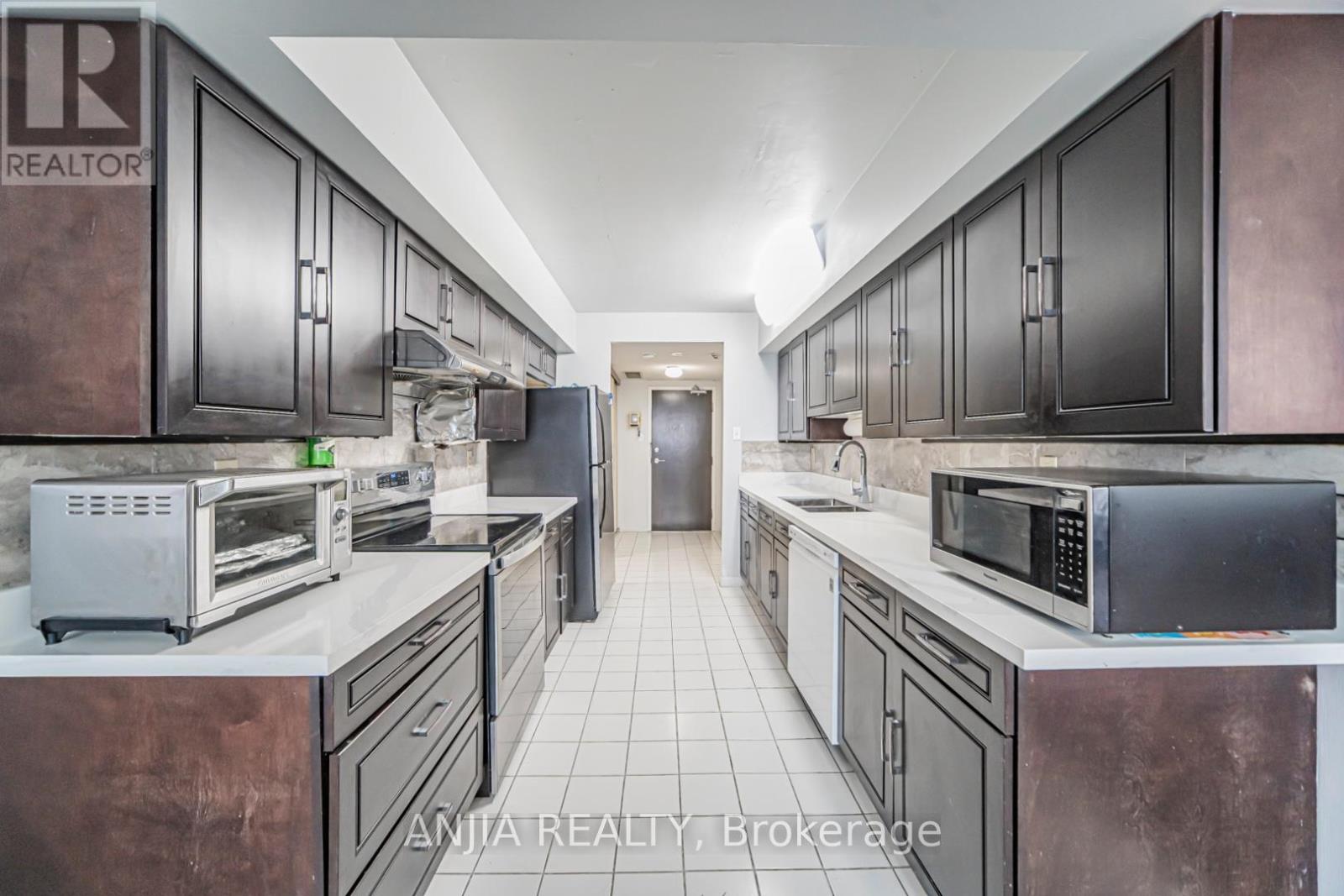 $735.89 MonthlyPrime Location Future Subway Across The Road! Spacious & Bright Open Concept 2 Split Bedroom 2 Bath Unit Featured Panoramic South Views. Large Windows. Sized Primary Bedroom With Large Walk-In Closet & 3Pc Ensuite, Walkout To Balcony. Ensuite Laundry & Storage Room. 2 Walkouts To Open Balcony. Great Amenities: Indoor/Outdoor Pool, Tennis Court, Racket Court, Gym And More! Close To STC, UofT, Hwy 401, Canadian Tire, Restaurants, Groceries, TTC And Future Subway Station. ***Newly Laminate Floors & Newly Window Blinds & Newly Kitchen Quartz Countertop*** (id:51158)