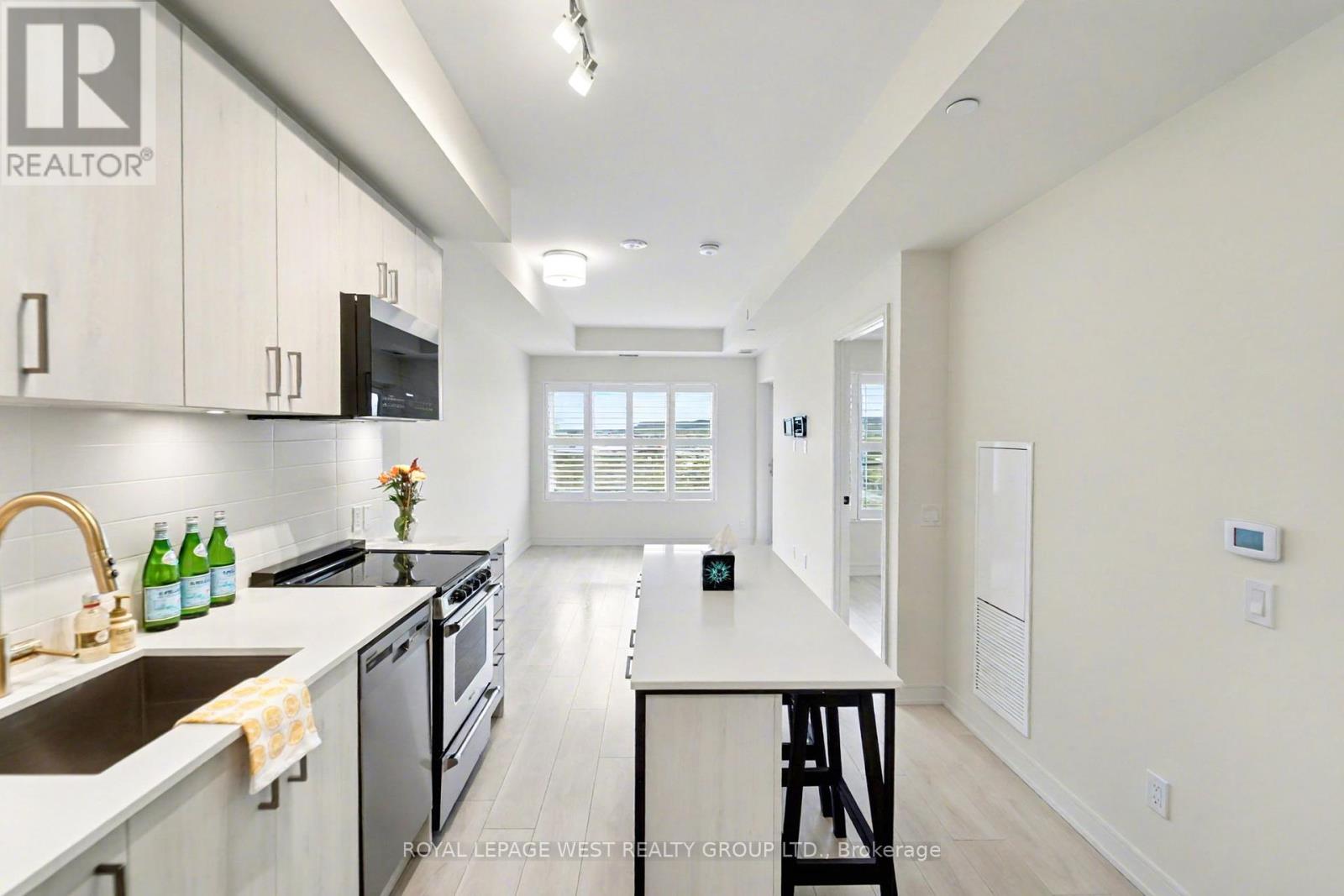 $441 MonthlyExperience stylish, maintenance-free living in this beautiful one-bedroom suite at the new Connectt Condominiums. This bright and spacious unit features an open-concept layout with large windows that illuminate the suite with natural light and showcase stunning, unobstructed views of the Milton Escarpment, a perfect setting for enjoying beautiful evening sunsets. The modern kitchen features elegant finishes, and stainless steel appliances, including a fridge, stove, dishwasher, microwave, and stackable washer/dryer. Thoughtfully upgraded with Louvered white shutters , a moveable kitchen island, upgraded ceiling and under-cabinet lighting, enhanced bathroom finishes, and custom enhancements throughout. This suite truly stands out! Residents enjoy exceptional amenities including a fitness center, rooftop terrace, outdoor pool, party room, lounge areas, and concierge service. Ideally located for families and commuters, just minutes from various supermarkets, the Milton District Hospital, scenic trails, local schools, and the Milton Go transit, with easy access to major highways. (id:51158)