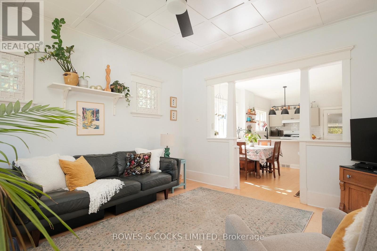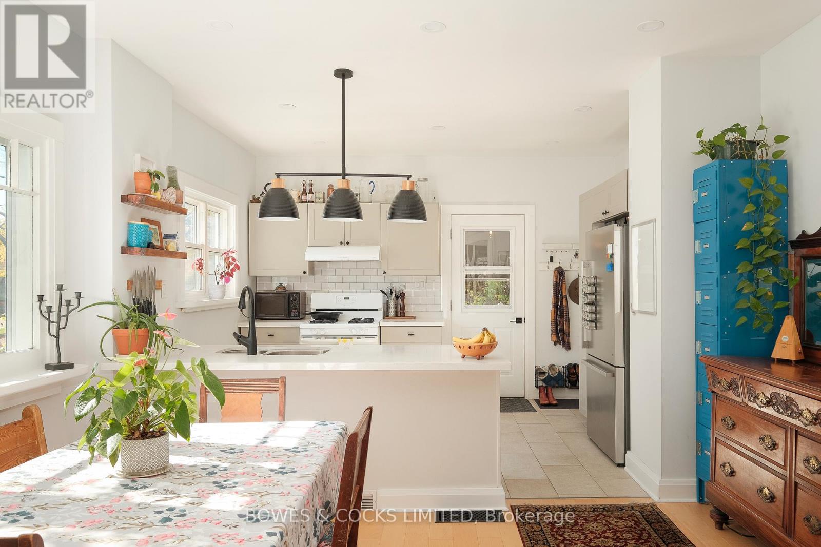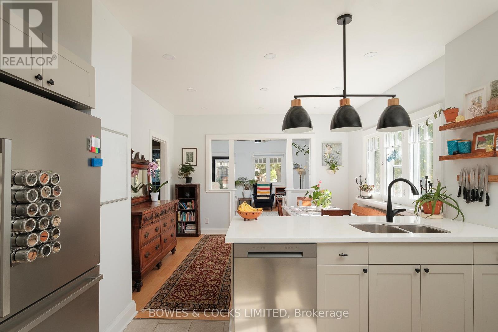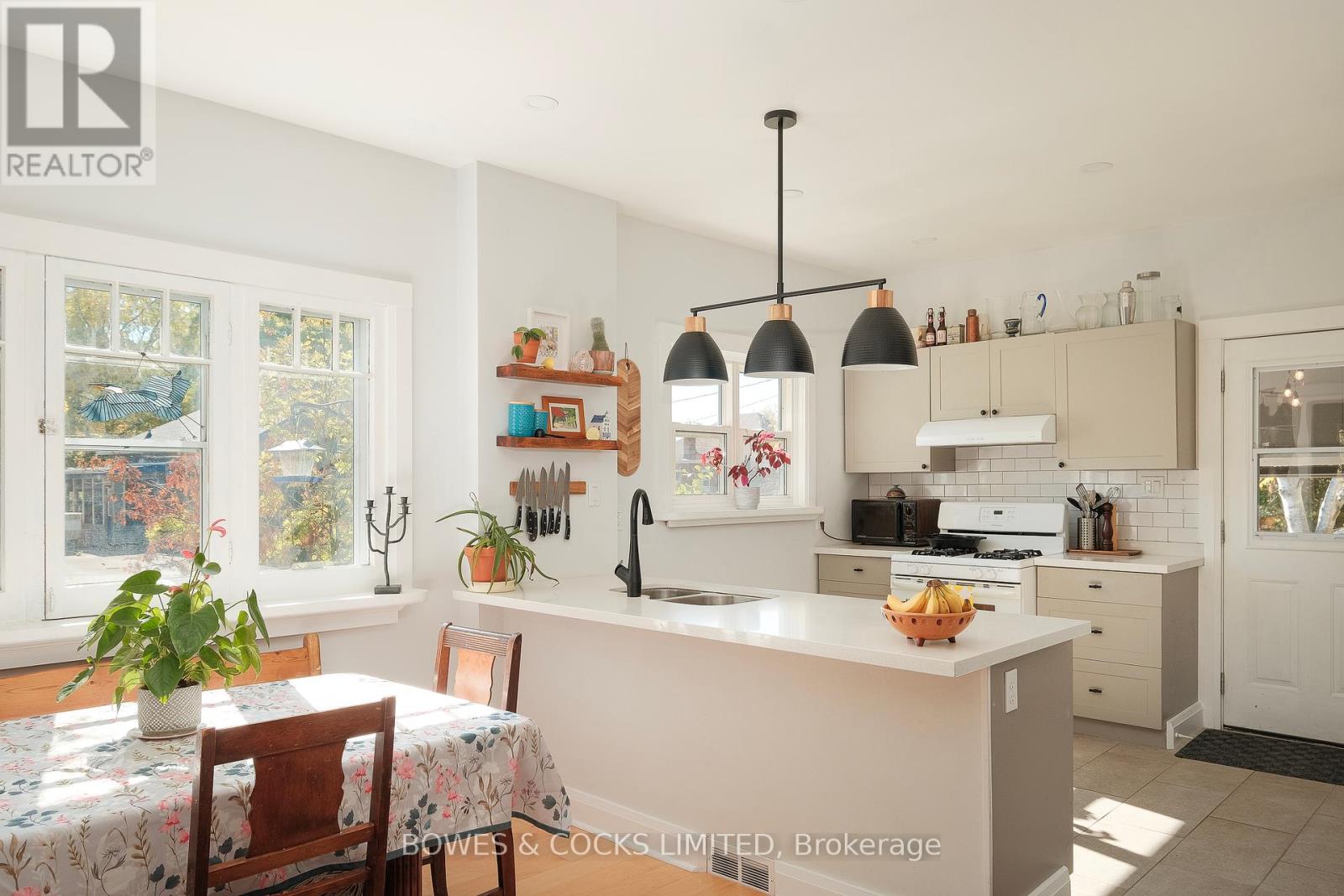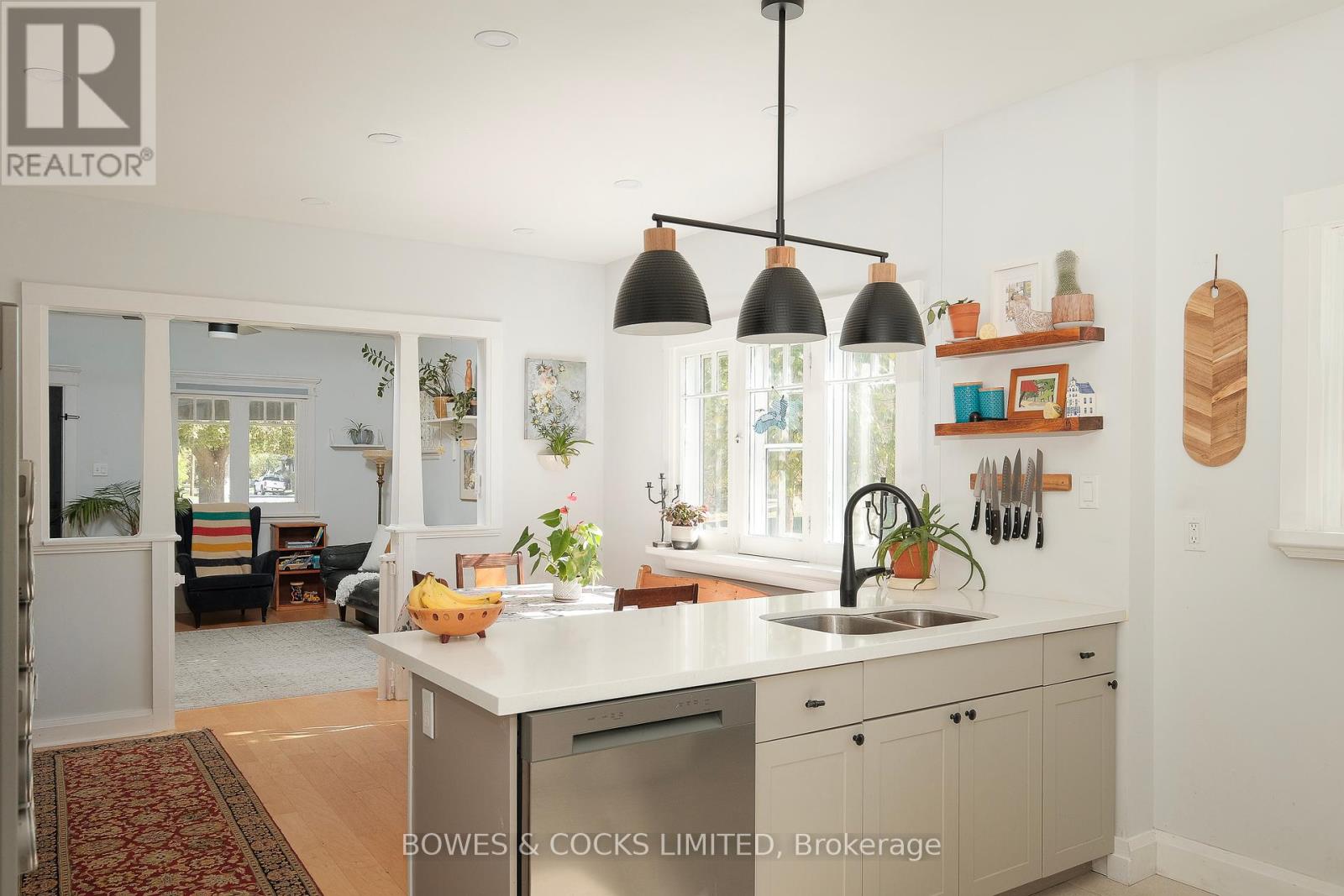 This beautifully updated South-End home blends original charm with modern comfort. The bright, open-concept kitchen, living, and dining areas feature new hardwood floors, large south-facing windows, and a natural flow ideal for daily living or entertaining. The kitchen is a highlight with gleaming quartz countertops and timeless finishes that complement the homes warm character. Original 9-foot ceilings add a sense of openness and preserve its classic appeal. Upstairs are two comfortable bedrooms, an office, and an updated bathroom with fresh modern touches. The lower level includes a newly finished bedroom perfect for guests or a cozy retreat, while the remaining space is clean, dry, and excellent for storage. Step outside and fall in love with the fully fenced backyard framed by a classic picket fence, beautiful perennial gardens, and a covered patio for year-round enjoyment. In Peterborough's desirable South End, the home is steps from the Otonabee River, parks, walking trails, the new Miskin Law Community Complex, and Farmers Market. Its a welcoming neighbourhood known for its community feel, tree-lined streets, and easy access to schools, shopping, and downtown. (id:51158)