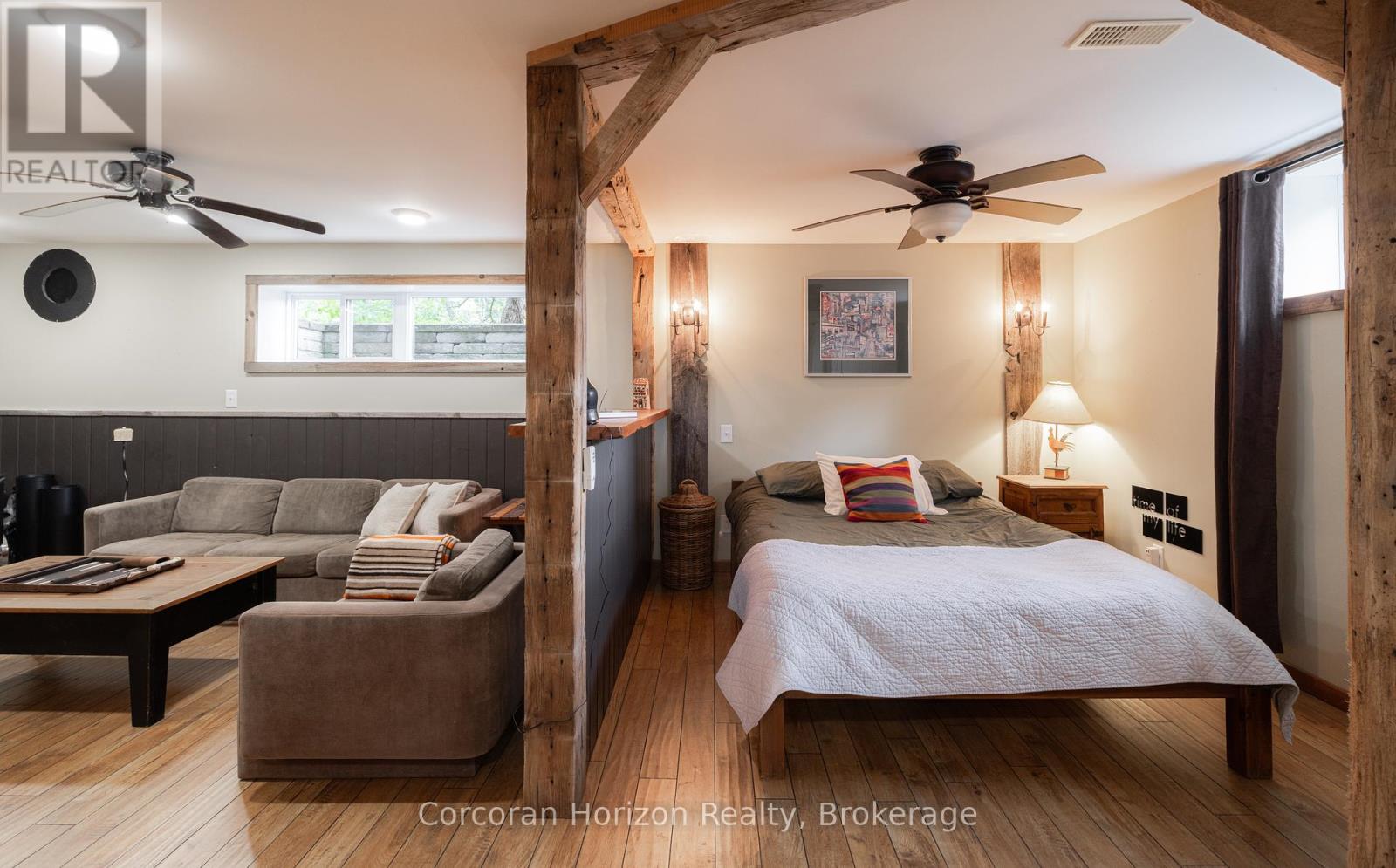 Private sanctuary in the heart of Oro-Medontea, a breathtaking 50+ acre estate where country charm meets upscale living. Beautiful 3 bdrm home with warm rustic elegance; solid wood floors, exposed brick, stone accents... Separate in-law suite, multiple out-buildings (11), and a spa-like personal resort with in-ground pool, hot-tub, sauna, pool-house, cooking and sleeping facilities. Peaceful environment, quiet tree-lined street, safe for people and pets to roam free. 12 minutes to Midland, Georgian Bay, and quaint small towns. 20 min to Barrie, and Orillia, and 1 hour to Toronto - a perfect balance of freedom, tranquility, and privacy with restaurants, shops, and healthy living activities close by. There's a loft bedroom and 2 cabins for extra guests, a 3000 sq-ft building for storage or working, plus a heated workshop, 6 horse stalls, and a 2275 sq-ft fully open 2nd floor above. The barn was rented out for weddings and workshops, and the fields were rented to farmers for income and a discounted tax. Solar panels provide approximately $5500 income/yr, and solar on the house subtracts from the billing. The 1/4 mile track attached to a commercial service entrance offers other opportunities. Fields have been chemical-free for 3 years, so they now qualify and could be certified as Organic. Whether you're housing animals, entertaining, running a business or simply enjoying the fields, beautiful mature trees, and private space, this property offers an abundance of beauty and opportunities in one of Ontario's most desirable rural communities. (id:51158)