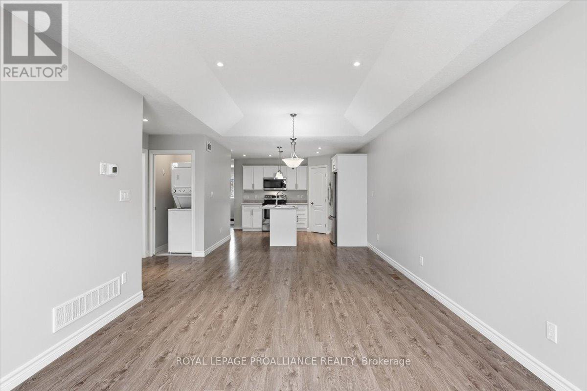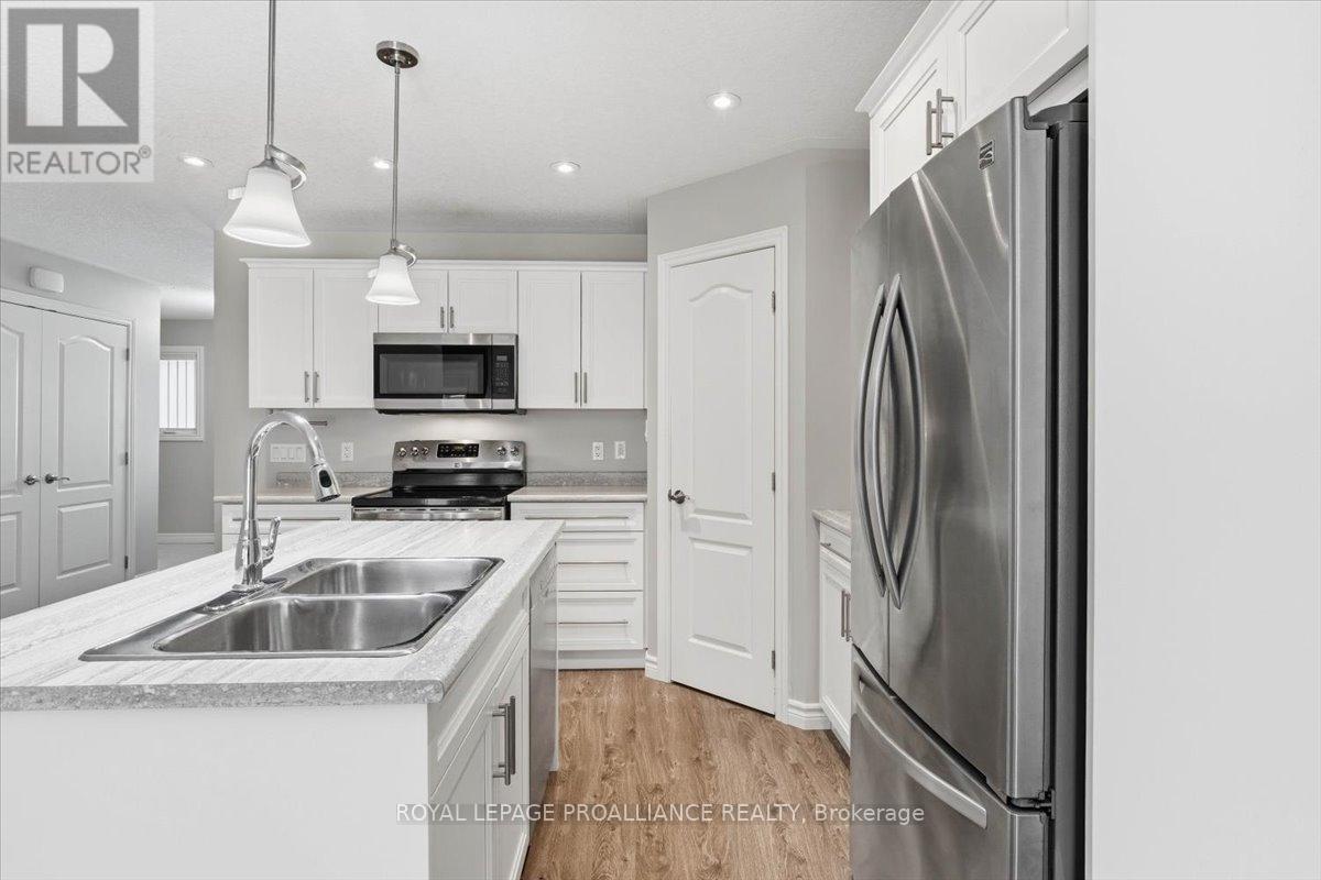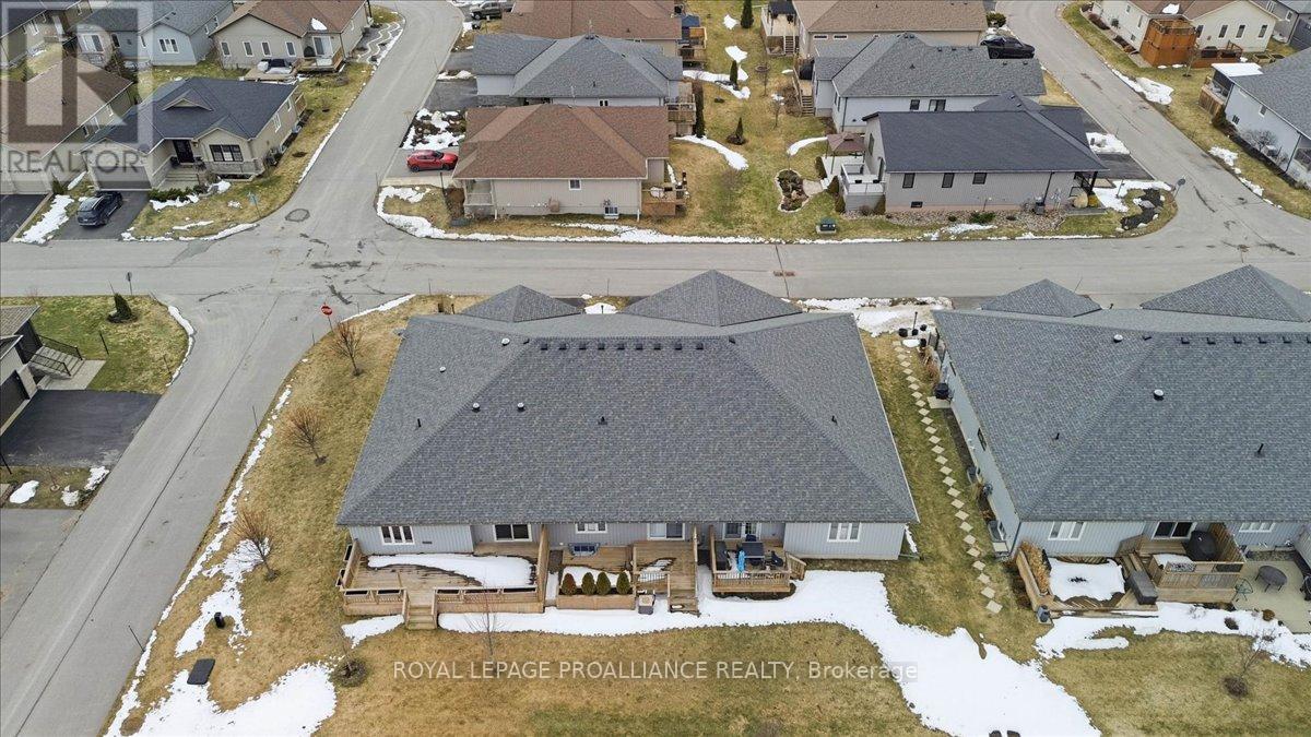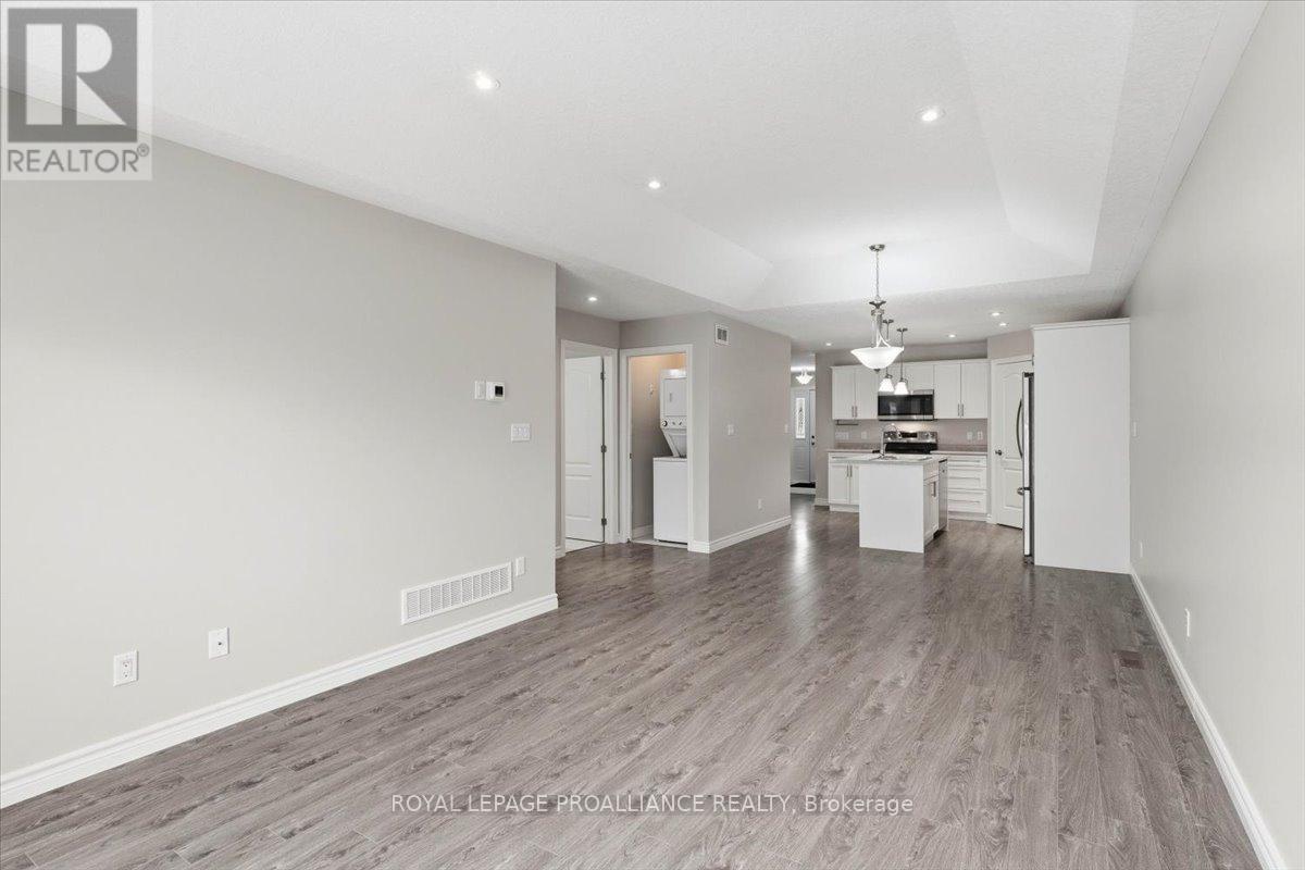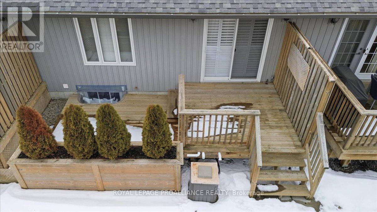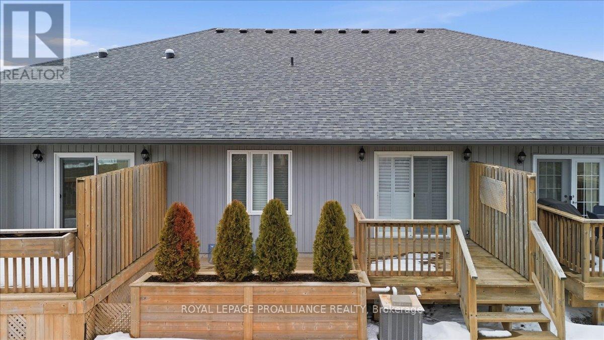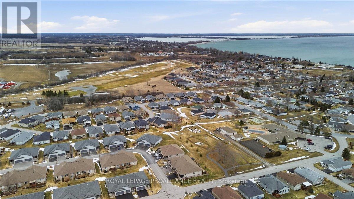 Well maintained Villa at Wellington on the Lake featuring 1375 finished area with 2 bedrooms, 2 bathrooms and a partially finished basement. This home offers new front steps in 2025, a 2 tier back deck offering privacy, freshly painted, new microwave in 2025, upgraded LVP flooring in 2025, upgraded shower heads, Danze kitchen pulldown faucet, LR California Shutters and stainless steel appliances. Move in ready for you to enjoy the lifestyle that this active adult community offers. Featuring a community rec centre, in-ground pool, tennis and pickle ball court, gym, wood working shop, billards, a gym and soo much more. Located only minutes away from downtown Wellington featuring a beach, park, the Millennium Trail, shopping, fine dining just to name a few. Short drive to numerous wineries, breweries and only 20+ minutes to Belleville. Don't miss out on this beautiful home. Common fee is $357.77 including HST paid monthly and includes garbage removal, snow removal on roads and common areas, recycling, grass cutting, rec centre and more. (id:51158)