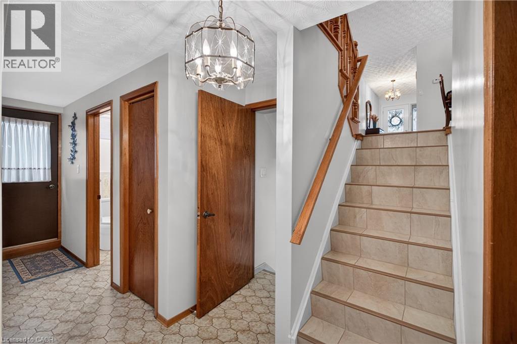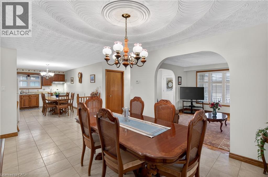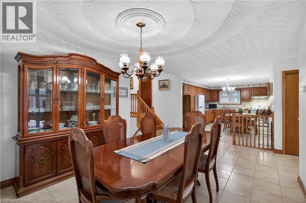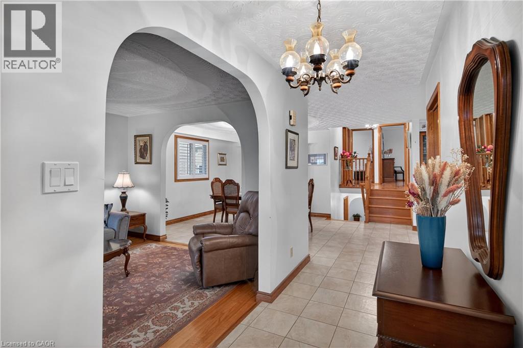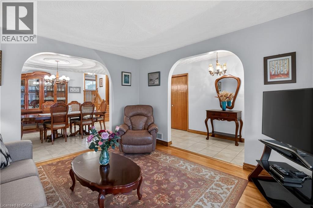 Welcome to 71 Ellington Avenue in Stoney Creek, a home lovingly cared for by its original owners. Built in 1982 and set on a generous 50 x 100 ft lot, this 4-level backsplit offers 3+1 bedrooms, 2 bathrooms, and 1,363 sq ft above grade, with a separate side entrance offering added flexibility and plenty of possibilities. A spacious front porch creates a warm first impression, leading to the front door with sidelight and into the inviting foyer, complete with tile flooring and a convenient front closet. From here, step into the bright living room featuring hardwood floors and California shutters. The living room flows seamlessly into the formal dining room with durable tile flooring and abundant natural light. The dining room connects to the spacious eat-in kitchen, complete with maple cabinetry, a built-in desk, and ample counter space. The upper level features three generously sized bedrooms, all with hardwood flooring, along with a 4-piece bathroom complete with a shower-tub combination. The primary bedroom offers comfortable proportions and ample storage. The lower level features a welcoming recreation room with a gas fireplace anchored by a classic brick mantle along with an additional bedroom or den, a 3-pc bath with walk-in shower, and convenient side entry to the backyard. The basement level offers a second kitchen, additional living space, cold storage, and a utility room with access to the expansive 1.5-car garage, suitable for one vehicle with ample storage. The property also offers surface parking for 2 vehicles. The fully-fenced backyard offers plenty of green space, and an oversized garden area perfect for a vegetable garden or vibrant seasonal plantings. Located in an established Stoney Creek neighbourhood and just down the street from Ferris Park, 71 Ellington Ave offers incredible proximity to schools, shopping, and major highway access. This well-maintained home offers space, versatility, and strong pride of ownership. (id:51158)