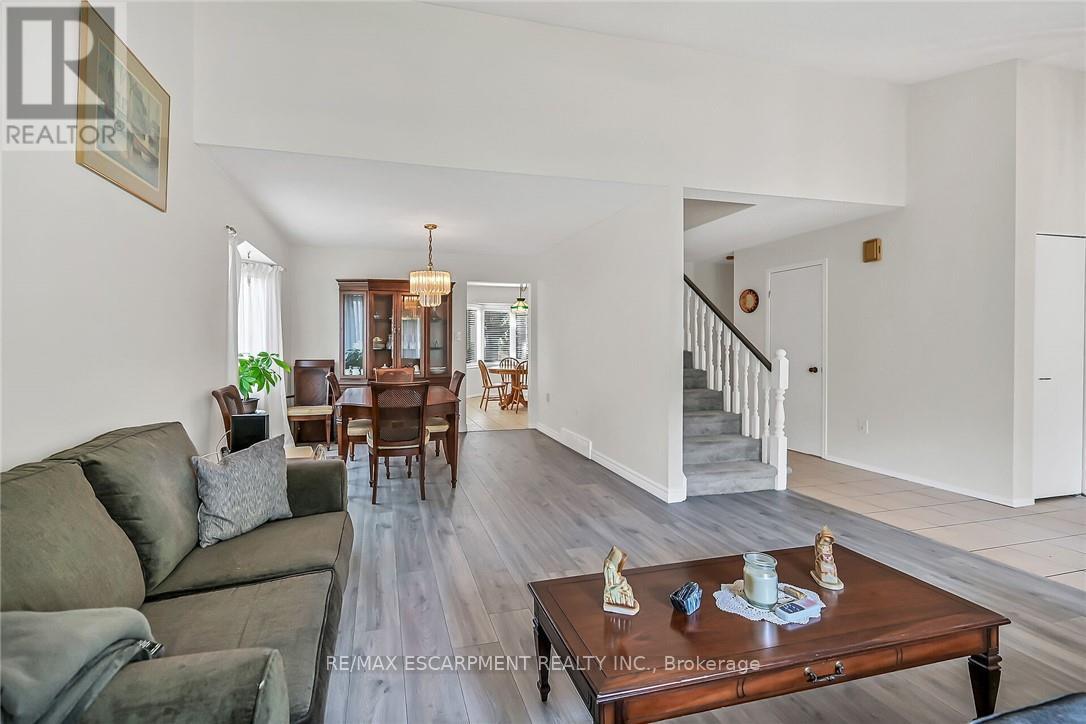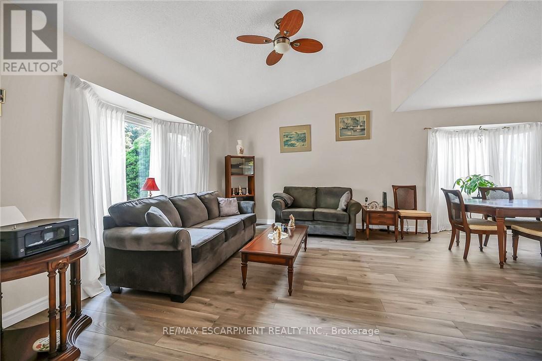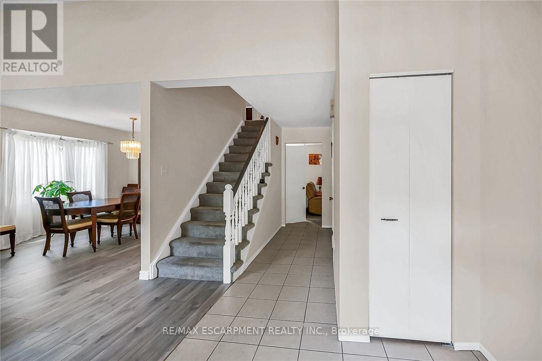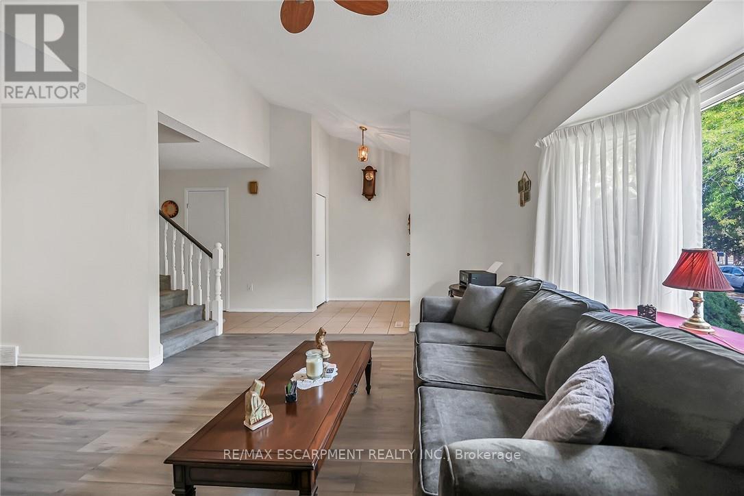 Welcome to 71 Kennard Street, a charming Cape Cod style 2-storey home in a wonderful family-friendly Stoney Creek Mountain neighbourhood. Step inside to find an inviting main floor with vaulted ceilings that flow from the living room into the dining area, creating a bright and airy feel. The updated kitchen is open to the family room, where a wood-burning fireplace and walkout to the backyard make it the perfect gathering spot. A main floor laundry with inside garage entry and a convenient 2-pc bath adds everyday practicality. Upstairs, the spacious primary suite offers a walk-in closet and a private 3-pc ensuite. There are two additional generous bedrooms and the main 4-pc bath. The unfinished basement provides plenty of space to design your dream rec room, gym, or workshop. Outdoors, enjoy the deep lot with mature trees, a 12x14 deck for summer barbecues (NG hookup available), and a handy storage shed. You'll appreciate the double-wide interlock driveway and single garage, which provide ample parking. This home has received some thoughtful updates, including fresh paint and kitchen improvements, while offering an excellent opportunity for buyers to add their own finishing touches. Set in a sought-after location close to schools, parks, hiking trails, Felkers Falls, shopping, and highway access, this property combines comfort, convenience, and potential. (id:51158)