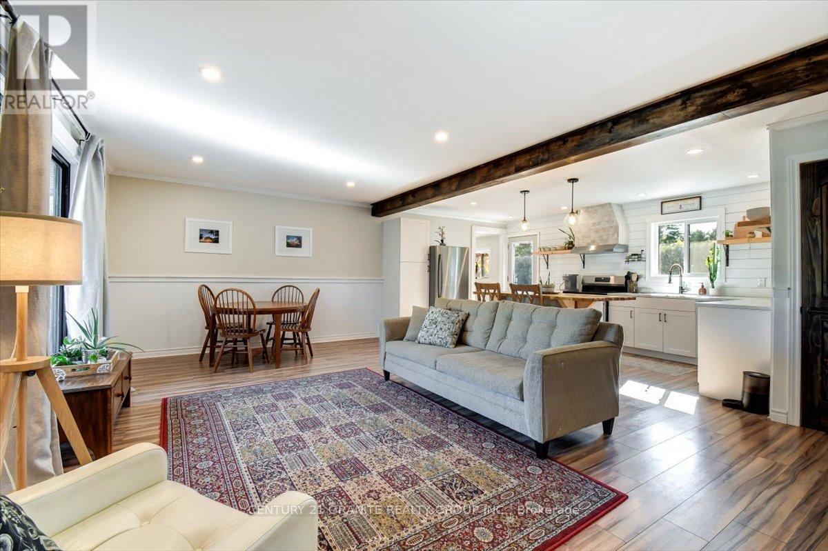 Welcome to this beautifully renovated 4-bedroom, 2-bath bungalow in the desirable Bird's Creek subdivision, just minutes from Bancroft and all town amenities. Offering over 2,200 square feet of total living space, this home has been rebuilt from the studs out, blending quality craftsmanship with modern design and comfort. The open-concept kitchen, living, and dining area is bright and welcoming, ideal for family gatherings or entertaining. Contemporary finishes, stylish lighting, and quality flooring enhance the home's fresh, turnkey appeal. The fully finished lower level adds exceptional living space with a wet bar and recreation area, perfect for relaxation or entertaining guests. Set on a 0.40-acre level fenced lot, this property provides ample outdoor space for children and pets, with an above-ground pool ready for summer enjoyment. This ideal family home is conveniently located just minutes from Bird's Creek Public School, the park and recreation area, Baptiste Lake, and downtown Bancroft. If you are seeking a modern, low-maintenance home in a friendly and welcoming community, this property delivers the perfect blend of style, functionality, and location. Book your private viewing today and start your journey toward this exceptional family home. (id:51158)
