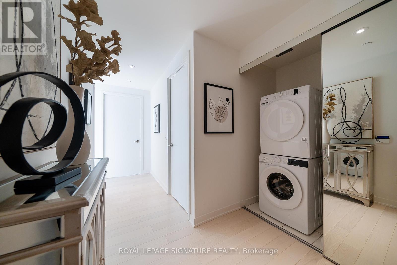 Welcome to Pier 27 - Tower by the Lake, one of Toronto's most prestigious waterfront residences. This beautiful 2-bedroom, 1-bathroom suite offers a smart, efficient layout with no wasted space, floor-to-ceiling windows, and abundant natural light throughout.Enjoy clear, unobstructed lake and city views from every room, overlooking the pier and Lake Ontario - with the added bonus of front-row views of New Year's fireworks. Step out onto the full-length balcony from the living area, perfect for morning coffee or evening relaxation.The modern chef-inspired kitchen features premium integrated Miele appliances, complemented by tasteful upgrades including automatic curtains for added comfort and convenience.Residents enjoy world-class amenities, including a 24-hour concierge, outdoor pool, fully equipped fitness centre, party and media rooms, and library. Ideally located where the city meets the lake - steps to transit, Union Station, Financial District, St. Lawrence Market, Scotiabank Arena, Rogers Centre, shops, groceries, and everyday essentials.Experience the ultimate in sophisticated lakefront living. Monthly maintenance fee includes Rogers unlimited high-speed internet. (id:51158)