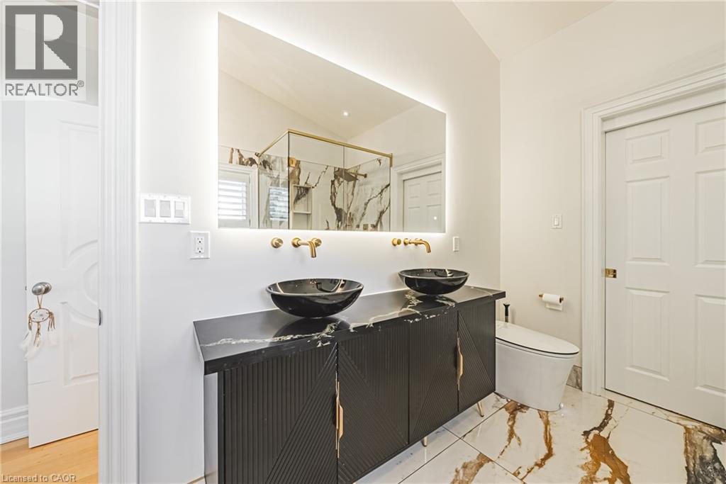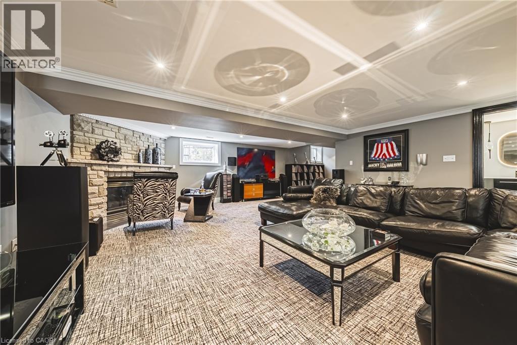 Unique, custom-built luxury home offering just over 5000 sq ft of Finished Living Space. Attention to detail & fine construction throughout, this home offers elegance, comfort, & functionality. Step into the grand sitting area, featuring soaring ceilings, stunning windows, & an impressive open staircase that connects all levels of the home. Sunken dining room boasts coffered gold leafing ceilings for refined entertaining. Custom Built Downsview kitchen offers abundant cabinetry, granite countertops, & top-of-the-line stainless steel appliances, including a Sub-Zero refrigerator, Wolf gas range, Gaggenau built-in oven, Miele dishwasher, & microwave storage. Relax or entertain in the expansive great room, featuring dramatic ceiling heights & a backlit onyx walls for your tv. An open-concept office with natural light, perfect workspace. Main-floor laundry room includes garage access. Upstairs, the spacious primary suite offers a large walk-in closet & a renovated 5-piece ensuite (2025). Two generous bedrooms share a beautifully appointed 4-piece bathroom, & a bright loft area overlooks both the front & rear of the home. The lower level features large windows & offers in-law suite potential with separate walk-ups to both the rear yard & garage. Cozy recreation room with fireplace, a fully equipped gym, a sauna for relaxation, 3 pc bath (2025), workshop, cold room, & plenty of storage space. The outdoor oasis includes a composite deck with built-in BBQ, hot tub, & an oversized waterfall feature with fireplace, artificial turf & a storage shed. Additional highlights include an oversized 2-car garage with abundant storage & a long interlock driveway accommodating up to 8 vehicles & irrigation system. Trillium award several years for landscaping. Ideally located near Tiffany Falls, Tamahaac Club, Highway 403, the Linc, Costco, schools, parks, & trails, luxury living with convenience & lifestyle. (id:51158)