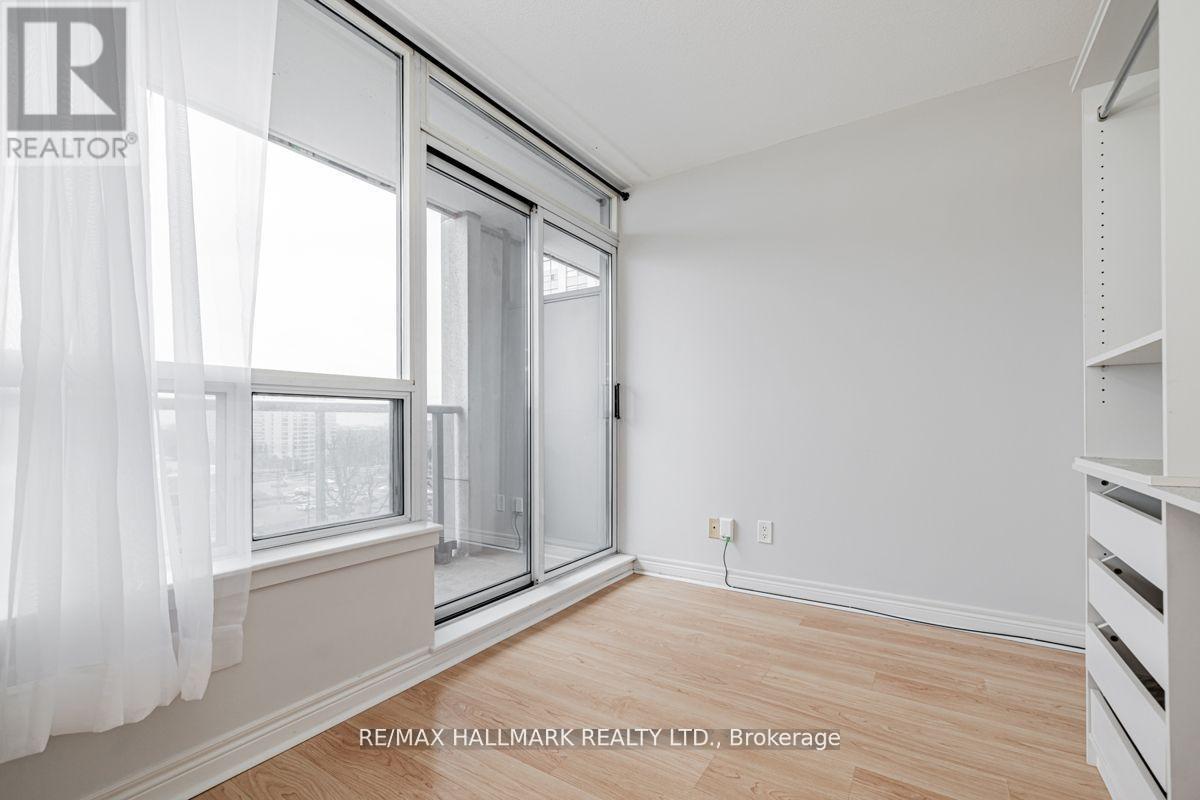 Bright south-facing 1 bedroom condo in Desirable Thornhill City Centre! Oversized bedroom with sunny unobstructed view and spacious walk-in closet. The Landlord can remove the wall/shelves in the living room at no cost if you prefer an open-concept layout or the current layout is ideal as a separated area, guest bedroom or dedicated home office space. Well-kept building with amazing amenities including a 24hr concierge, plenty of visitor parking, large gym, sauna, indoor pool and hottub, party room, guest suite, and more. Unbeatable location: across the street just 5min walk from Walmart, Promenade Mall, groceries incl T&T and No Frills, restaurants and cafes, banks, dental, shopping incl Winners, Parks, transit, and a short drive to Hwy 407/7. You'll love living here! (id:51158)