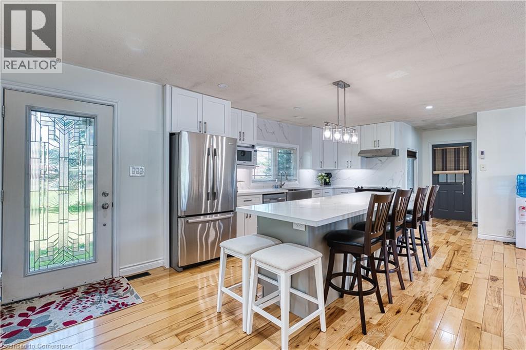 Looking for a home that blends lifestyle and income potential? This rare find near Owen Sound offers a beautifully renovated 3-bedroom bungalow, a self-contained in-law apartment, and a fully outfitted commercial workshop — all on 1.57 private acres with pond and in-ground pool. With just over 2,100 square feet in the main home, plus two additional income-ready spaces, this is a unique opportunity to live, work, and invest. Check out our TOP 5 reasons why this multi-use retreat should be your next move! #5: LOCATION WITH FLEXIBILITY: Situated in Springmount where commercial business thrives, this property offers quick access to city amenities while still delivering countryside tranquillity. With highway frontage and a spacious driveway, it's ideal for entrepreneurs, tradespeople, or anyone craving space and freedom.#4: MODERNIZED FAMILY HOME: The main residence features a stone exterior, a brand new open-concept kitchen with bright white ceiling-height cabinetry, quartz countertops and backsplash, living and dining areas, 3 bright bedrooms, laundry, plus a 5-piece bath. A large island and picture windows make the space perfect for family gatherings. #3: BONUS IN-LAW APARTMENT: Attached to the main home, the in-law suite includes a kitchen, living room, 4-piece bath with shower, a bedroom, and private deck walkout — offering potential as a short- or long-term rental. #2: COMMERCIAL WORKSHOP + OFFICE: A fully insulated and renovated 2,200 sq. ft. detached commercial space features two private offices, a showroom-style reception area, storage, and a large open-bay workshop. With a previous commercial tenant having leased the space for $2,500 per month, it is excellent for a business or your creative venture. #1: PRIVATE OUTDOOR PARADISE: The backyard is built for enjoyment, with an in-ground pool, large patio, a gazebo, and even a picturesque pond. Mature trees and wide-open skies make it feel like a private resort — the ultimate weekend-at-home retreat. (id:51158)