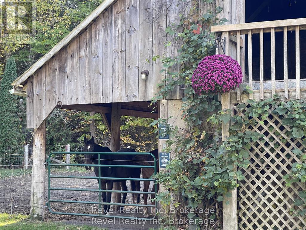 Welcome to your private 48.39-acre sanctuary-a rare opportunity to escape the city's chaos and embrace a simpler, more fulfilling way of life. As you wind down the secluded driveway, three majestic old-growth white pines-known as the Three Sisters-stand as timeless guardians of this serene retreat. The custom-built bungalow offers generous living space with cathedral ceilings, a double-sided gas fireplace, and triple-pane windows framing views of the pond, creek, and landscaped grounds. The main level features a spacious kitchen with walkout to the deck, a primary bedroom with ensuite, main floor laundry, and inviting family spaces. The lower level includes a large recreation room with wood-burning fireplace, two additional bedrooms, a beautifully updated bathroom, and two versatile grooming rooms that can be tailored to your needs, plus a walkout to the backyard and garage-ideal for multi-generational living or a home business. Outdoors, a century barn with hay loft, two paddocks with direct trail access, a sugar shack, chicken coop, and fenced area for pets create endless possibilities. An expansive four-bay drive-in shed with oversized doors provides ample storage for boats, tractors, or collector cars. Trails wind through a blend of old-growth forest and open meadows, perfect for horseback riding, hiking, or exploring nature. In summer, enjoy the 18x33 above-ground pool with full deck and tiki bar for effortless entertaining; in winter, cozy up by the wood-burning fireplace and watch snow fall across your private oasis. With numerous updates and a forest management plan option for potential tax savings, this property is both practical and inspiring-a true sanctuary ready for its next chapter, yours. (id:51158)