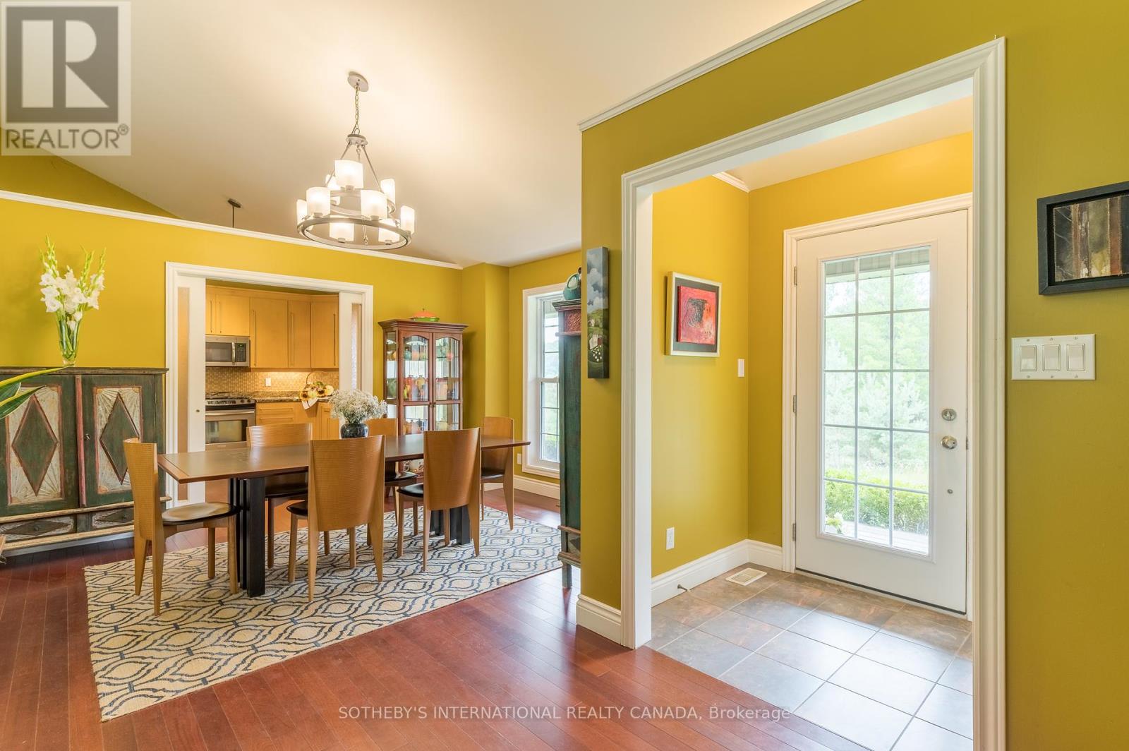Combining the convenience of modern design with the allure of country living, this beautifully designed, quality-built custom bungalow with a lower level walk-out is situated on 6.7 private acres surrounded by pastoral and forest views, just outside the popular Village of Warkworth. Almost 3000 sq ft of living space, the home is ideal for families seeking space or for couples wanting a turnkey rural oasis. There's also potential for an in-law suite. The expansive open-plan living and dining room with soaring vaulted ceilings and oversized picture window draws in the forest views and invites natural light. The chef-ready kitchen features custom cabinetry, long granite countertops, stainless steel appliances - and can be cleverly closed off by frosted glass pocket doors. The large primary bedroom contains a spa-like ensuite with heated floor, soaker tub and separate shower along with a walk-out to the deck. Two extra bedrooms (or office), powder room and laundry complete the main floor, with interior access to the double garage. The lower level, with its heated floor, has a comfortable living area with direct access to stone walkways, attractively landscaped, leading to a sweeping sundeck - perfect for weekend relaxation or entertaining. There's also an extra guest room, office, 3-piece bathroom and utility/storage rooms. A fully integrated back-up generator ensures uninterrupted power. Pride of ownership is evident in this immaculate home. Minutes to Warkworth for shops, cafes, restaurants, galleries and golf. A short drive to Campbellford for hospital and full services. 30 minutes to Cobourg for VIA Rail and about 90 minutes to Toronto. Experience the Magic of Warkworth! (id:51158)