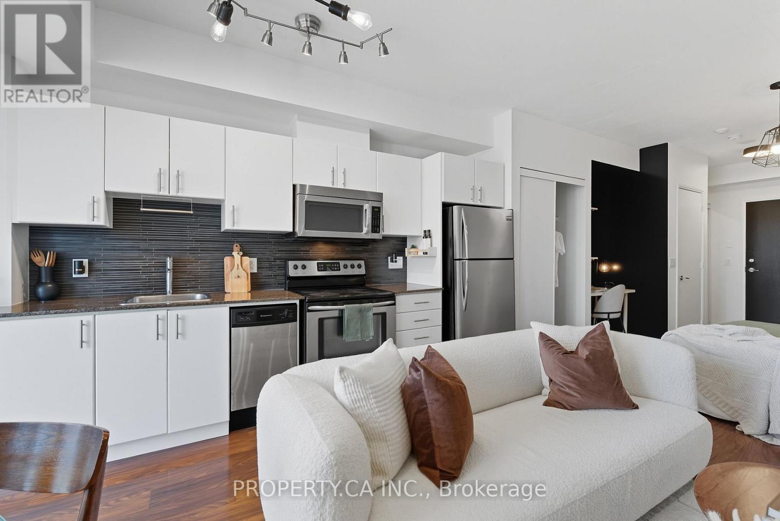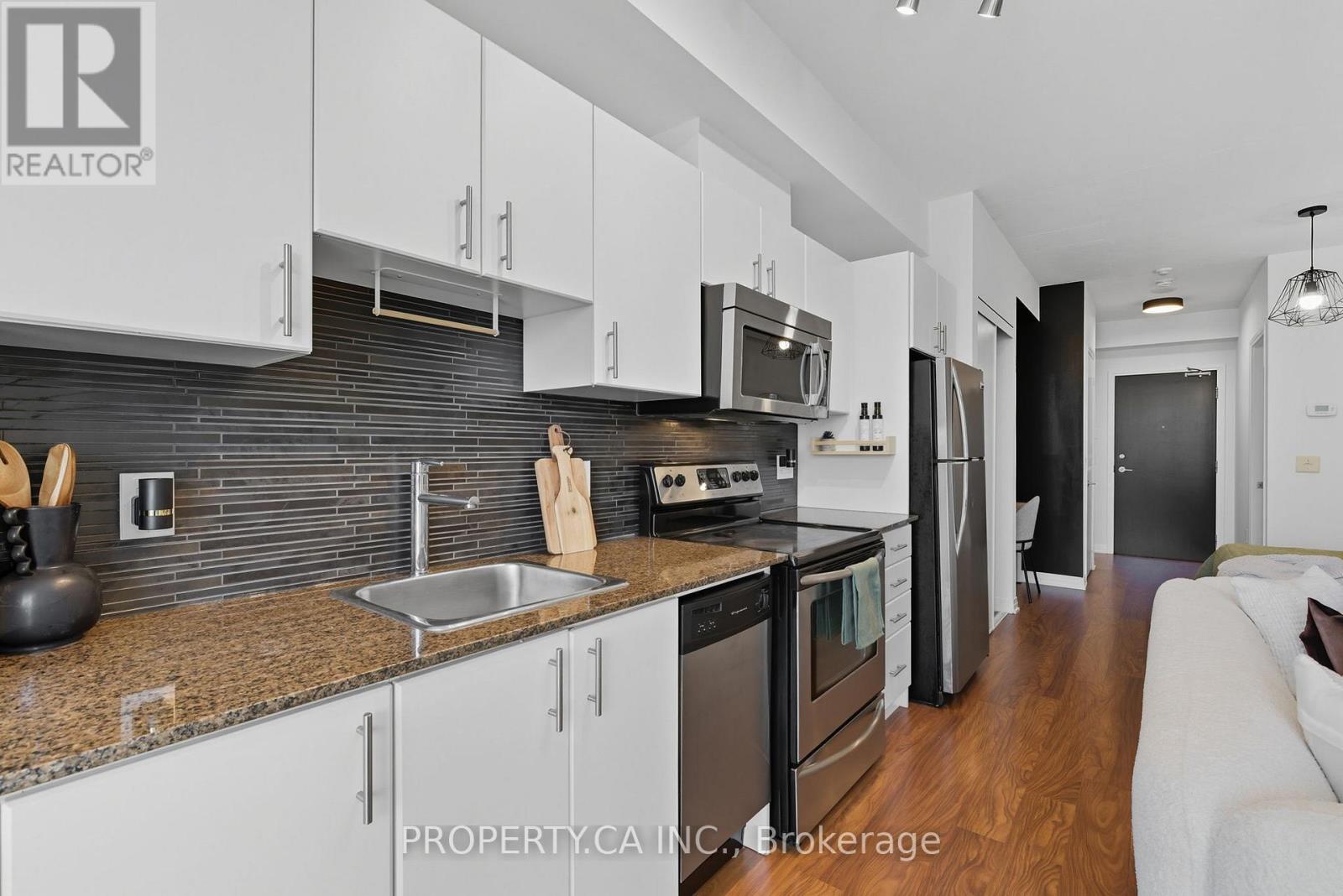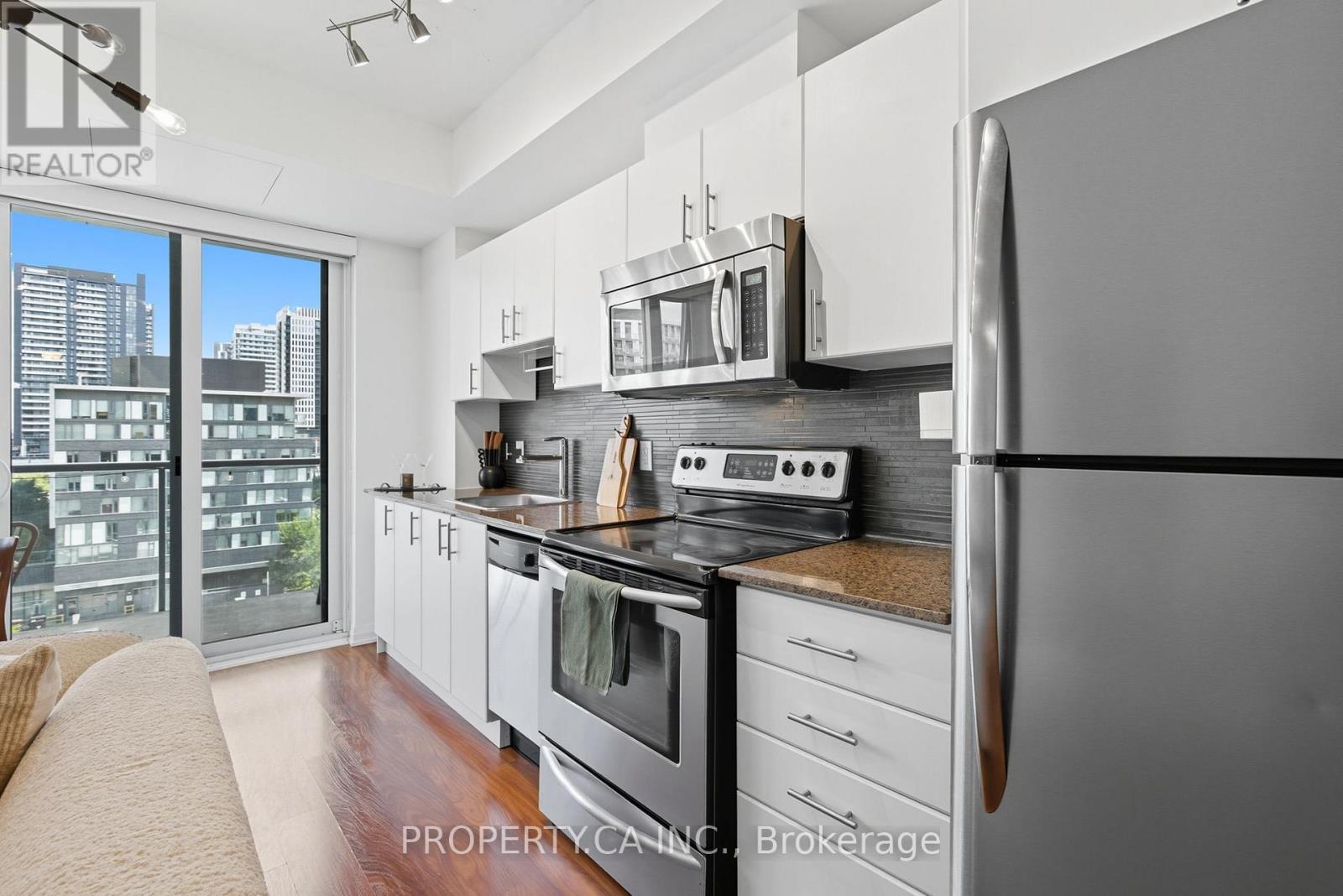 $471.23 MonthlyBright, stylish, and smartly designed, this 442 sq. ft. studio offers modern living with no wasted space. Floor-to-ceiling windows showcase a sunny Eastview, while a 77 sq. ft. private balcony extends your living outdoors. Inside, enjoy a sleek 4-piece bathroom, two closets for ample ensuite storage, full-sized stainless-steel stove and fridge-freezer - rare in studio living - and ensuite laundry. One titled parking space and storage locker add everyday convenience. The building elevates your lifestyle with 24/7 security concierge, a gym, recreation & party rooms, plus a rooftop garden with BBQs. In Toronto's revitalized Regent Park, you're steps to the Pam McConnell Aquatic Centre, Regent Park Athletic Grounds & Community Centre, local cafés, and eateries. Located just 12 minutes by streetcar to Yonge-Dundas and 3 minutes to the DVP this home perfectly balances comfort, community, and connectivity. Building Amenities Include: Well equipped gym; guest suites; party and rec' rooms; rooftop garden patio w/BBQs; visitor parking and 24 hour security concierge. (id:51158)