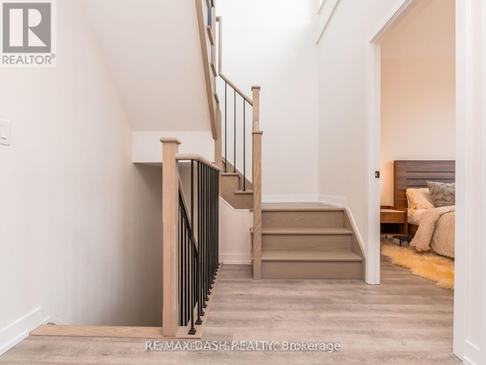Step into your ideal this LARGE Condo that feels like a house.Contemporary living space with a stylish 3 bedroom, 3 bathrooms, and 2 breathtaking terraces perfectly situated in the lively Stockyards District Residences by Marlin Spring Developments, built in 2022! Located in Toronto's highly desirable Junction neighborhood, known for its rich history, vibrant culture, and strong sense of community. As you enter, be captivated by the spacious main floor featuring elegant wide plank flooring, accented by a stunning staircase with intricate wood and iron details. Experience the awe-inspiring floor-to-ceiling windows that lead out to a large terraces, showcasing breathtaking city views. The eat-in kitchen is a chefs dream, complete with quartz countertops, an undermounted sink, stainless steel appliances, and abundant stylish cabinetry. The bright living room is perfect for entertaining with a designated dining area, while a powder room. Venture to the second floor where the generous primary bedroom awaits, featuring a large closet and an ensuite bath. A second and third bedroom, adjacent to another full bath, creates a great layout along with a laundry closet and a versatile den ideal for a home office or guest room! The third level, walks out to another stunning and large private terrace, with stunning city views and picturesque sunset vistas. The building offers fantastic amenities including a friendly concierge, a pet play area, a fitness center, a yoga studio, a party room, and a lush outdoor terrace, along with a main entrance off Saint Clair and a convenient drop-off area off Symes Rd. With superb transit access just an 8-minute stroll to Gunns Loopthis neighborhood proves to be exceptionally walkable and bike-friendly! (id:51158)