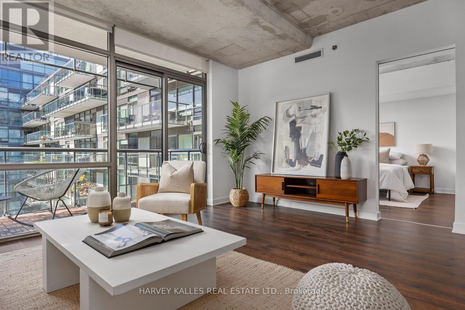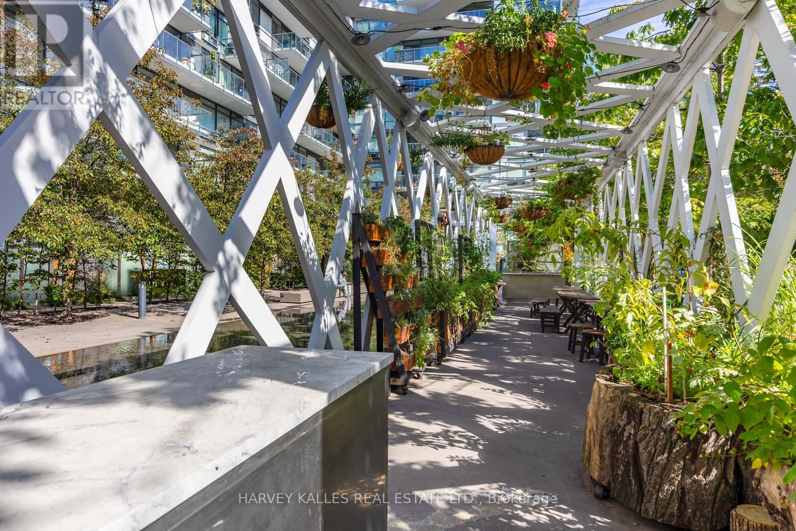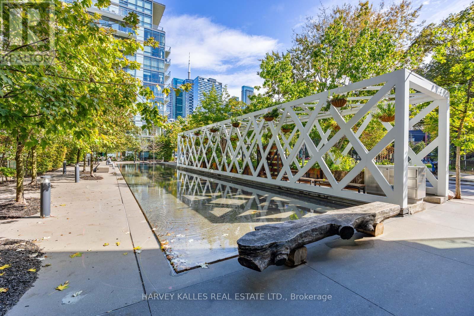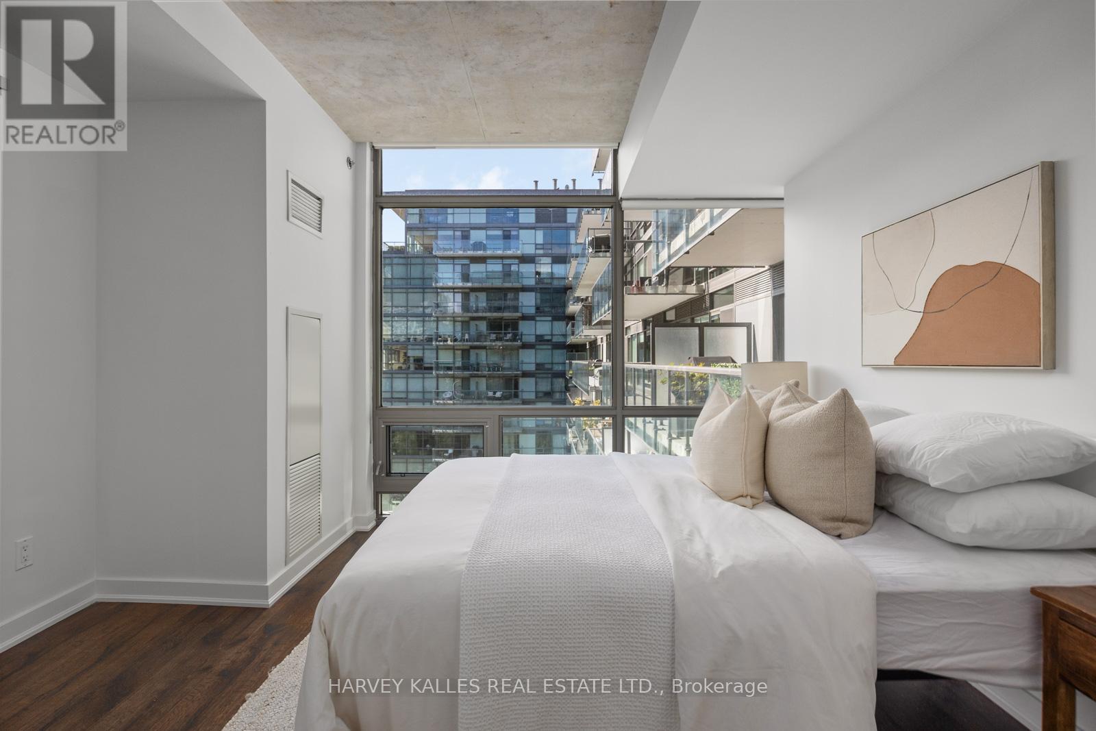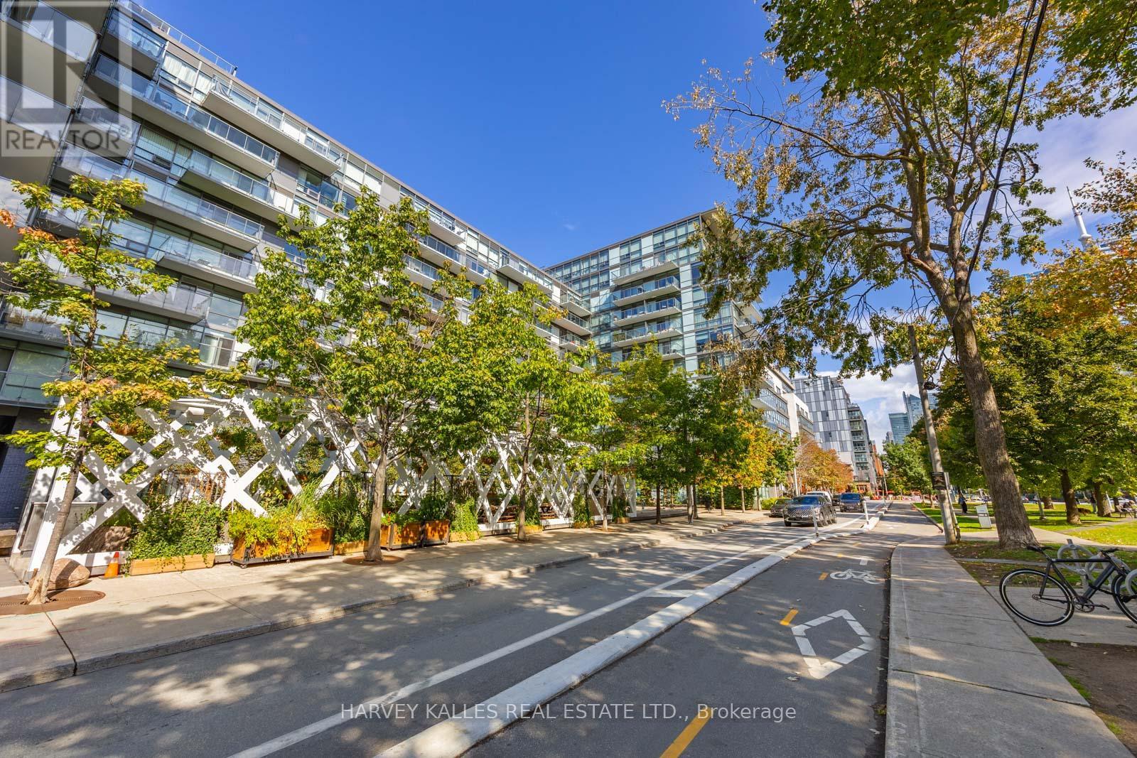 $892.59 MonthlyAn exceptional corner suite in the heart of Toronto's vibrant King West neighbourhood, located within the renowned 1 Hotel Residences. This spacious one-bedroom plus den offers an elegant balance of modern design, natural light, and urban tranquility overlooking the lush Victoria Memorial Square Park. Step inside to discover soaring 9-foot exposed concrete ceilings and floor-to-ceiling windows that flood the space with afternoon sun. The open-concept living and dining areas flow seamlessly onto an oversized west-facing balcony perfect for evening entertaining or quiet sunset views over the park. The kitchen features sleek cabinetry, full-sized stainless steel appliances, and a large island with stone counters ideal for casual dining or hosting. The spacious den is versatile ideal as a second bedroom, office, or flex space. The spa-inspired bathroom offers dual access from both the hallway and primary bedroom, creating an ensuite feel. The primary bedroom itself is a serene retreat with park views, a large closet, and direct ensuite access. This rare corner layout provides a peaceful escape from the city's bustle while keeping you steps from the best of King West. Residents enjoy exclusive access to the 1 Hotel amenities, including rooftop pool, fitness centre, and world-class dining all at your doorstep. Perfectly situated just minutes from The Well, Toronto's premier new food hall and retail destination, as well as countless cafes, nightlife, and transit options72355 Stewart offers the ultimate downtown lifestyle. (id:51158)