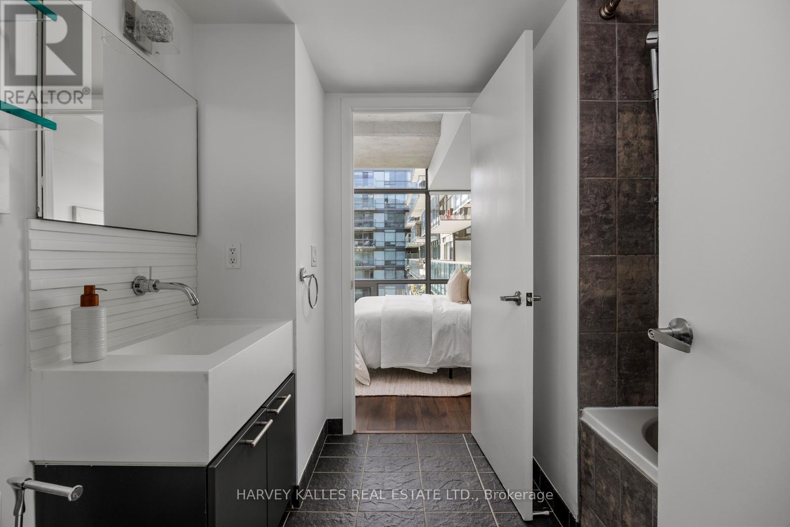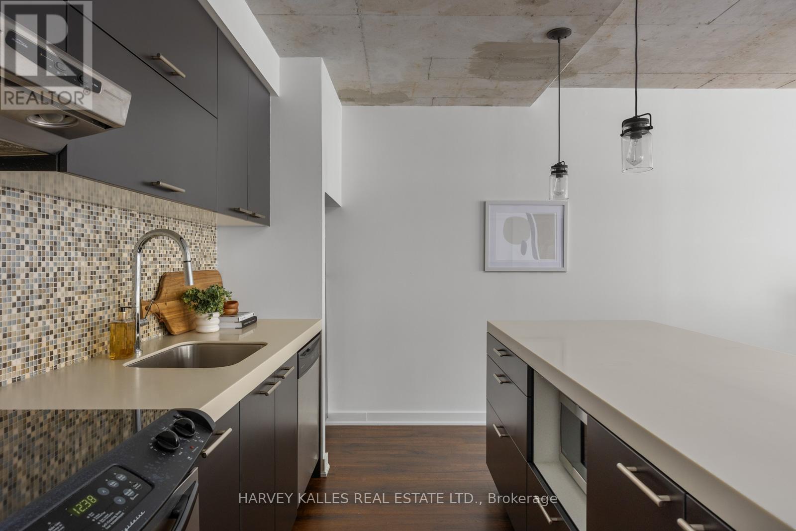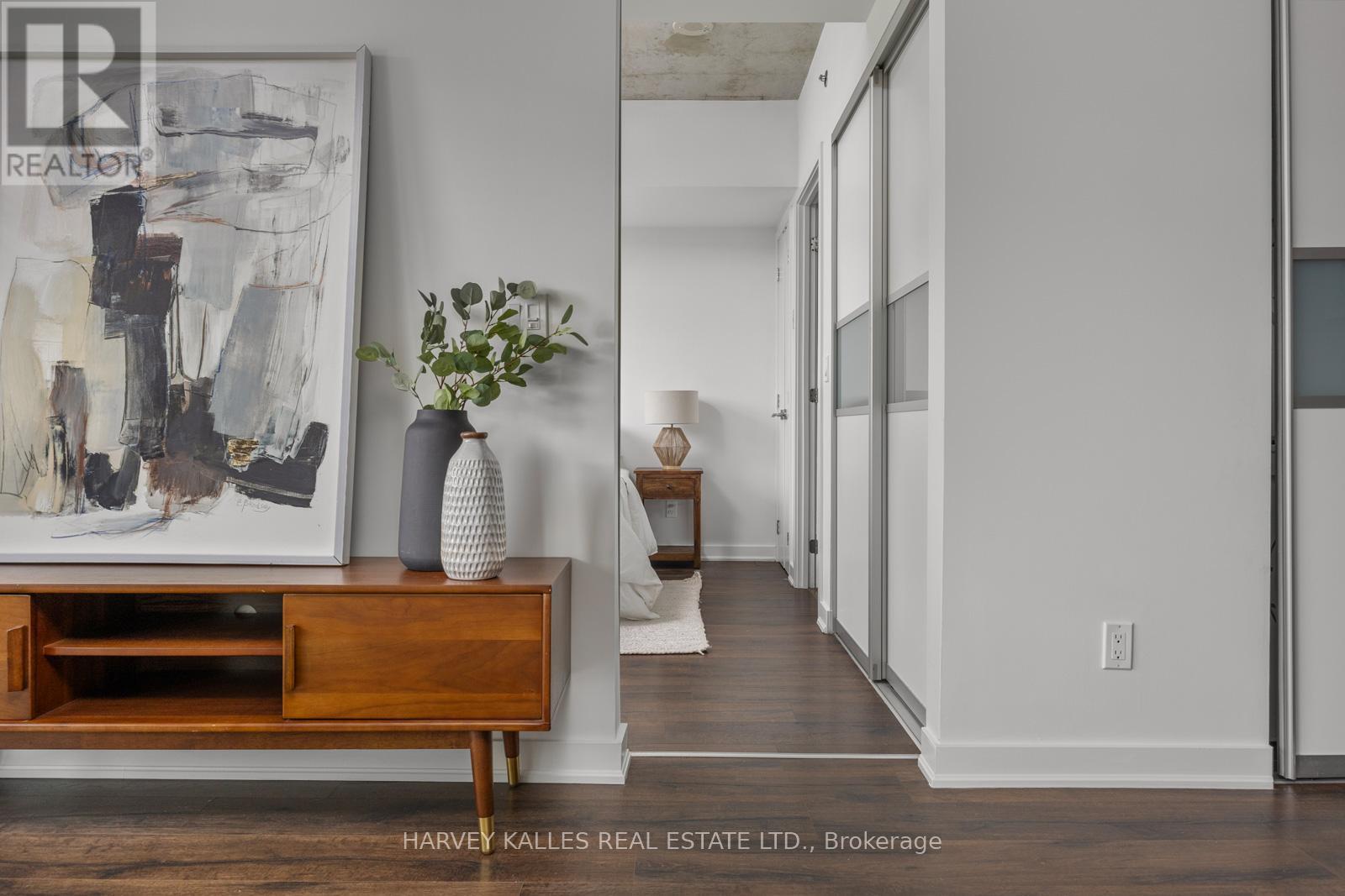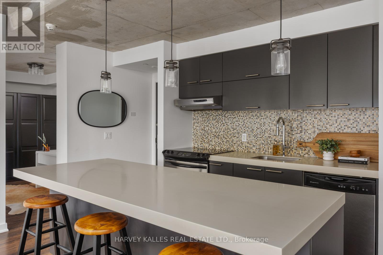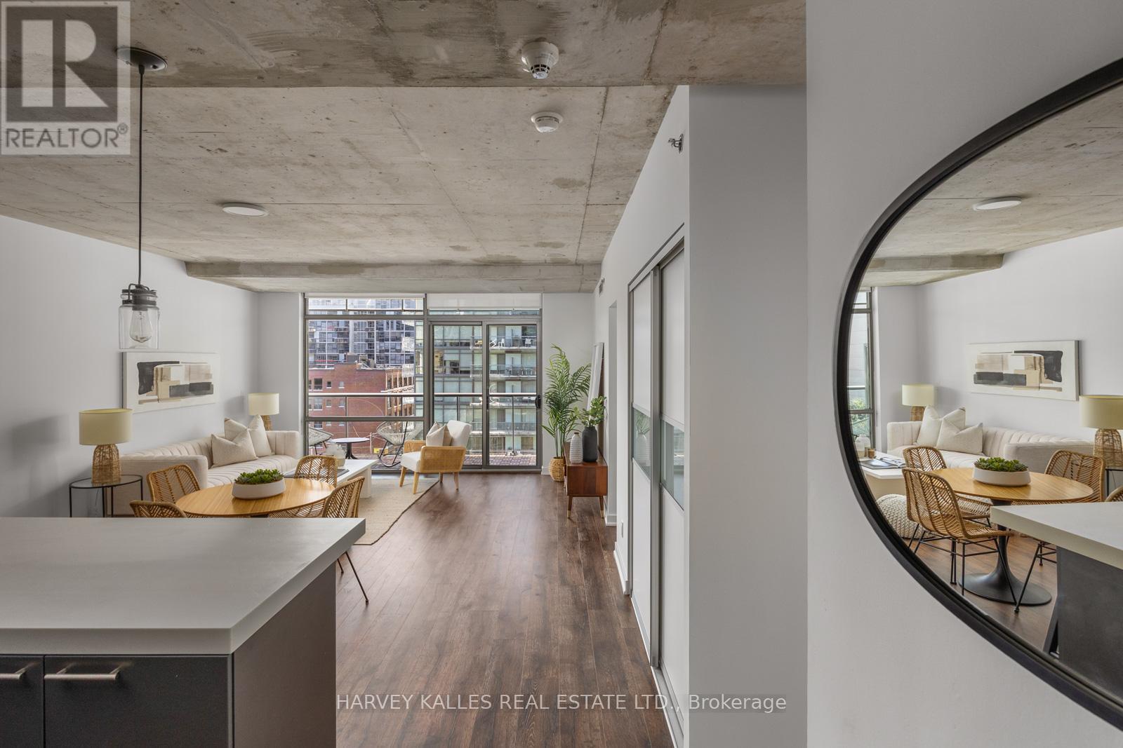 $892.59 MonthlyAn exceptional corner suite in the heart of Toronto's vibrant King West neighbourhood, located within the renowned 1 Hotel Residences. This spacious one-bedroom plus den offers an elegant balance of modern design, natural light, and urban tranquility overlooking the lush Victoria Memorial Square Park. Step inside to discover soaring 9-foot exposed concrete ceilings and floor-to-ceiling windows that flood the space with afternoon sun. The open-concept living and dining areas flow seamlessly onto an oversized west-facing balcony perfect for evening entertaining or quiet sunset views over the park. The kitchen features sleek cabinetry, full-sized stainless steel appliances, and a large island with stone counters ideal for casual dining or hosting. The spacious den is versatile ideal as a second bedroom, office, or flex space. The spa-inspired bathroom offers dual access from both the hallway and primary bedroom, creating an ensuite feel. The primary bedroom itself is a serene retreat with park views, a large closet, and direct ensuite access. This rare corner layout provides a peaceful escape from the city's bustle while keeping you steps from the best of King West. Residents enjoy exclusive access to the 1 Hotel amenities, including rooftop pool, fitness centre, and world-class dining all at your doorstep. Perfectly situated just minutes from The Well, Toronto's premier new food hall and retail destination, as well as countless cafes, nightlife, and transit options72355 Stewart offers the ultimate downtown lifestyle. (id:51158)