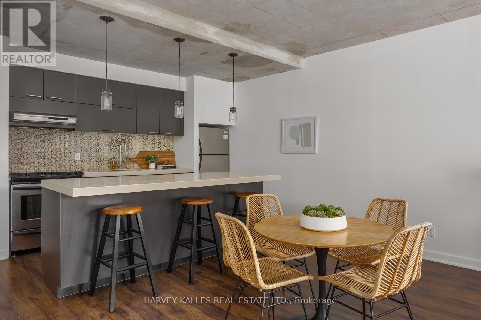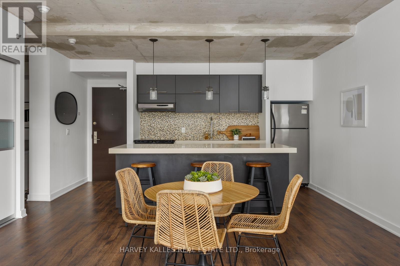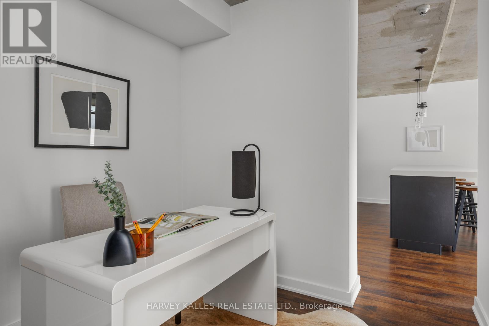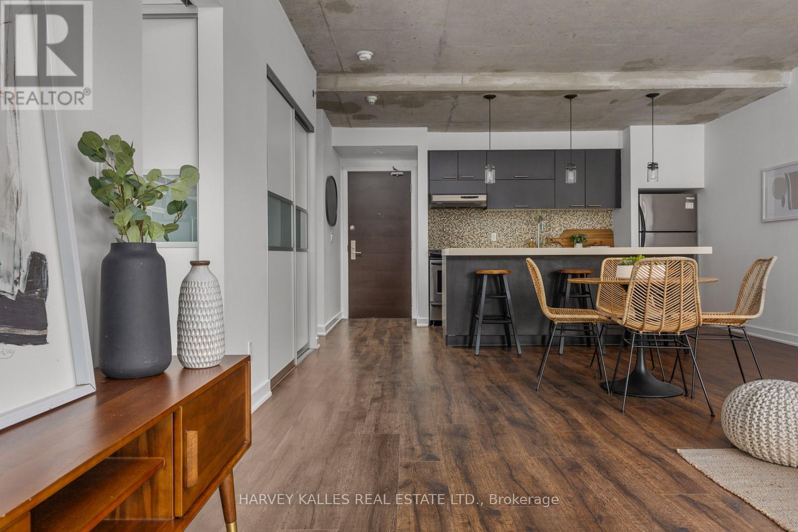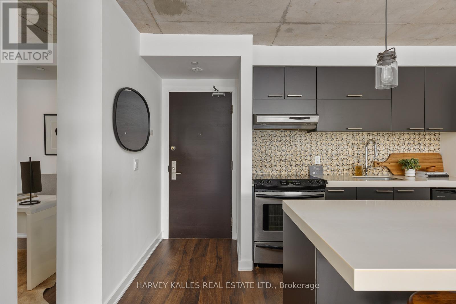 $892.59 MonthlyAn exceptional corner suite in the heart of Toronto's vibrant King West neighbourhood, located within the renowned 1 Hotel Residences. This spacious one-bedroom plus den offers an elegant balance of modern design, natural light, and urban tranquility overlooking the lush Victoria Memorial Square Park. Step inside to discover soaring 9-foot exposed concrete ceilings and floor-to-ceiling windows that flood the space with afternoon sun. The open-concept living and dining areas flow seamlessly onto an oversized west-facing balcony perfect for evening entertaining or quiet sunset views over the park. The kitchen features sleek cabinetry, full-sized stainless steel appliances, and a large island with stone counters ideal for casual dining or hosting. The spacious den is versatile ideal as a second bedroom, office, or flex space. The spa-inspired bathroom offers dual access from both the hallway and primary bedroom, creating an ensuite feel. The primary bedroom itself is a serene retreat with park views, a large closet, and direct ensuite access. This rare corner layout provides a peaceful escape from the city's bustle while keeping you steps from the best of King West. Residents enjoy exclusive access to the 1 Hotel amenities, including rooftop pool, fitness centre, and world-class dining all at your doorstep. Perfectly situated just minutes from The Well, Toronto's premier new food hall and retail destination, as well as countless cafes, nightlife, and transit options72355 Stewart offers the ultimate downtown lifestyle. (id:51158)