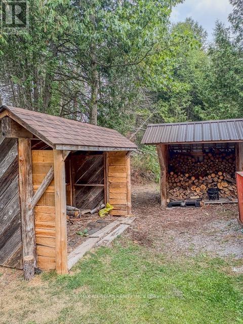 A TRULY REMARKABLE PROPERY- This stunning brick and stone bungalow sits on a 50 acre lot, offering the perfect blend of elegance and tranquility. Ready for you to move in, the home features a chef's kitchen equipped with custom cabinetry and vaulted ceilings, complemented by a cozy wood-burning fireplace in the spacious living area. Designed for comfort, style and functionality, the home boasts three generous bedrooms (or 2 bedrooms and 1 office) with double closets and two luxurious bathrooms, both with heated floors. Expansive windows throughout frame picturesque views and let the sunshine pour in, making the interiors feel open and airy. Extraordinary entertaining area with a mini bar, sauna, outdoor shower with a two-piece bath, and a charming bunkie featuring a loft - making it ideal for visitors or your own private retreat. Car enthusiasts and hobbyists will appreciate the insulated double car drive-through garage with heated floors and ample extra storage. Venture outside to explore your private network of trails, perfect for every season, and take in the natural beauty that surrounds you. This property is a rare opportunity - offering privacy, recreation, a lot of storage and outstanding amenities in a breathtaking setting. (id:51158)