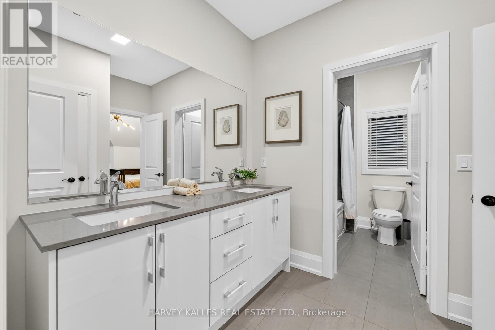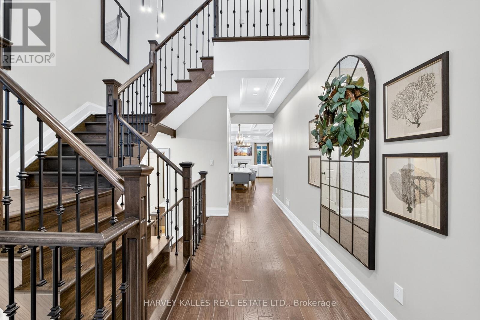 Welcome to this exceptional Riverwood residence - a luxurious 4-bedroom, 4-bathroom home built in 2019, set on a beautiful ravine lot surrounded by mature trees in one of Georgetown's most desirable neighbourhoods. Offering over 3,400 sq. ft. of elegant living space, this home combines refined craftsmanship with modern comfort, just minutes from Hwy 401, downtown Georgetown, community centres, and excellent schools. The heart of the home is a Custom Cameo kitchen showcasing Wolf gas range, Wolf wall steam oven, Wolf built-in coffee system, Sub-Zero fridge/freezer/wine fridge, Asko dishwasher, Caesarstone countertops and backsplash, and a Sirius ventilation hood - truly a chef's dream. Enjoy 10-ft ceilings on the main floor, 9-ft ceilings upstairs and in the basement, plaster waffle ceilings, elegant trim and crown moldings, and hand-scraped engineered hardwood floors throughout. Luxurious touches include heated bathroom floors, double-sink vanities, custom closet organizers in every bedroom, and custom window blinds. The walk-out basement is drywalled with all electrical and flooring completed, rough-in ready for a 5th bathroom, and awaits your final finishes. Step outside to a maintenance-free landscape oasis featuring Park Royale Bellaturf, Unilock interlocking, a horizontal white cedar fence, expansive waterproof composite deck with spiral staircase, and a Hydropool 19-ft year-round swim spa with a brand-new rollaway cover. Additional highlights include a hardwired Hikvision security system with three-week memory, built-in ceiling speakers for surround sound, and hot & cold water bibs in the garage. This meticulously designed home offers the perfect balance of luxury, privacy, and convenience - a rare opportunity in one of Georgetown's most sought-after communities. (id:51158)