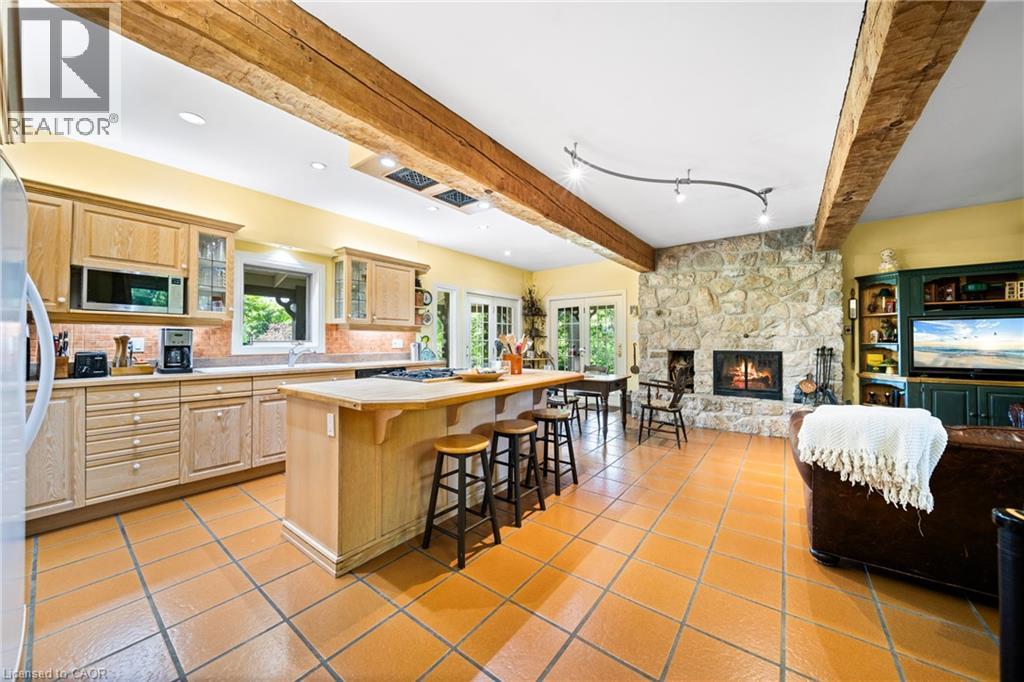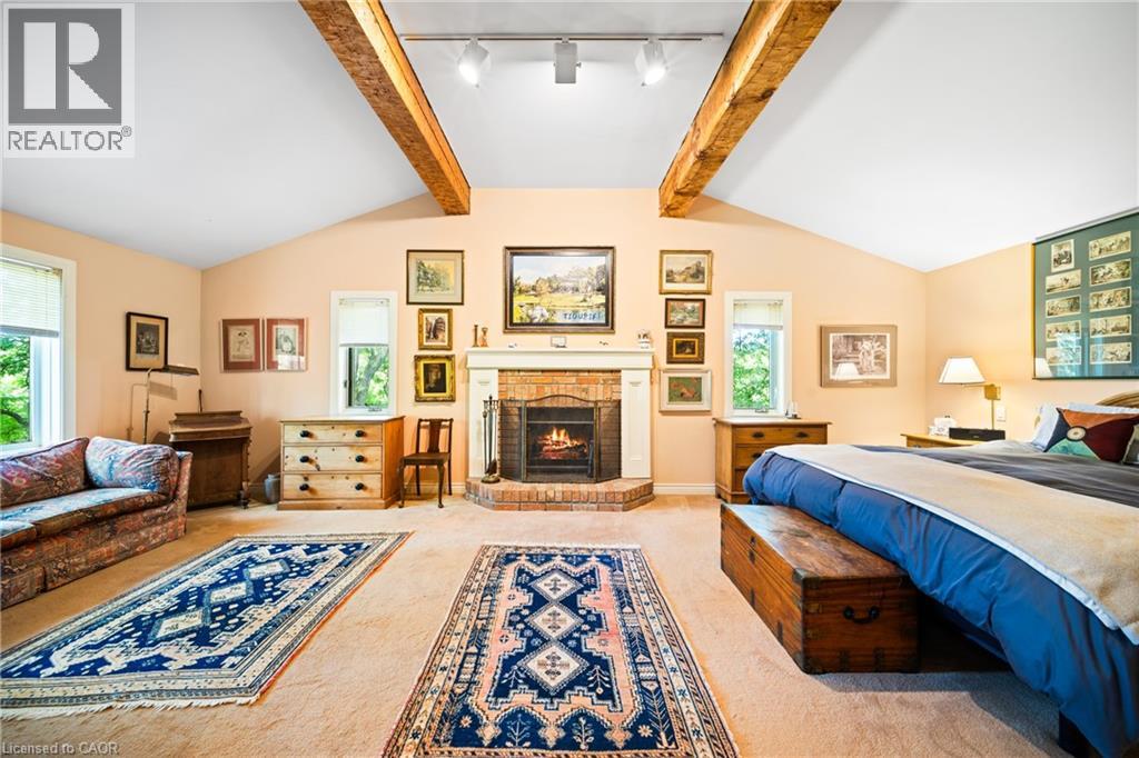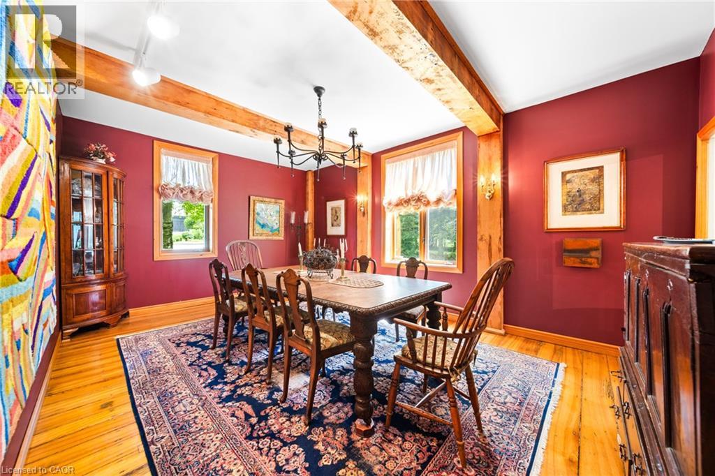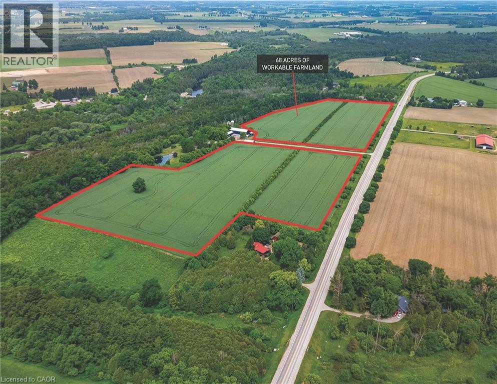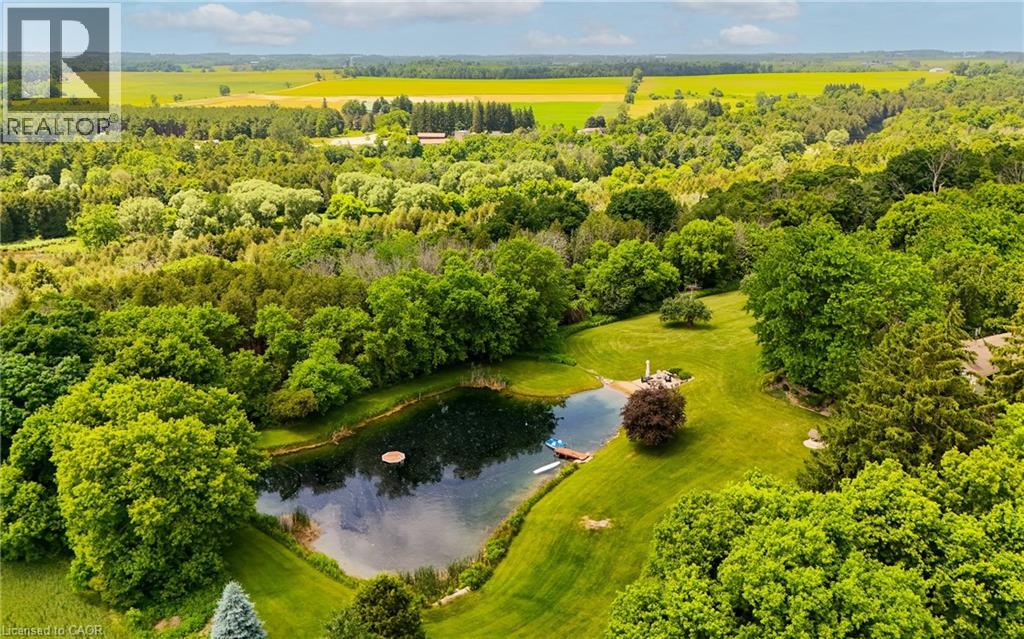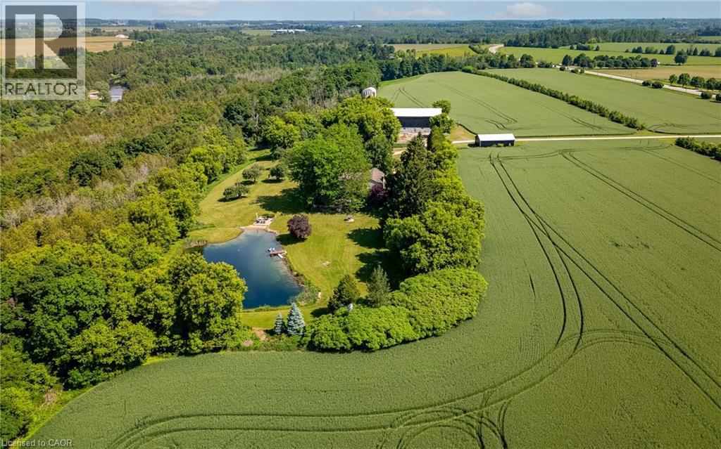 For the first time in over 35 years, a truly exceptional opportunity presents itself: 98 acres of diverse, breathtaking land located just outside the picturesque village of Elora. This truly one-of-a-kind property combines 68 acres of productive farmland with 28 acres of unspoiled natural landscape, including over 2,300 ft of road frontage and over 2,700 ft of water frontage on the Grand River. Private trails wind through the woods down to and along the banks of the Grand River, perfect for peaceful walks or immersive nature experiences. Only minutes away, the Elora Conservation Area offers even more ways to enjoy the area's stunning landscapes and outdoor adventures. At the heart of the property stands a charming 4-bedroom post-and-beam farmhouse, originally built in the 1850s. Thoughtfully updated over the years, the home balances timeless character with modern comfort. The residence is set well back from the road, ensuring complete privacy. Additional features include a bank barn (50' x 100'), storage barn (attached to bank barn, 25' x 70'), detached triple car garage/shop (30' x 50'), storage barn (30' x 50'), and milk shed (15' x 17'). Steps from the covered porch of the main house is a tranquil swimming pond, including a sandy beach area and patio, perfect for summer afternoons or evening sunsets. Whether you're looking to build your dream estate, or simply enjoy one of Ontario’s most scenic properties, don’t miss this once-in-a-lifetime opportunity. (id:51158)