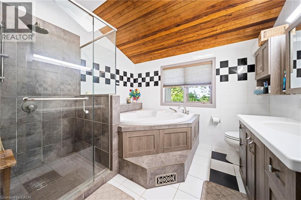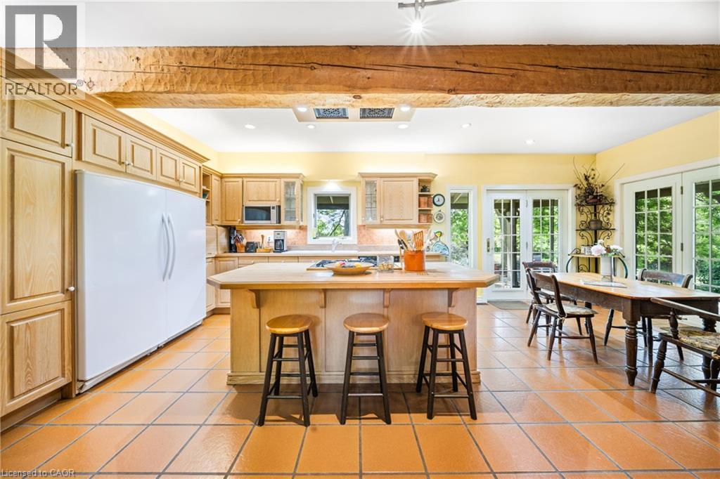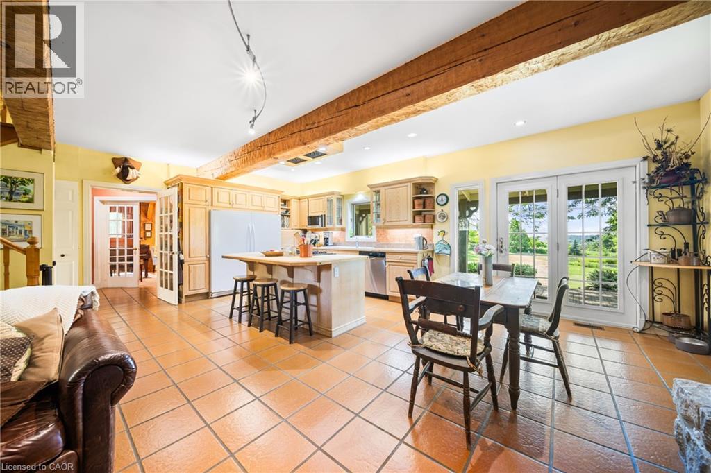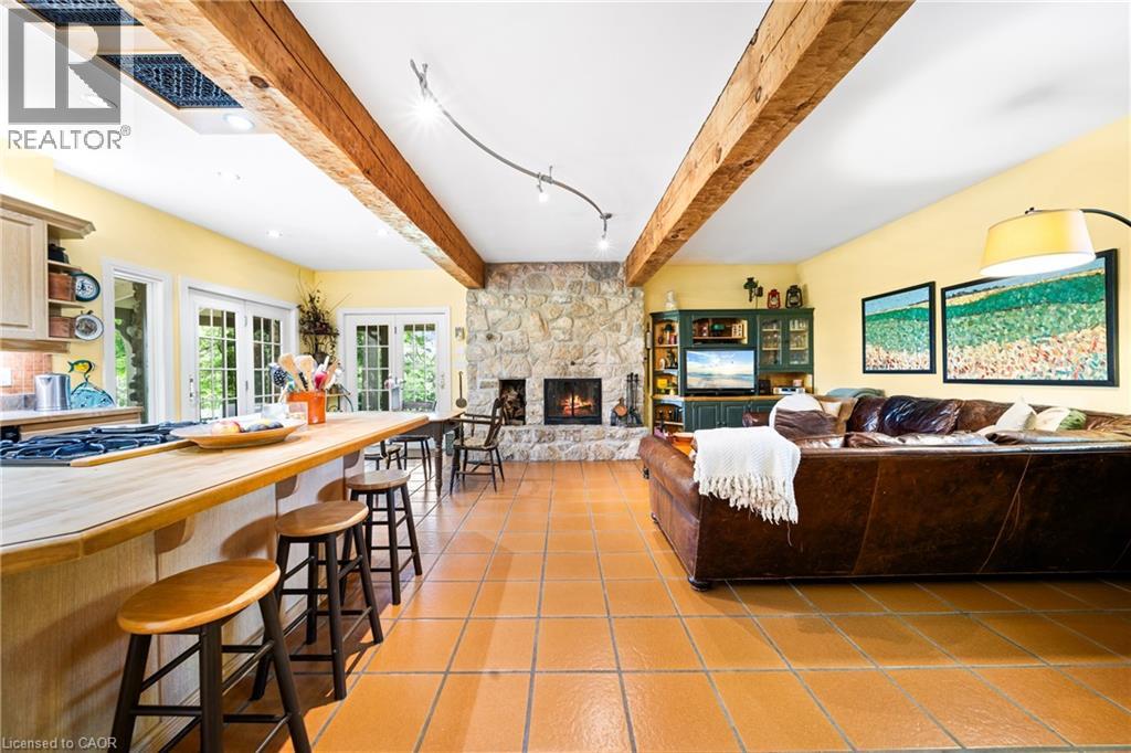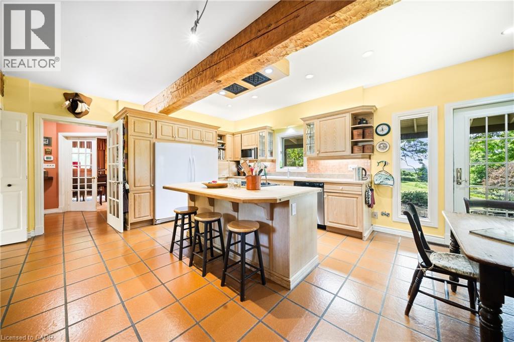 For the first time in over 35 years, a truly exceptional opportunity presents itself: 98 acres of diverse, breathtaking land located just outside the picturesque village of Elora. This truly one-of-a-kind property combines 68 acres of productive farmland with 28 acres of unspoiled natural landscape, including over 2,300 ft of road frontage and over 2,700 ft of water frontage on the Grand River. Private trails wind through the woods down to and along the banks of the Grand River, perfect for peaceful walks or immersive nature experiences. Only minutes away, the Elora Conservation Area offers even more ways to enjoy the area's stunning landscapes and outdoor adventures. At the heart of the property stands a charming 4-bedroom post-and-beam farmhouse, originally built in the 1850s. Thoughtfully updated over the years, the home balances timeless character with modern comfort. The residence is set well back from the road, ensuring complete privacy. Additional features include a bank barn (50' x 100'), storage barn (attached to bank barn, 25' x 70'), detached triple car garage/shop (30' x 50'), storage barn (30' x 50'), and milk shed (15' x 17'). Steps from the covered porch of the main house is a tranquil swimming pond, including a sandy beach area and patio, perfect for summer afternoons or evening sunsets. Whether you're looking to build your dream estate, or simply enjoy one of Ontario’s most scenic properties, don’t miss this once-in-a-lifetime opportunity. (id:51158)