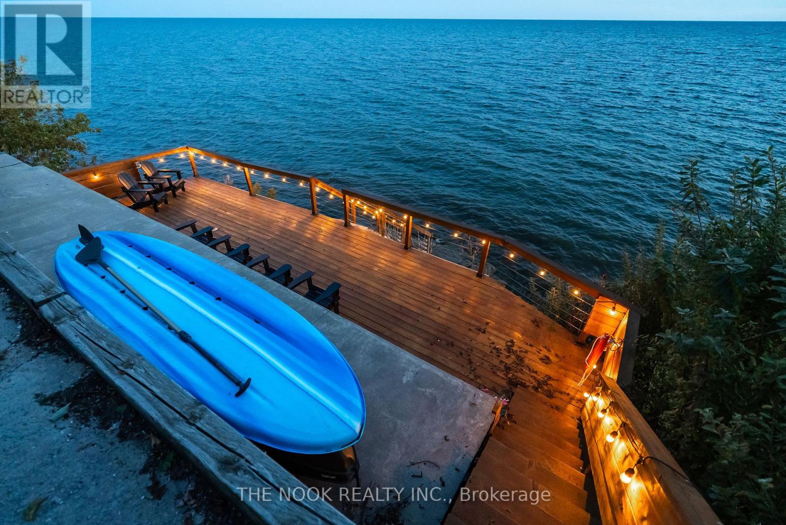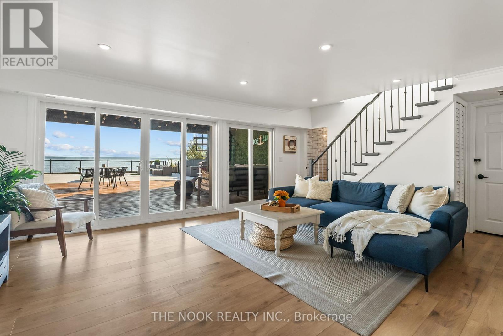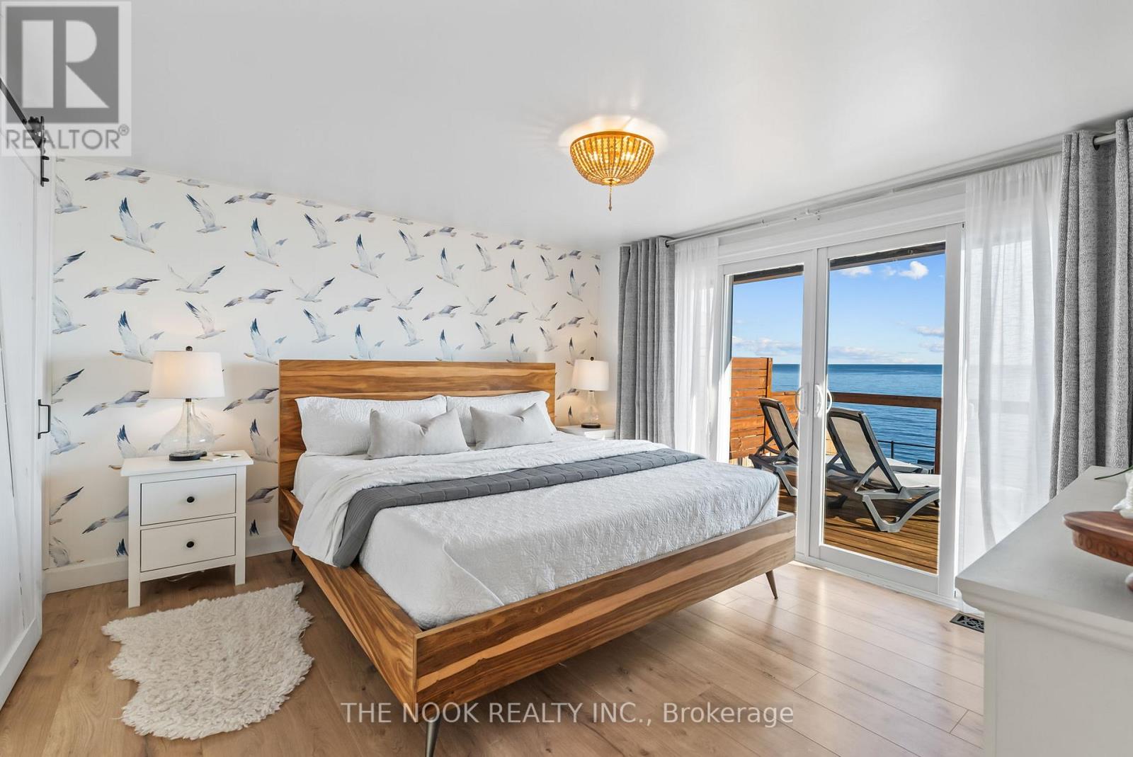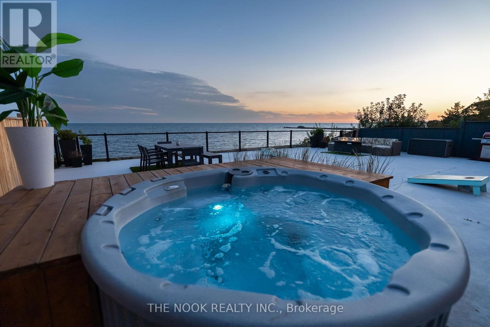 A Rare Waterfront Home Unlike Anything Else On The Market! Set Directly On The Shores Of Lake Ontario, This Incredible Property Blends Natural Beauty, Privacy & Modern Design In One Unforgettable Setting. Perched High Above The Water With Direct Shoreline Access, Its A Dream Spot For Kayaking, Paddle Boarding Or Simply Soaking In The Breathtaking Views From Your Own Private Deck At The Waters Edge. Fabulous Outdoor Space Featuring A Massive Multi-Level Patio With Hot Tub Overlooking The Lake & Multiple Areas For Dining & Entertaining All Positioned To Capture The Ever-Changing Colours Of The Sky & Water. From Sunrise To Sunset, This Home Offers Front-Row Seats To Natures Most Beautiful Show. Currently A Popular Local Beachfront Vacation Rental, This Property Also Offers A Strong Income Producing Opportunity. Perfectly Located Just Steps To Port Darlington's East Beach Park, With Splash Pads, Playgrounds & Waterfront Trails Right At Your Doorstep, This Bowmanville Address Offers Convenience W/Easy Hwy Access For A Quick Commute Into Toronto. Inside Has Been Completely Renovated Over The Past 5 Years: New Metal Roof, Electrical, Plumbing, AC, Windows & Doors. Open-Concept Main Flr Features A Kitchen W/Herringbone Butcher-Block Counters, Shiplap Walls & A Living Rm Framed By Wall-To-Wall Glass & Sliding Doors That Open To The Lakefront Patio. The Main Flr Also Includes A 3-Pc Bath, Laundry & Utility Rm. Upstairs, The Primary Suite Is A Private Retreat In The Sky With Over-Sized Glass Doors Leading To A Stunning Private Deck Set High Above The Water, 2 Additional Bedrms & A Renovated 3-Pc Bath. Gated Side Drive With Parking For Up To 6 Vehicles. Whether Used As A Year-Round Home Or A High-Performing Vacation Rental, This Is A Special Lakefront Opportunity! (id:51158)