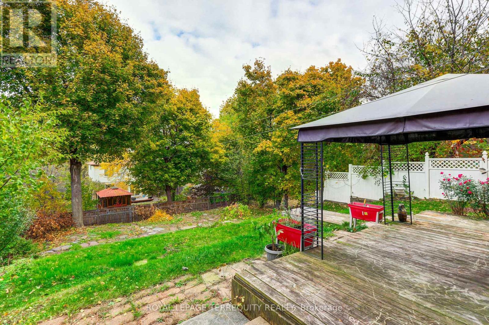 Beautifully updated 4-level detached backsplit in the heart of Erin Mills, featuring 3 spacious bedrooms and 3 bathrooms. The main floor offers a soaring cathedral-ceiling living room with large picture windows that fill the home with natural light. The open concept dining room flows into a modern kitchen with ceramic flooring, a dedicated eat-in area, and walkout to a private deck overlooking a beautifully landscaped garden which is ideal for relaxing or entertaining. Enjoy rich espresso hardwood flooring throughout, a main floor laundry, and a primary bedroom with 3-pc ensuite. The finished lower level includes a large bedroom/rec room, perfect as a family room, office, or guest suite. Additional features include pot lights, ceiling fans, and a gas BBQ hookup. A highly desirable neighbourhood close to top schools, parks, trails, shopping, transit, and major highways. (id:51158)