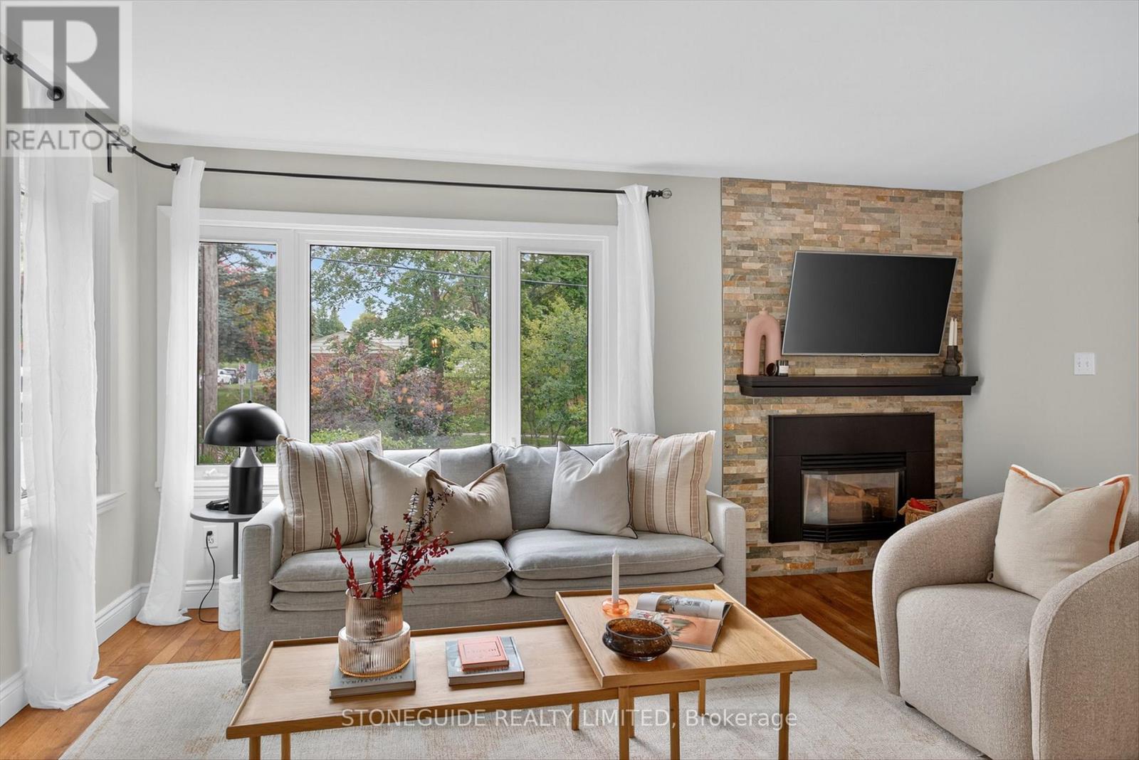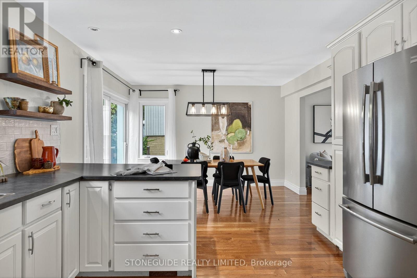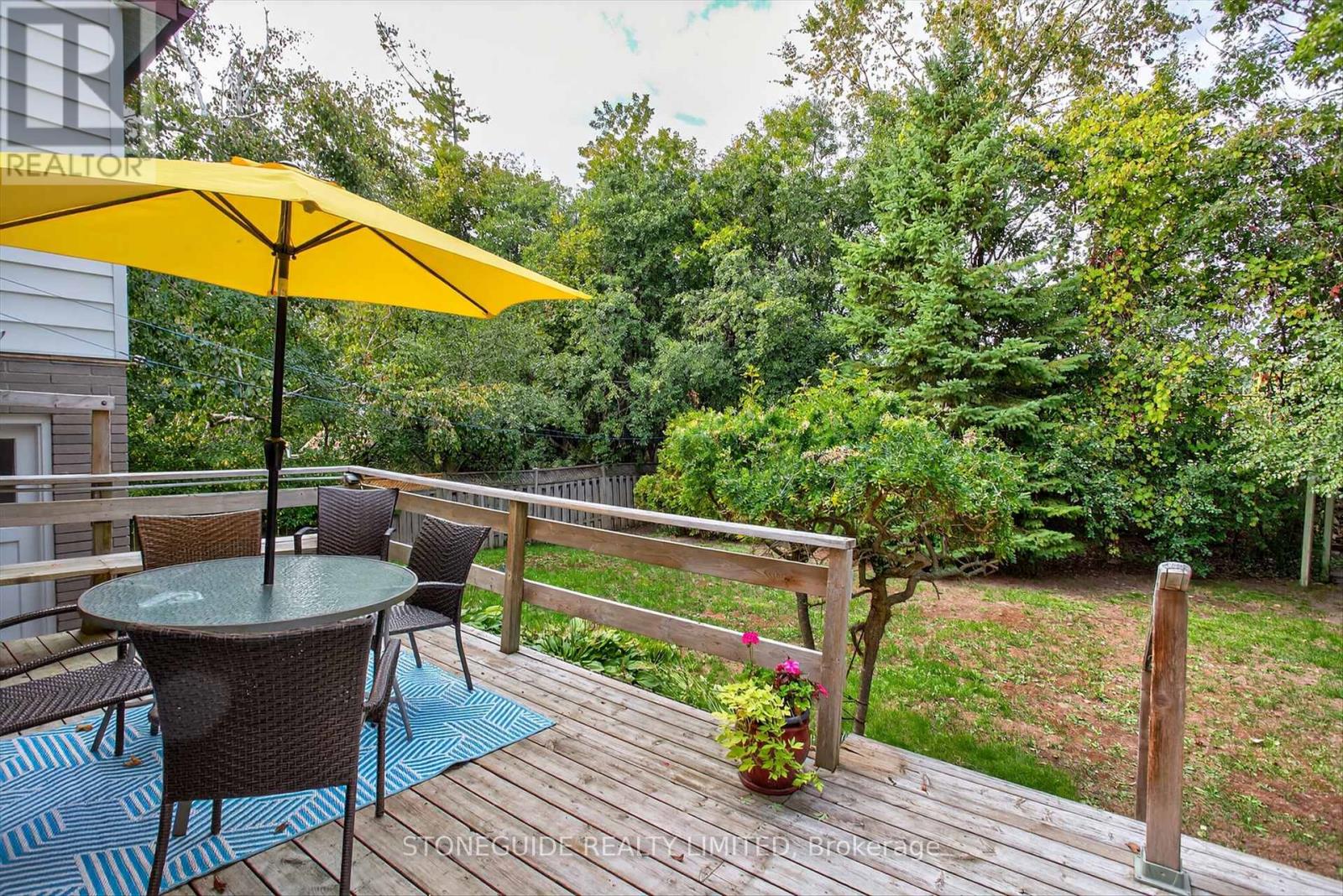 Nestled on a quiet, tree-lined street in the highly sought-after West End neighbourhood, this inviting four-bedroom, 2 bathroom home offers the perfect blend of comfort, functionality, and convenience ideal for families and professionals alike. Enjoy the ease of living just minutes from top-rated schools, the Peterborough Regional Health Centre, local clinics, pharmacies, and a grocery store all while coming home to a peaceful residential setting. Step inside to discover a bright, welcoming interior flooded with natural light from large windows that beautifully frame the surrounding greenery. The main floor offers a seamless flow between the living, dining, and kitchen areas -perfect for everyday living and effortless entertaining. From the kitchen, patio doors lead to a generous deck and a fully fenced backyard, complete with mature trees that provide shade and privacy. The home also backs onto St. Peter Secondary School, adding to the sense of open space. Upstairs, four spacious bedrooms offer plenty of room for the whole family. The primary bedroom features a large double closet, cozy gas fireplace, and peaceful views creating a relaxing retreat at the end of the day. Each additional bedroom is freshly painted and boasts hardwood flooring, offering flexibility for children's rooms, guest space, a home office, or creative studio. There is garage access to the house and the lower level features a recreation room for kids to hang out or to watch the big game and also has storage in the utility/laundry area. With its unbeatable location, freshly updated interiors, and family-friendly layout, this pre-inspected and move-in-ready home is a rare find in one of Peterborough's most desirable neighbourhoods. (id:51158)