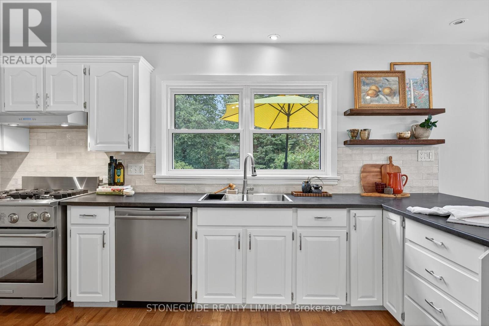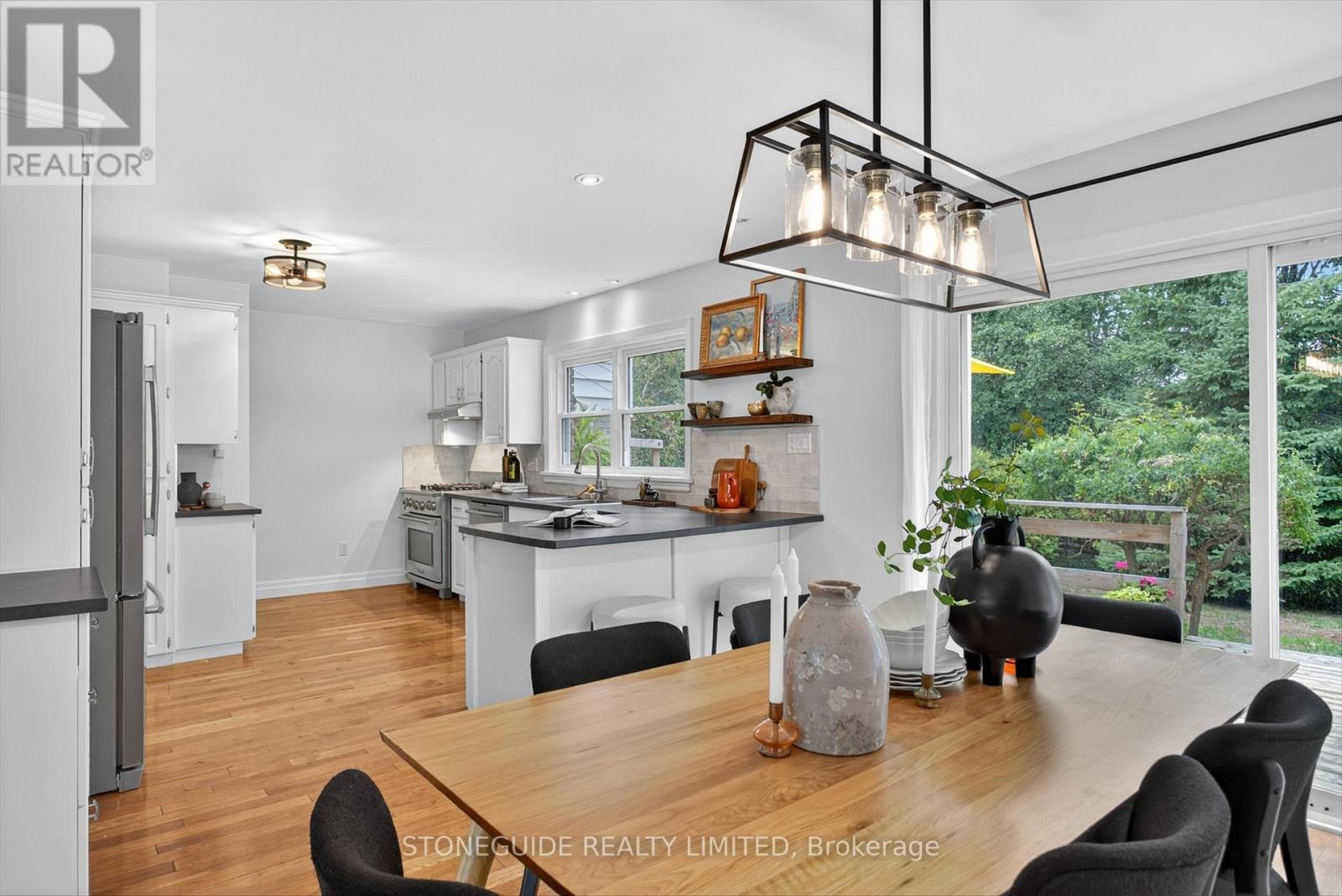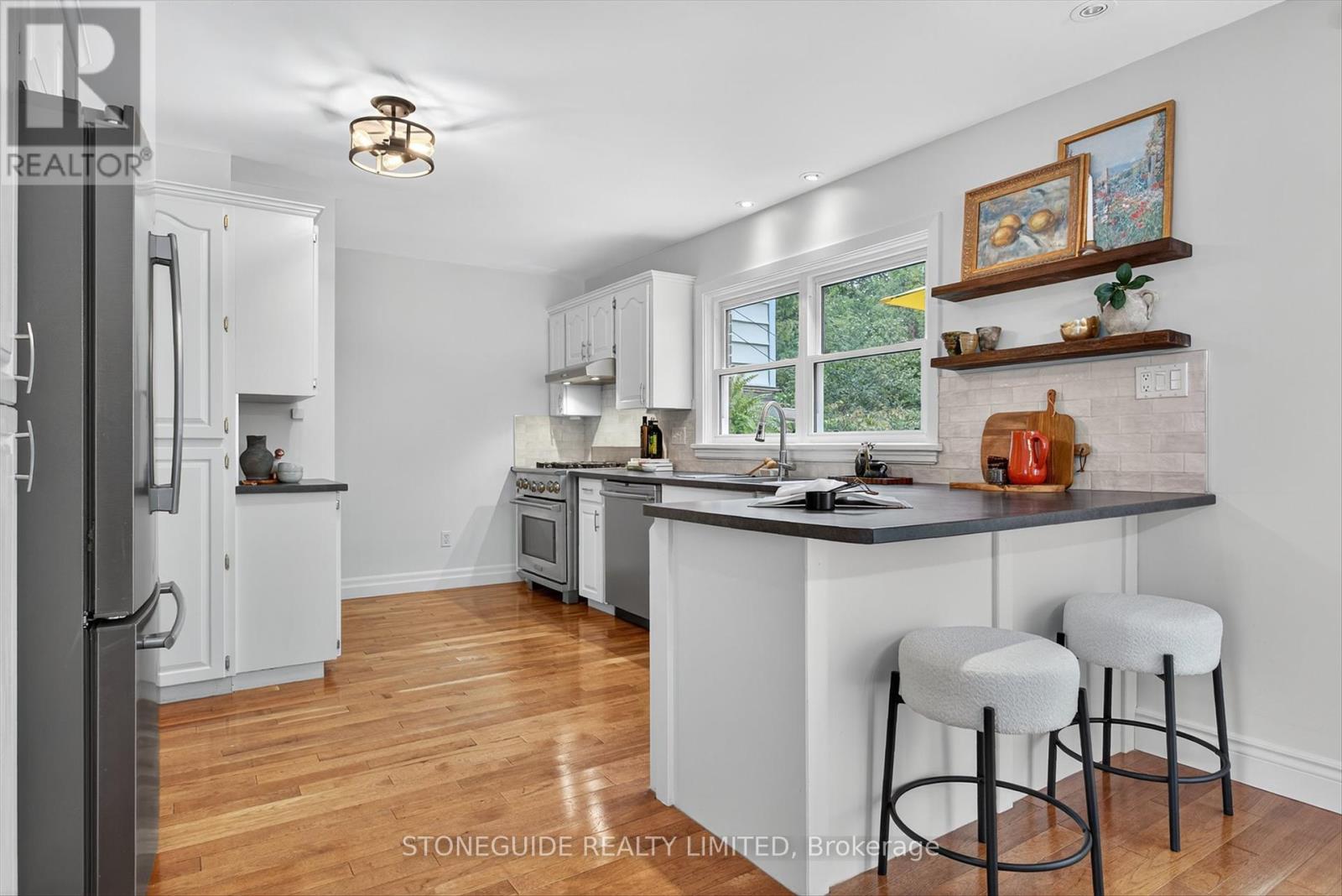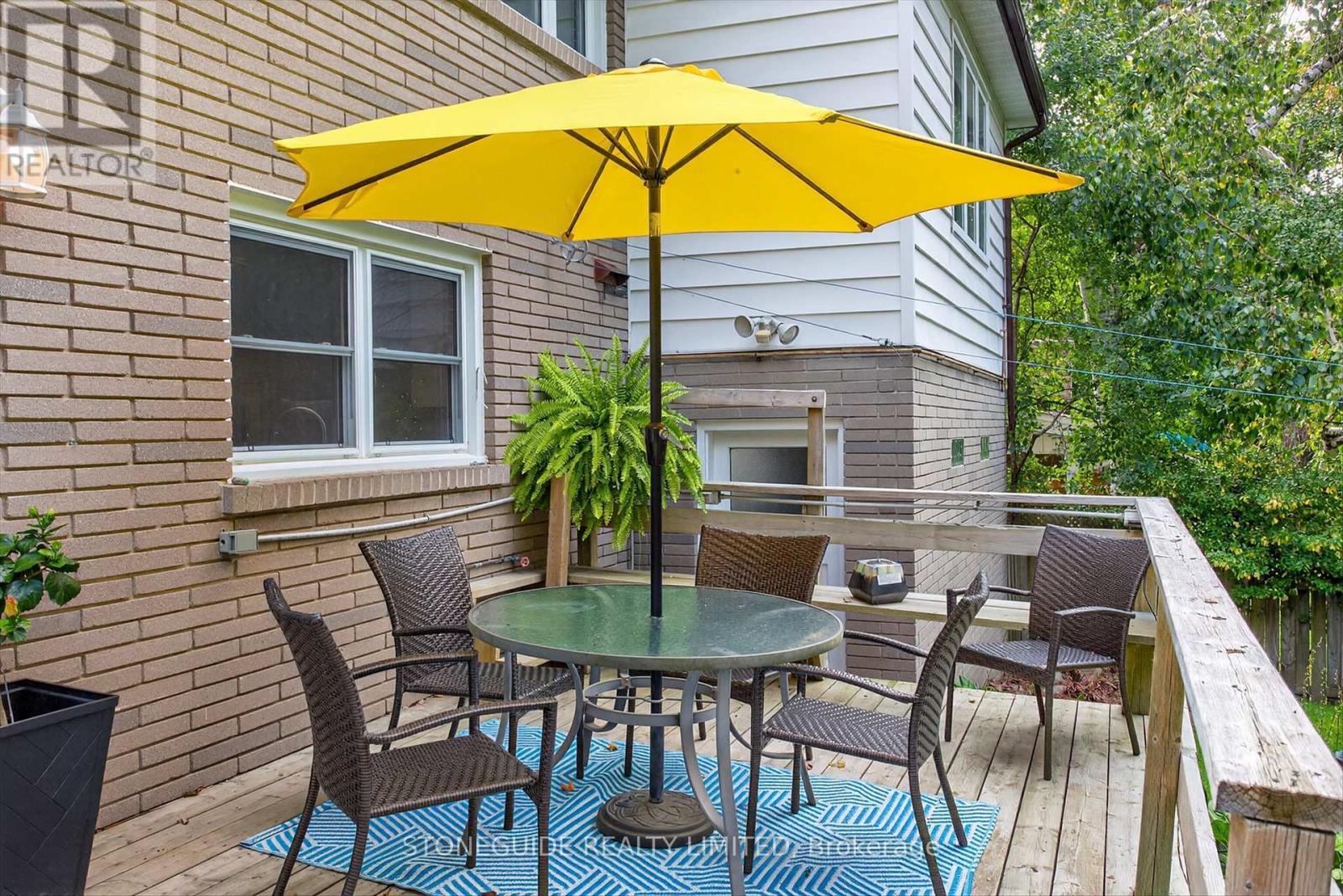 Nestled on a quiet, tree-lined street in the highly sought-after West End neighbourhood, this inviting four-bedroom, 2 bathroom home offers the perfect blend of comfort, functionality, and convenience ideal for families and professionals alike. Enjoy the ease of living just minutes from top-rated schools, the Peterborough Regional Health Centre, local clinics, pharmacies, and a grocery store all while coming home to a peaceful residential setting. Step inside to discover a bright, welcoming interior flooded with natural light from large windows that beautifully frame the surrounding greenery. The main floor offers a seamless flow between the living, dining, and kitchen areas -perfect for everyday living and effortless entertaining. From the kitchen, patio doors lead to a generous deck and a fully fenced backyard, complete with mature trees that provide shade and privacy. The home also backs onto St. Peter Secondary School, adding to the sense of open space. Upstairs, four spacious bedrooms offer plenty of room for the whole family. The primary bedroom features a large double closet, cozy gas fireplace, and peaceful views creating a relaxing retreat at the end of the day. Each additional bedroom is freshly painted and boasts hardwood flooring, offering flexibility for children's rooms, guest space, a home office, or creative studio. There is garage access to the house and the lower level features a recreation room for kids to hang out or to watch the big game and also has storage in the utility/laundry area. With its unbeatable location, freshly updated interiors, and family-friendly layout, this pre-inspected and move-in-ready home is a rare find in one of Peterborough's most desirable neighbourhoods. (id:51158)
