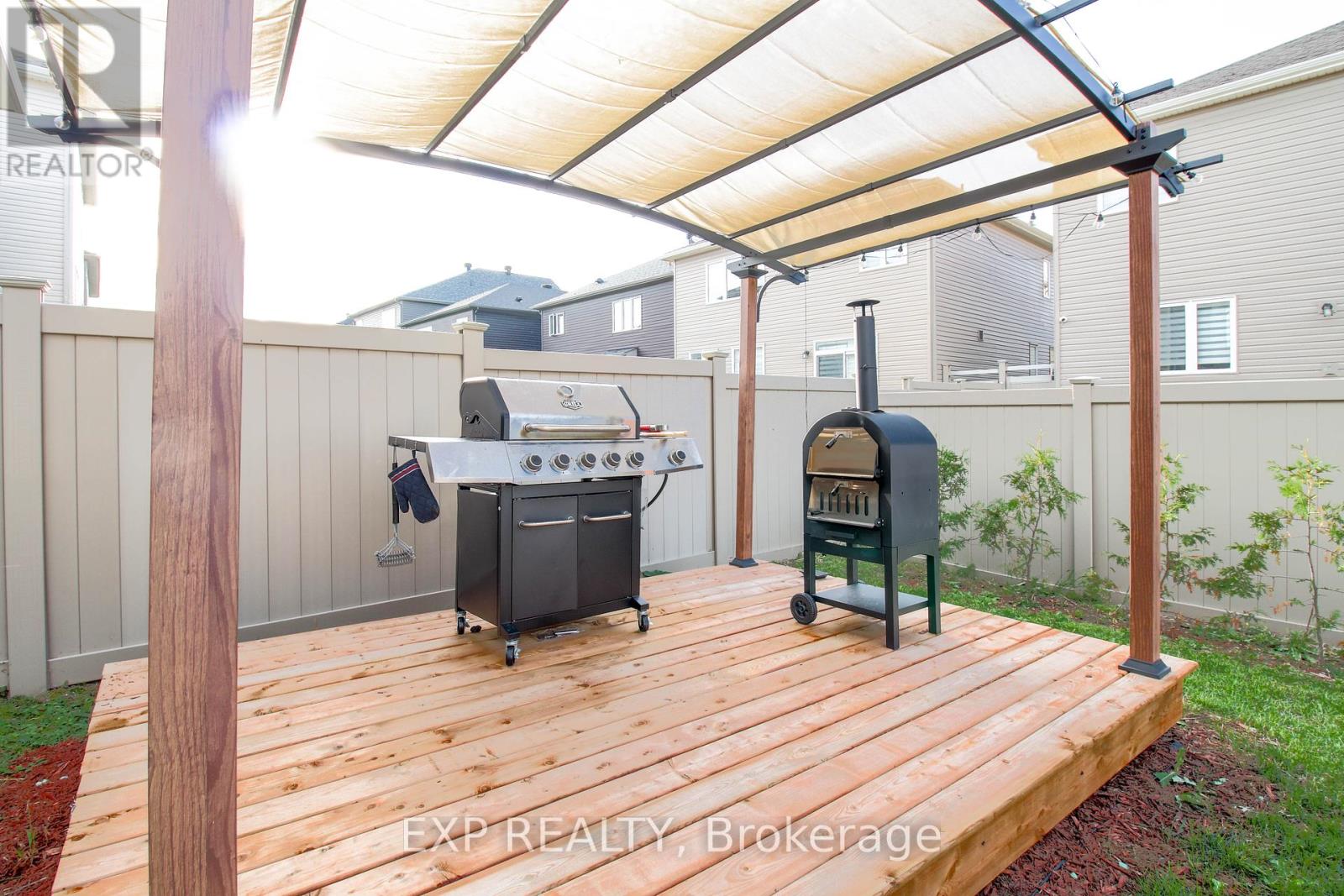 Welcome to this spacious 4-bedroom home for rent in the highly sought-after, family-friendly community of Quinns Pointe. The main floor impresses with 9-foot ceilings, opening from a welcoming foyer into a great room with a cozy gas fireplace and a formal dining room. The contemporary kitchen is the heart of the home, featuring extensive cabinetry, quartz countertops, stainless steel appliances, and a large island with a breakfast bar. A practical mudroom provides convenient access to the double-car garage. A beautiful hardwood staircase leads upstairs to the primary suite, which serves as a private retreat with its large walk-in closet and a luxurious 5-piece ensuite bathroom. Three more generously sized bedrooms and a full family bathroom complete the second level. Step outside into your fully fenced, landscaped backyard, an entertainer's dream- It includes a gazebo for outdoor seating and a second kitchen gazebo equipped with a BBQ and a wood-fired pizza oven. The location is ideal, just a 3-minute walk from Bus route 75, mins from parks, the Minto Recreation Centre, top-rated schools and Costco, Walmart and Farm Boy. Enjoy an easy commute with quick access to Highway 417. (id:51158)