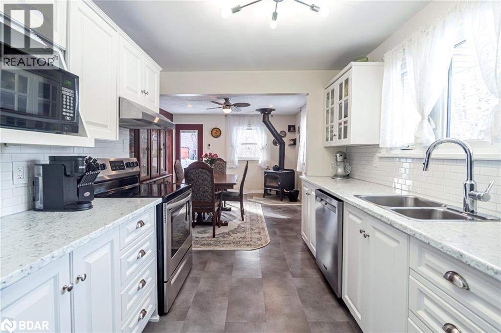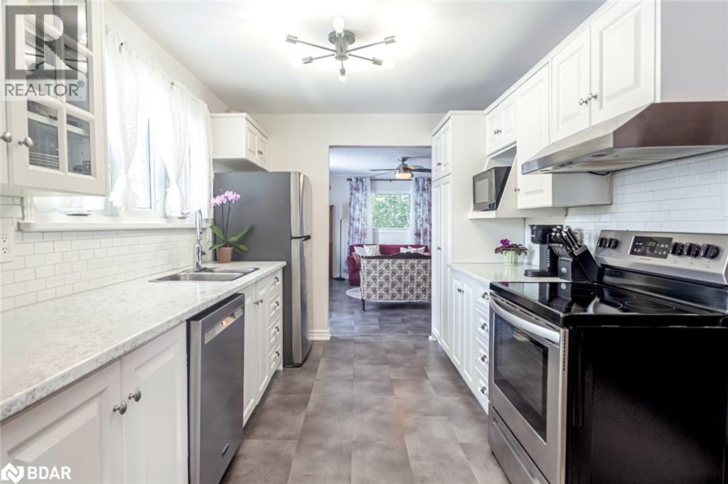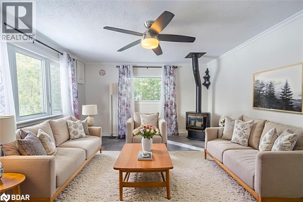 STEPS FROM THE BEACH, CUSTOM 17 X 20 FT GARAGE, PACKED WITH UPDATES, & READY TO WELCOME YOU HOME! This incredible bungalow set on a 100 x 100 ft lot is a must-see, packed with updates and nestled in a quiet, private area just a 5-minute walk to the beach. The freshly paved 6-car driveway provides ample parking, leading to a recently built custom 17 x 20 ft. garage with stunning handcrafted wood swing doors and a man door, ideal for hobbyists, outdoor enthusiasts, or extra storage. The beautifully landscaped yard features an updated patio, front and side walkways, a newer garden shed, and a fully fenced backyard with three gates and a privacy shield for added privacy. This home features all-new windows and doors, spray foam insulation under the house for added efficiency, updated hydro to 200-amp service, refreshed neutral vinyl tile flooring, and an updated washer and dryer. The modernized kitchen shines with freshly painted cabinets, sleek updated counters, upgraded stainless steel appliances, a stylish backsplash, and a new light fixture. The main bathroom has been refreshed with a new mirror, light fixture, and double rod. Two fireplaces add warmth and character, making this home inviting and cozy. A short drive takes you to Hwy 400, GO Station, shopping, restaurants, the library, the YMCA, medical offices, Sunset Speedway, and the Town Centre, which features a splash pad in summer and a skating trail in winter. Enjoy nearby soccer fields, baseball diamonds, tennis courts, walking trails, and year-round community events, including an antique car show, movie nights, live concerts, festivals, skating, tobogganing, and a polar plunge with food trucks. A place to call home, a location to love - this one is ready for you! (id:51158)