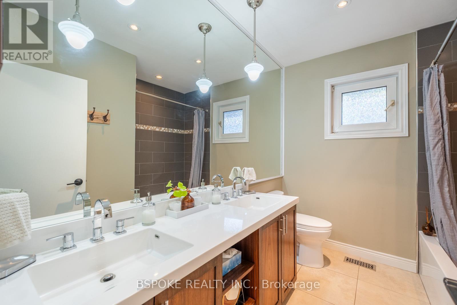 Set on a 76x120 ft lot in Princess Anne Manor, 76 Princess Margaret Blvd blends polish, comfort and everyday practicality. A broad, rounded driveway leads to a flagstone path and an enclosed front porch/mudroom that keeps everyday clutter organized and out of view from the main living areas. Inside, crown moulding and wainscotting carry from the foyer through the hall, living and dining rooms. The sunken living room features a gas fireplace and large front windows; the dining area connects to the renovated kitchen via a peninsula breakfast bar. The kitchen is quietly extraordinary, with floor-to-ceiling cabinetry, quartzite countertops with generous prep space, a built-in wine rack, an ice drawer, and a tucked-away charging station. At the rear, a family/sunroom wrapped in floor-to-ceiling windows filters UV rays and offers a walk-out to the backyard. Along the main hall, the private bedroom wing includes a spacious primary overlooking the yard with a walk-in closet and a 3-piece ensuite with rainfall shower; the family bath adds double sinks and a soaker tub, and the second and third bedrooms are well-sized with good closets -- almost 1,800 sq ft of main floor living space. The finished (and waterproofed) 1290 sq ft basement adds a dedicated office, a separate gym, a large family/media room with an ethanol fireplace, a 3-piece bath with a glass-walled walk-in shower, a polished laundry room with built-in cabinetry, counters and an undermount sink, plus a walk-out, and an unfinished storage room. The fenced backyard is professionally landscaped with a large stone patio, mature trees and a grassed play area. Improvements include new hardwood floors (kitchen, dining, family room, main hall), a rebuilt staircase, new kitchen and three bathrooms, new laundry room, new gym and office, new furnace and A/C, new patio, walkway and front steps, and professional landscaping. There's nothing to do. Just move in and enjoy the neighbourhood parks, trails and exceptional schools. (id:51158)