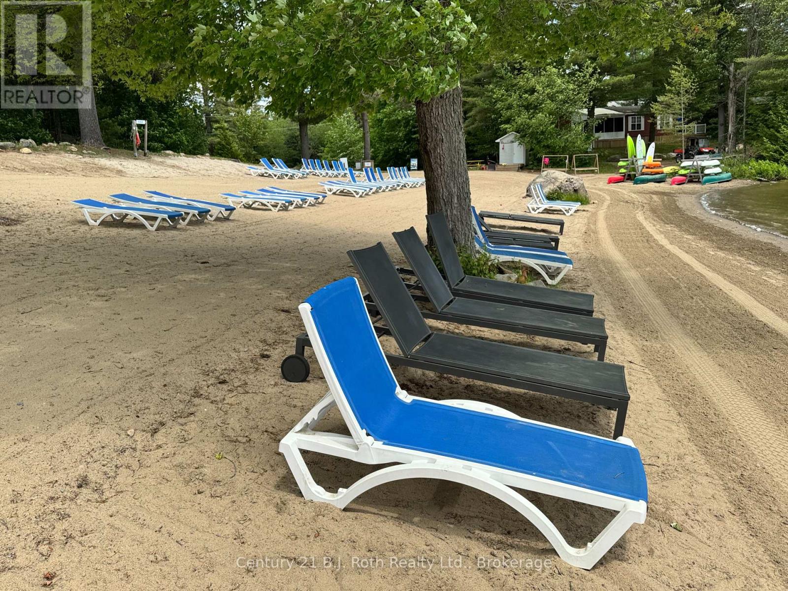 Enjoy a large private area backing onto beautiful quiet treed ravine on this spacious lot away from neighbours on either side. Experience affordable Muskoka cottage living in this 2 bedroom, 1 bathroom clean unit. Nestled in a well treed quiet area of the Resort, perfect for family and friends. Close proximity to amenities, including a short walk or golf cart ride to the beautiful beach. The Lake is spring fed with a hard sand bottom. Nice 10x20 deck screen room for additional living space. Firepit and outdoor chairs for you and your guests. A multitude of scheduled activities and events for all ages free of charge. Kayaks, canoes, and paddle boards are available free for your use all season from May 1 to October 31. Resort fees include lawn maintenance, hydro, sewers and water. You can choose to become part of the Resort Rental Program for the times you are not using the cottage. Click on the multimedia button below, for a virtual tour. (id:51158)
