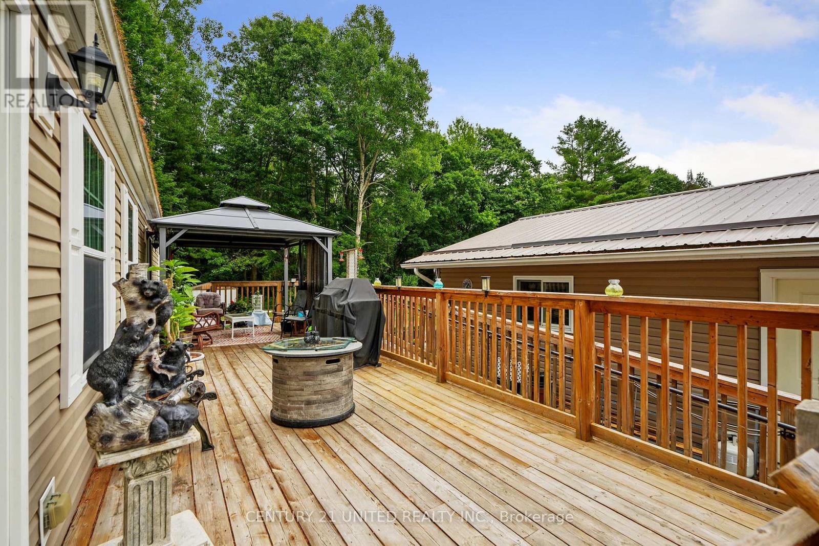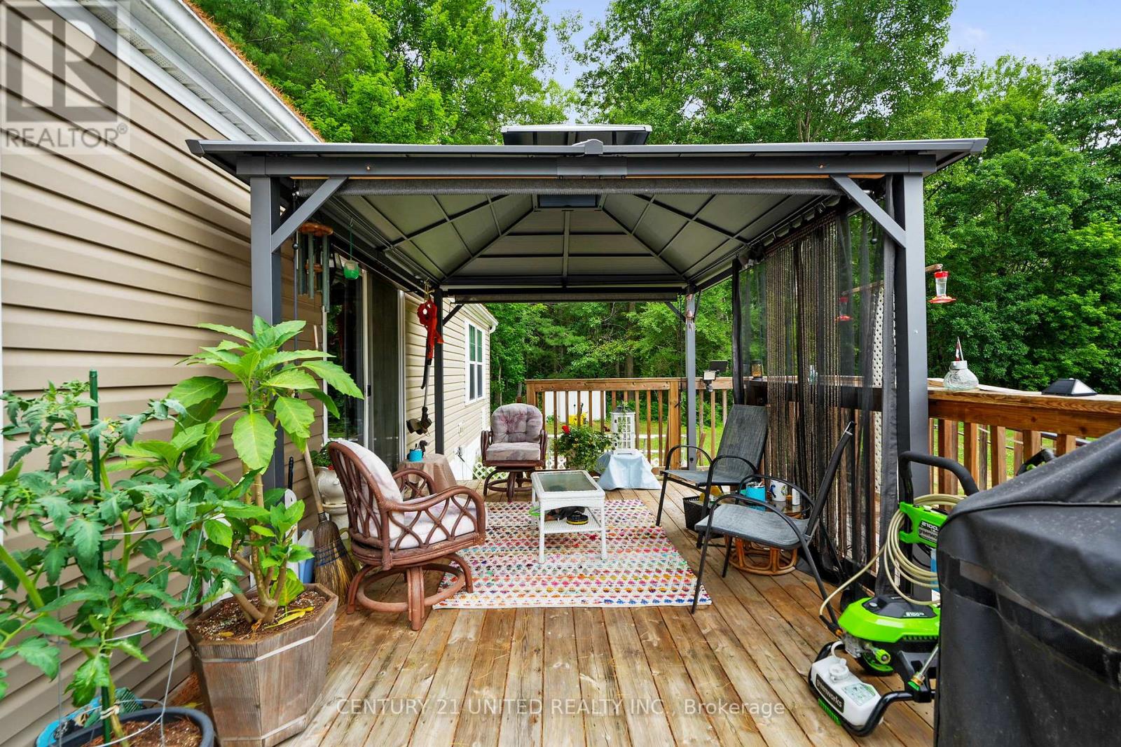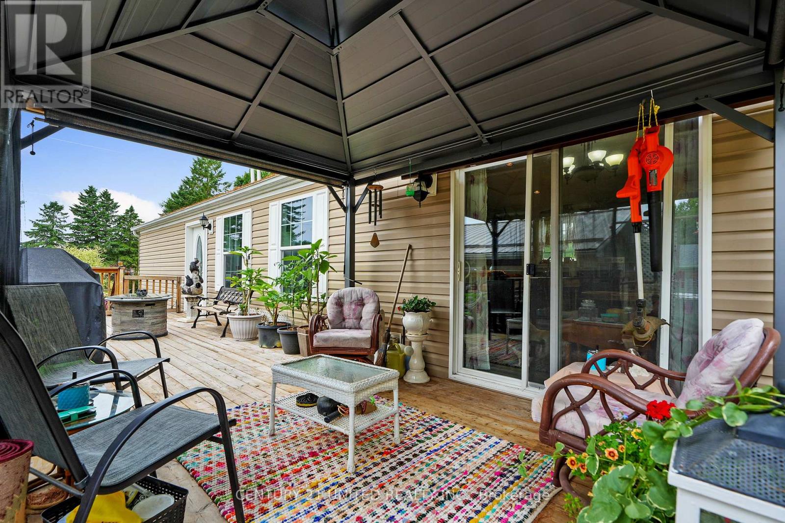 Welcome to this 2 bedroom, 2 bathroom 14 year old beauty in Sama Park. Just around the corner from the Ranch Restaurant! Enjoy retirement in this established park situated between Havelock and Marmora and close to many lakes and boat launches. This home features a double car garage (24X24), a huge deck with a brand new gazebo with roll down blinds, propane firepit as well as plenty of yard space. Extra sturdy ramp provides easy access to the deck. Driveway and septic beds were redone in 2023. Eavestroughs use leaf filter system for easy cleanup Two new freezers, new beverage and brand new stackable washer and dryer are all included. Park fees of $836.04 include taxes, water and lease. 40 minutes to Peterborough and the 115, 20 to Campbellford, 10 to Marmora. (id:51158)