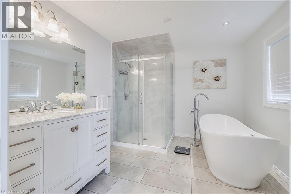 Welcome to this stunning 2-storey home in a tranquil, highly desirable Hespeler neighbourhood—now with even more upgrades. Rarely offered with 4 bedrooms upstairs and 2.5 bathrooms, this ravine-backing property is perfectly located just 5 minutes to Hwy 401 and steps from schools, parks, and trails. The main floor is designed for both entertaining and family life, featuring two inviting living rooms, including a cozy family room with fireplace, an eat-in kitchen remodeled with major upgrades, and a formal dining space for gatherings. Upstairs, the expansive primary suite is a true retreat, complete with a spa-inspired 2019 ensuite showcasing a soaker tub and glass shower. Three additional bright bedrooms and a family bath complete the upper level. The unfinished basement, roughed in for a 3-piece bath, offers incredible potential for future expansion. Recent updates include a WiFi-enabled smart thermostat, cold climate heat pump with hybrid furnace, R60 attic insulation, insulated garage doors, and roof guards—providing efficiency and comfort year-round. At the exterior, enjoy new landscaping front and back, an interlocking brick driveway, and a new patio enclosure overlooking the private ravine lot adjacent to Sault Park. Inside and out, the home has been elevated with a brand-new fridge and dishwasher (installed June 2025) with 5-year warranties, 24/7 Security cameras included, no subscription fee, and all-new interior/exterior lighting and fan fixtures with smart WiFi switches. Even the front door lock has been modernized with fingerprint and code access. This is a rare find that blends style, comfort, privacy, and smart-home technology in one exceptional Hespeler home. Book your private showing today! (id:51158)