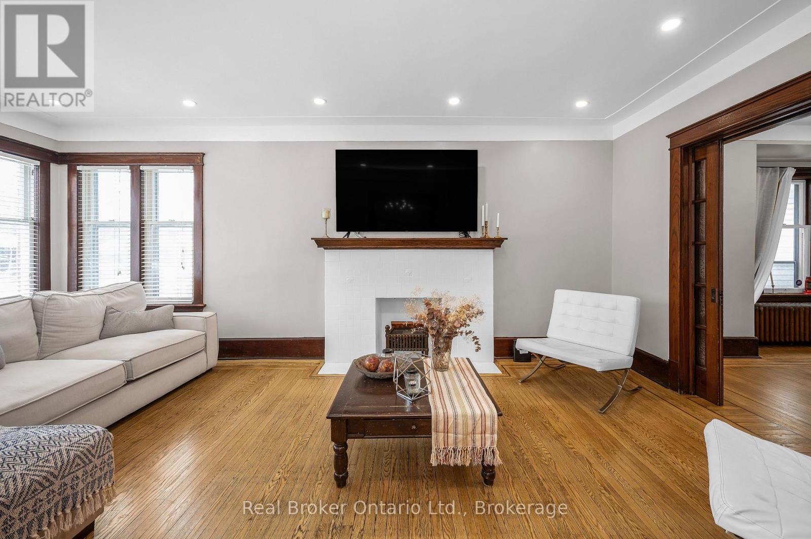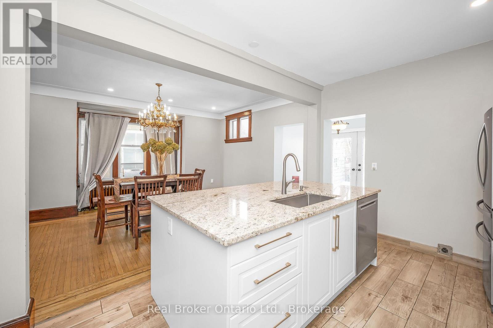 Nestled on prestigious and historic Proctor Boulevard, this exceptional 2 1/2 storey home offers a rare blend of heritage character and thoughtful modern updates. Once home to some of Hamilton's notable historical figures, the property beautifully preserves its original charm with rich wood trim and gleaming hardwood floors, while featuring a fully updated kitchen designed for modern living. The spacious layout includes 5 bedrooms-two located in the fully finished attic-and 3 bathrooms, offering plenty of room for family life. Have the benefit from bright mornings in one of two inviting sunrooms, or enjoy the finished basement complete with a rec room, kitchen, and separate entrance, ideal for guests or potential in-law accommodations. Outside, a private backyard and oversized driveway with detached garage adds both comfort and convenience. Located just steps from shops, restaurants, and everyday amenities with easy highway access, this remarkable home perfectly balances historic elegance with contemporary living. (id:51158)