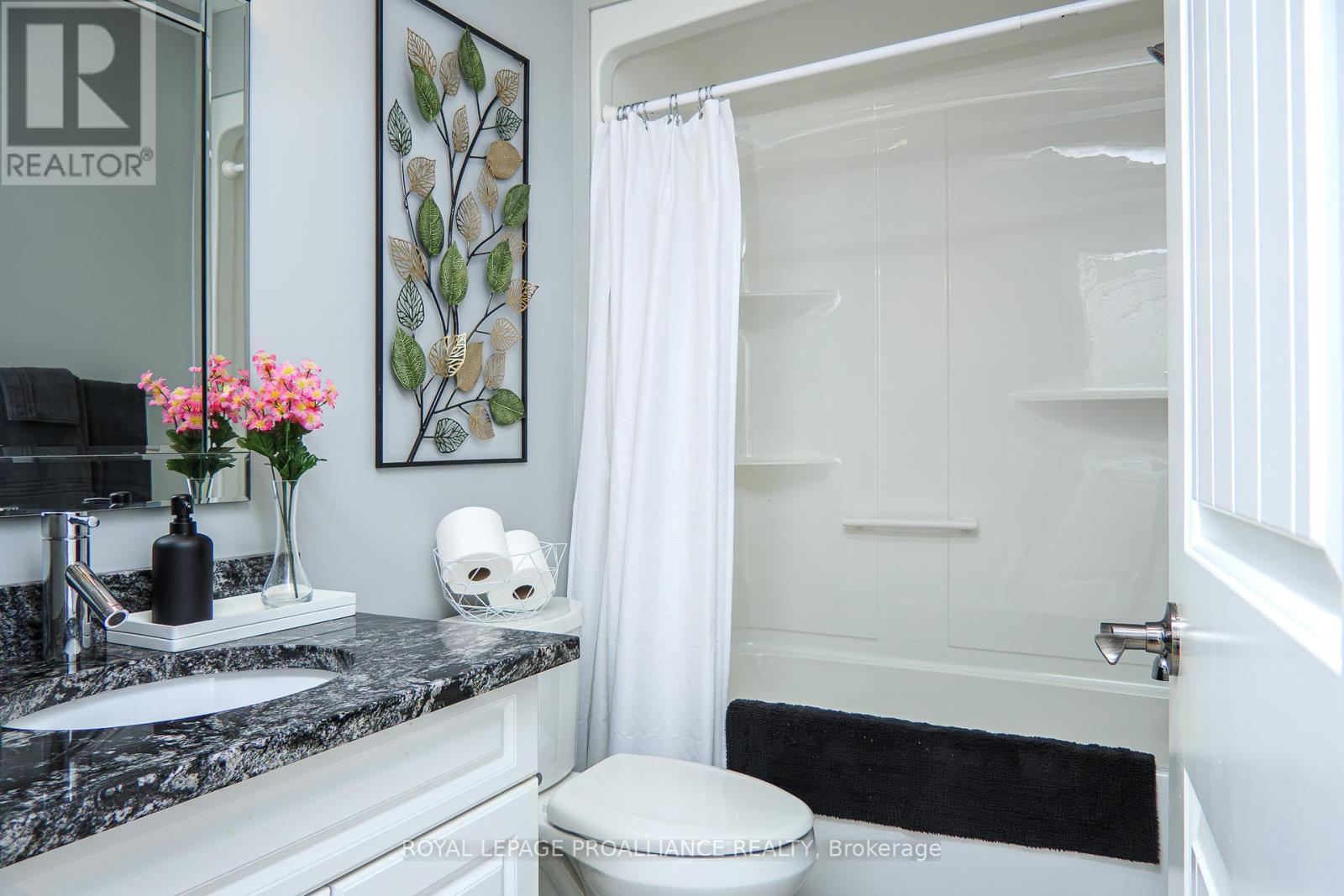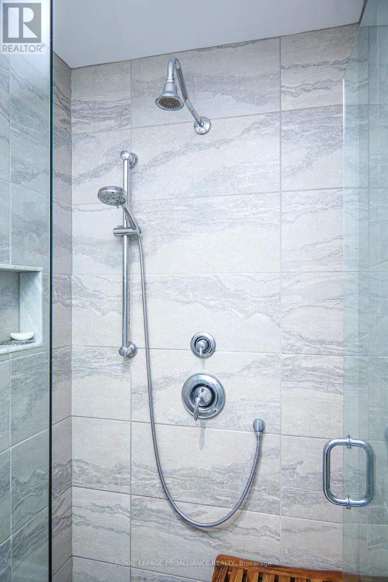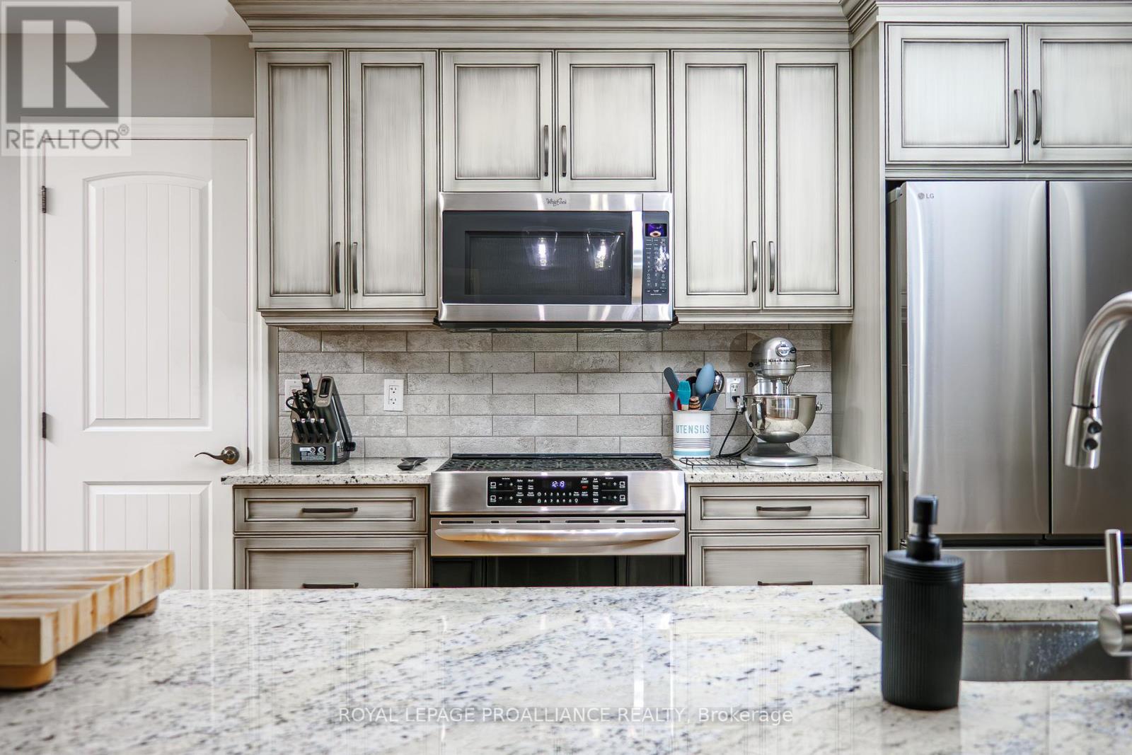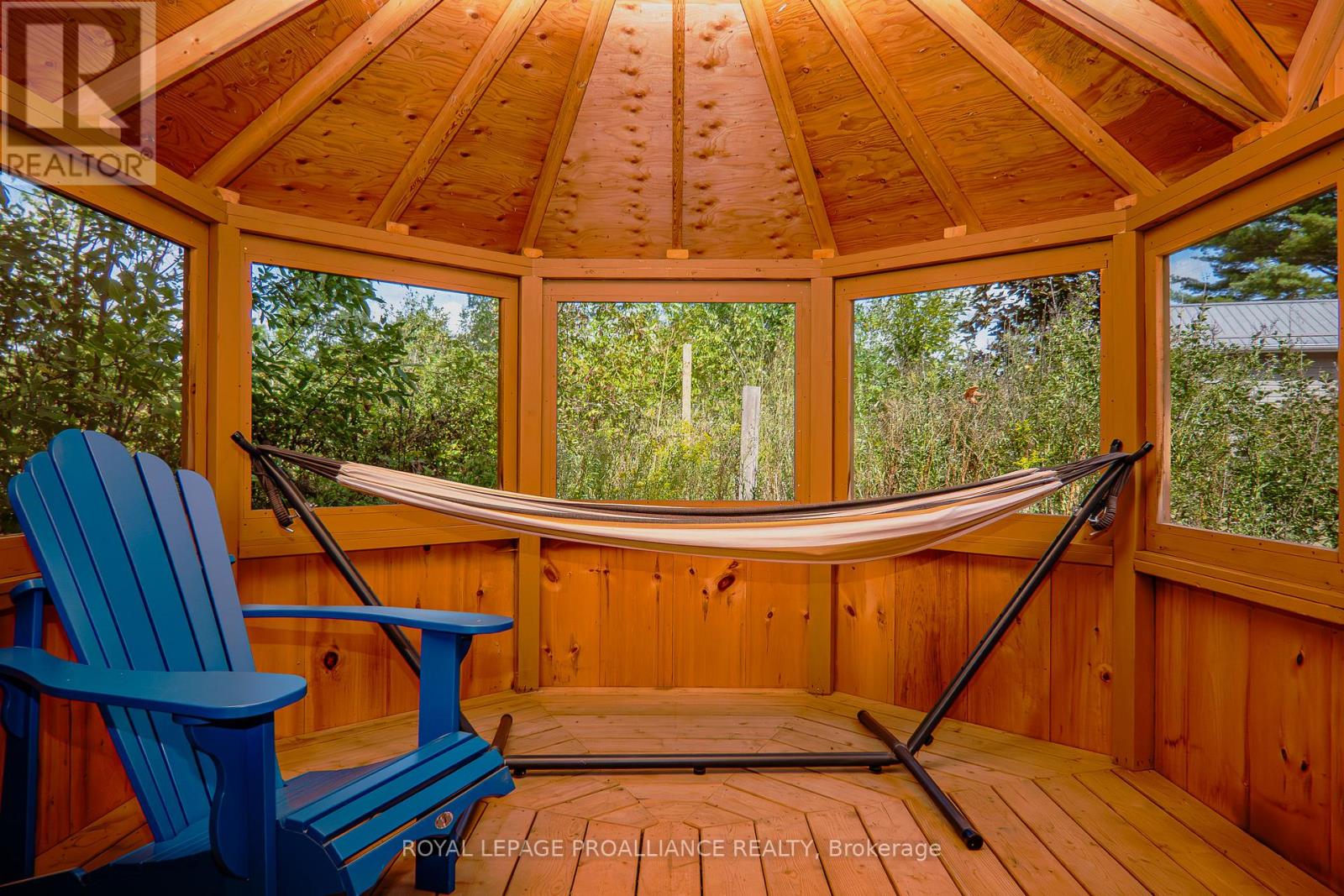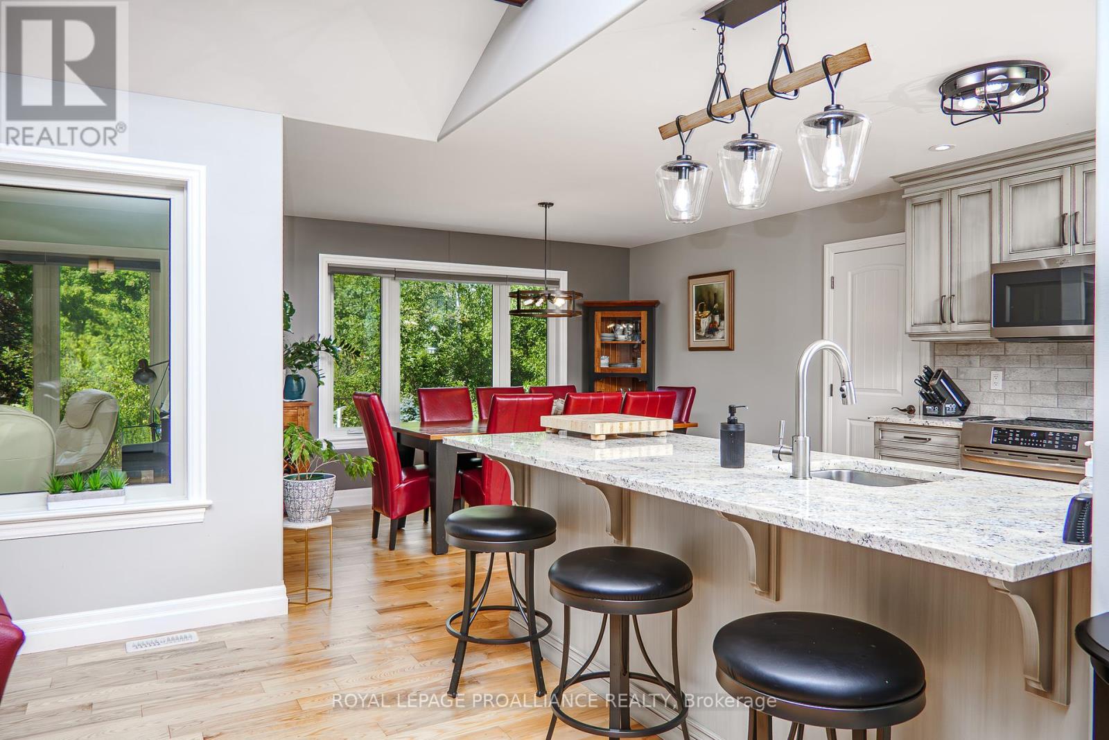 Absolutely stunning 2016 bungalow offering 1925sqft on MAIN FLOOR. Better value than new, this pristine home is in impeccable shape & offers all the expensive updates & features that are extra with new construction. Fully paved drive with parking for 8+ cars, sep. detached dbl garage with hydro, insulated attached dbl garage with electric car charger, 12KW generator, gazebo, storage shed, alarm system, window coverings, appliances, owned HWT, water softener, UV light & much more. Situated on a gorgeous 1.3acre lot, surrounded by trees for the ultimate in privacy. Stunning views of the Moira River out front. Long paved drive with security gate leads to a landscaped front yard offering a variety of fruit trees, walkways & shrubbery. The detached garage & storage shed are perfect for those looking to enjoy space for cars, boats or keep as a workshop. Around back is a relaxing screened-in gazebo overlooking the serene yard & mature trees. A covered front porch welcomes you home & is a great place to enjoy your morning coffee. Inside, this spacious home is full of vaulted ceilings & offers a well laid out, open floor plan including a 240sqft 4-season sunroom. In the centre of the home is a cozy living rm, highlighted by a floor to ceiling gas F/P with tile mantel AND tall vaulted ceiling with decorative wood beams. Kitchen boasts beautiful grey cabinets to the ceiling featuring crown moulding & wine rack. Other kitchen features incl: large walk-in pantry, granite counters, tile backsplash, peninsula island with seating & formal dining rm. Spacious Primary suite also has a vaulted ceiling plus large WIC with shelving & spa-like ensuite bath with dbl sinks, quartz counters, separate toilet area & walk-in glass/tile shower. 3 bdrms on main floor (front bdrm used as office) & 2 full baths. Other features incl: solid Ash hdwd flooring, nat. gas heat, C/Air, M/F laundry with sink, R50 insulation in attic, stone & vinyl exterior & drilled well producing 15GPM. Move right in. (id:51158)