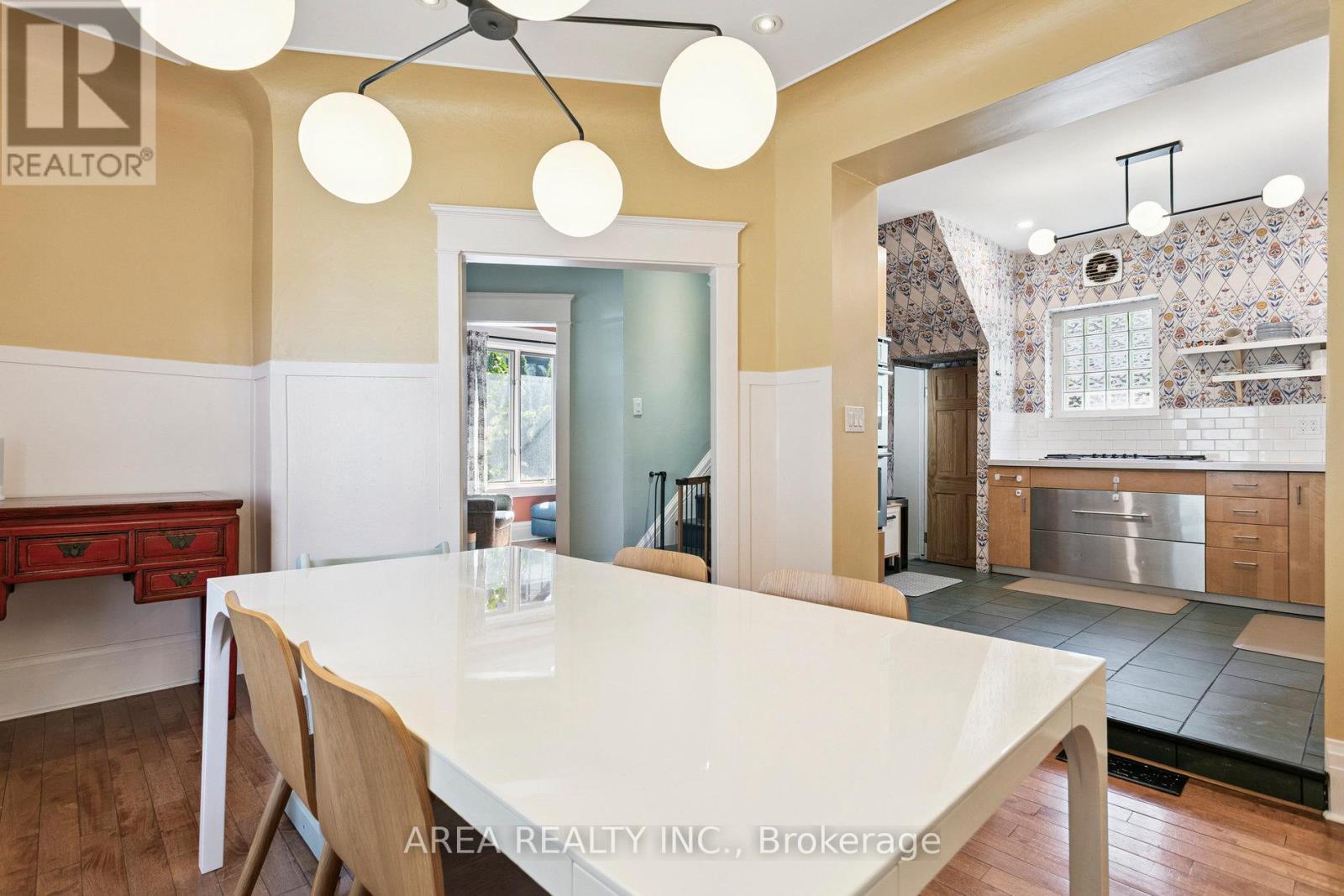 Welcome to 78 Chelsea Ave! This detached 3+1 bedroom house is nestled on quiet, tree-lined Chelsea Ave. Blending classic Toronto architecture with modern upgrades, this 2-storey home has nothing but charm. With a well-appointed main floor, enjoy a living room with big bright windows and built in shelving. The open concept dining room and kitchen is perfect for entertaining. With plenty of counter space and high end appliances, the kitchen is a chef's dream. The second storey boasts 3 full bedrooms, including a sunroom off the primary bedroom, perfect as a home office space. The recently upgraded bathroom features luxury and functionality with beautiful finishes and plenty of storage space. Enjoy a finished basement with a second full washroom and plenty of extra storage space. Step outside to your own backyard oasis with laneway access and a parking pad. Everything you need is a short walk from your backyard! Steps to Dundas West Station, UP Express (less than 10 min ride to Union!), Fresh Co, Shoppers, The Junction, Roncesvalles & High Park! (id:51158)