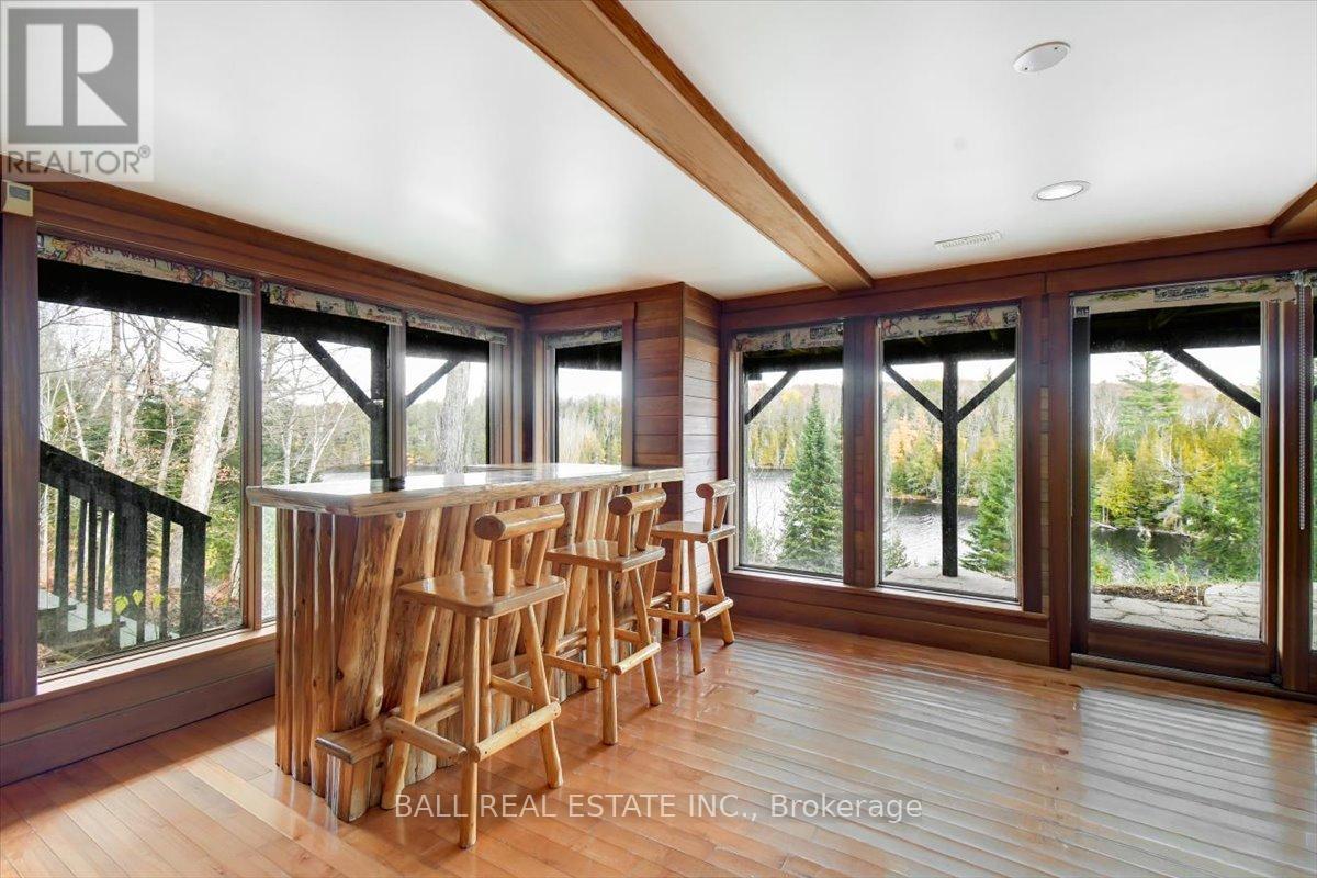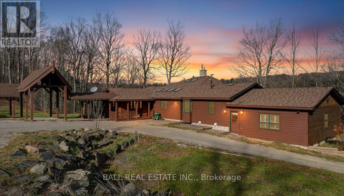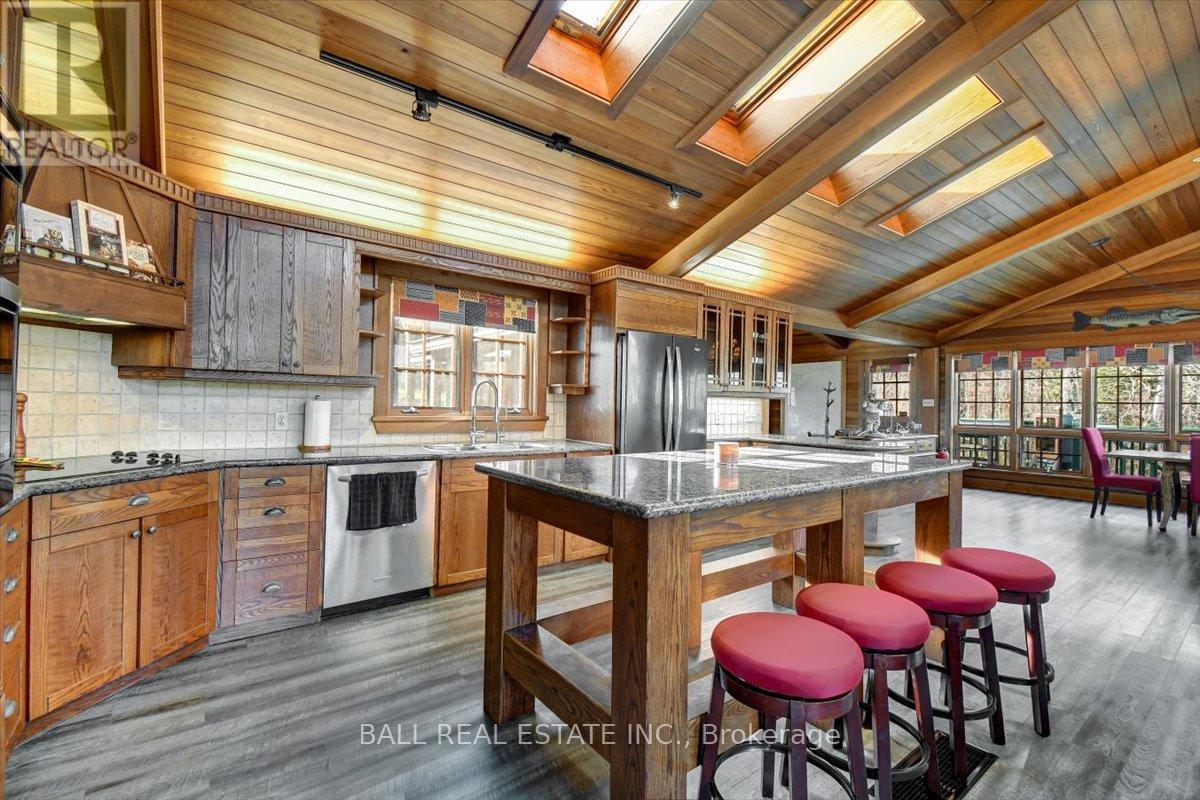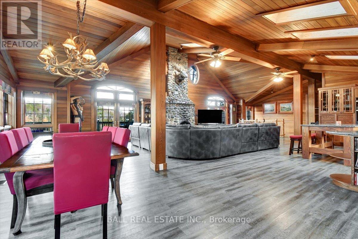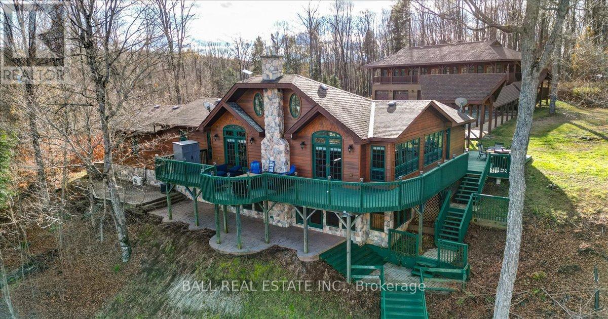 Welcome to Freedom Lake - Your Private 392-Acre Retreat! Discover an unparalleled escape at Freedom Lake, breathtaking 392-acre property featuring your very own private lake, trails, and total seclusion- 25km from Bancroft and under three hours from the GTA. This executive-style estate offers the ultimate combination of luxury, nature, and opportunity. Freedom Lake spans approx. 1,600 feet long, with 4,450 feet of pristine shoreline and a max. depth of 50 feet. It is stocked with pike, bass, trout, and perch! The 1km private driveway ensures privacy with no neighbours in sight. At the heart of the property sits a meticulously finished four-bedroom, two-bathroom home designed with exceptional attention to detail. The living space showcases vaulted ceilings, skylights, a wood-burning fireplace, and a custom kitchen with granite countertops, stainless steel appliances, and premium cabinetry. The primary includes a double Jacuzzi tub and a spa-inspired ensuite, with updates to the main 3pc bath in 2025. The finished walk-out basement offers even more living space. Comfort is assured year-round with a propane furnace and central air, while an oversized Generac system ensures peace of mind during power outages. Step outside to a large wraparound deck with stunning views of the lake - enjoy sunrises/sunsets from all angles! A highlight of this property is the heated five-car garage, upgraded in 2025 with high-efficiency heat pumps and air conditioning. Above the garage are four self-contained units, each featuring a three-piece bathroom, a common area with a full kitchen and living space-perfect for multigenerational living, guests, or a potential bed-and-breakfast. All furnishings and appliances in the units/living area are included. Brand-new plumbing (2025), a dedicated septic system, and its own water supply from the lake with UV filtration. Whether you dream of a luxury family retreat or an income-generating property Freedom Lake delivers! Welcome home. (id:51158)