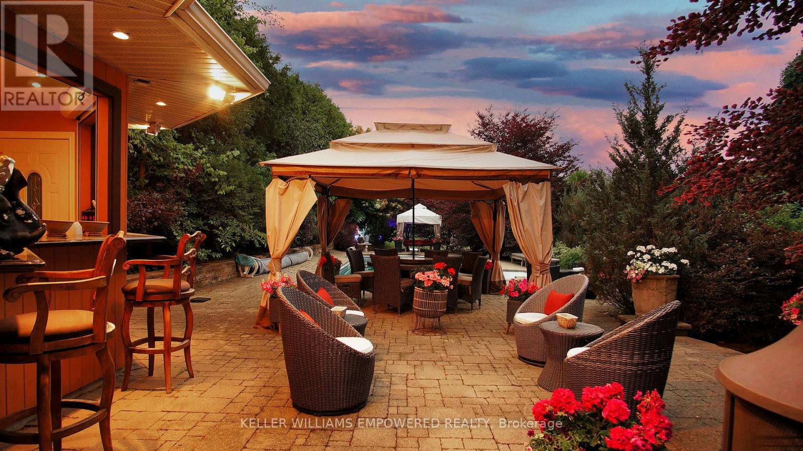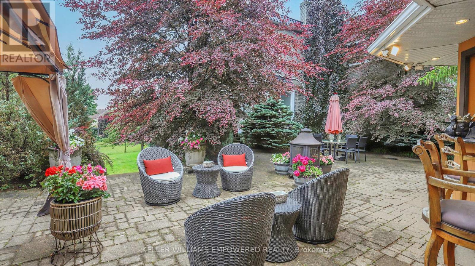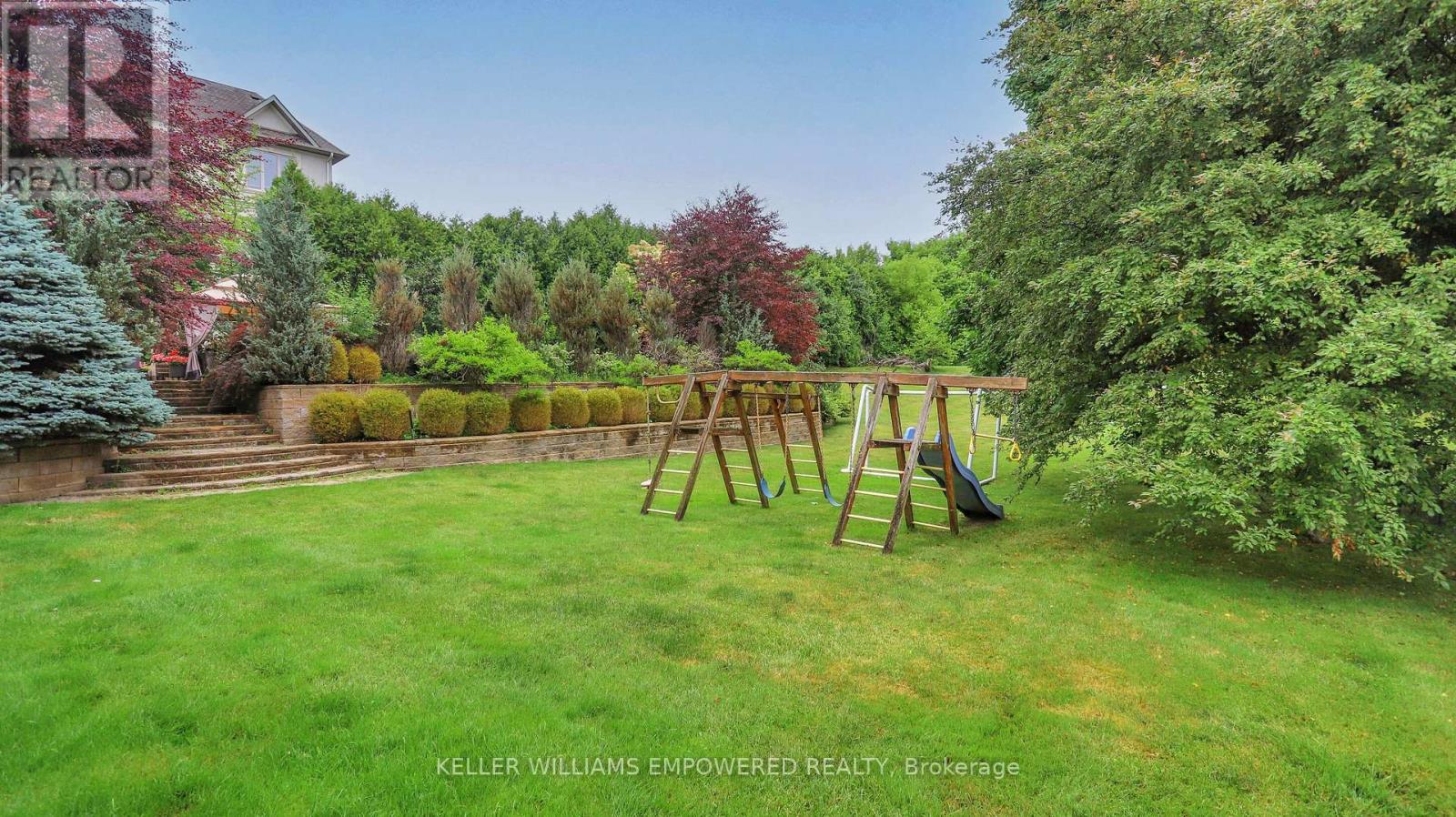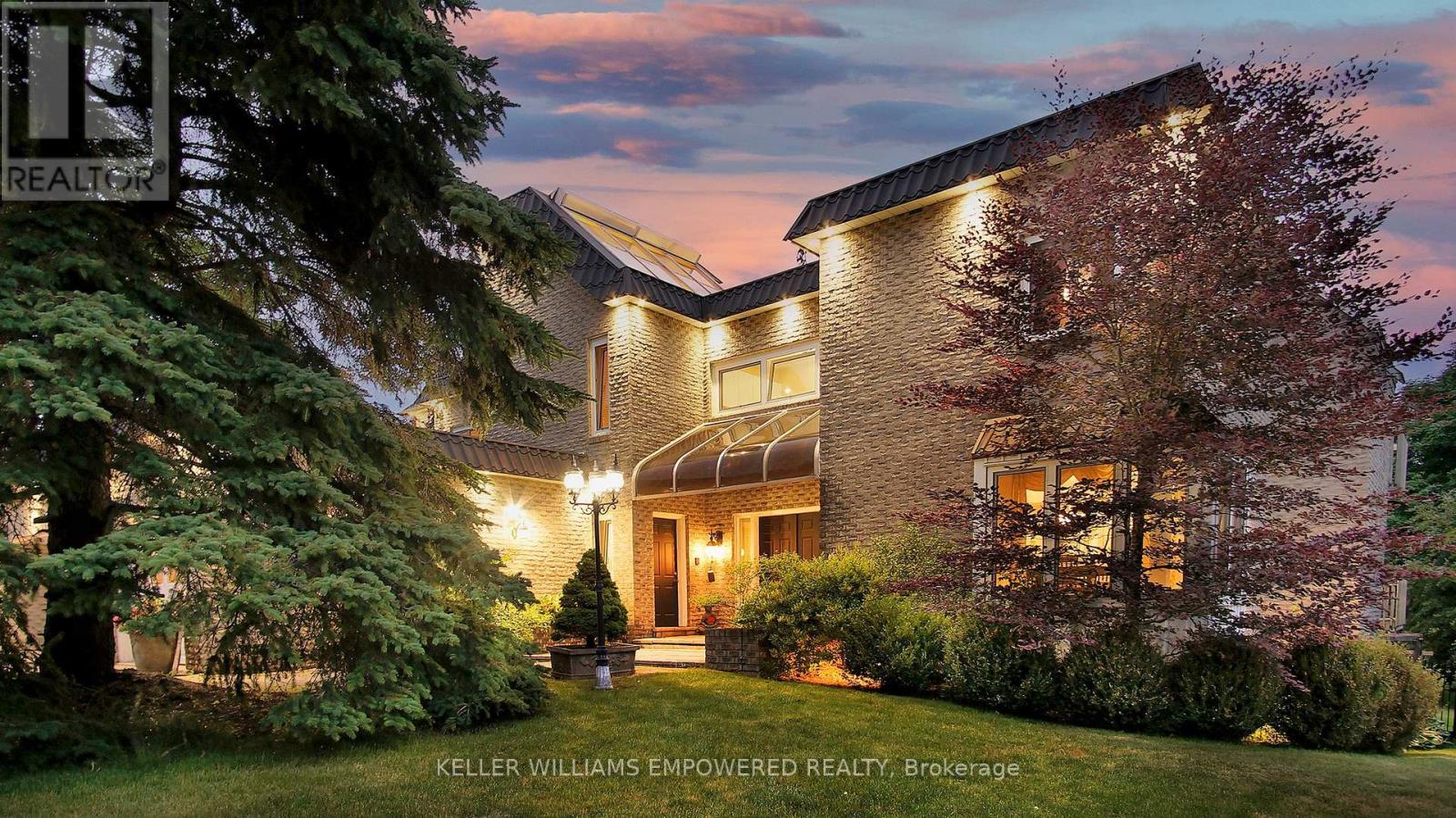Sitting on a fantastic 1.01 acres in prestigious Woodland Acres, this custom-built estate offers ultimate privacy, luxury finishes, and breathtaking views. This is a one-of-a-kind retreat offering unmatched comfort and natural beauty. The landscaped front grounds feature towering mature trees and lush perennial gardens with abundant privacy. In the rear, a true backyard oasis awaits with an inground pool, large gazebo, swing set, fantastic table space, and a fully equipped cabana with granite countertops, stainless steel fridge, smooth-top stove, two sinks, and a 3-piece bath with separate shower area. Multi-level stone patios, staggered gardens, and expansive lawns make this an entertainers dream. Inside, a grand 2-storey foyer with skylights and marble floors leads to elegant principal rooms, including a family room with a floor-to-ceiling fireplace and balcony walk-out, a living room with medallion ceiling and window bench, and a sunlit family room. The gourmet kitchen boasts Blue Pearl granite floors/counters, Sub-Zero and Miele appliances, a large island, and built-in desk, with a breakfast area that walks out to the rear patio. Upstairs, the primary suite features hardwood floors, a sitting area with balcony access, wood-burning fireplace, and a spa-like ensuite with Jacuzzi, His & Hers vanities, glass shower, and cathedral windows. The second bedroom has its own ensuite with glorious views of the rear grounds. Bedrooms three and four share an architecturally eye-catching bathroom, including a 5-pc marble bath with sloped glass roof. The second-floor laundry room adds convenience. The walk-out lower level offers a rec room with fireplace, steam sauna, 2-pc bath, and plenty of storage. Additional highlights include geothermal heating, European multi-lock windows, three fireplaces, French doors, pot lights, skylights, and multiple balconies. Walk to top-ranked St. Theresa CHS and drive to SAC, SAS, HTS, Lauremont, CDS & Vilanova. (id:51158)