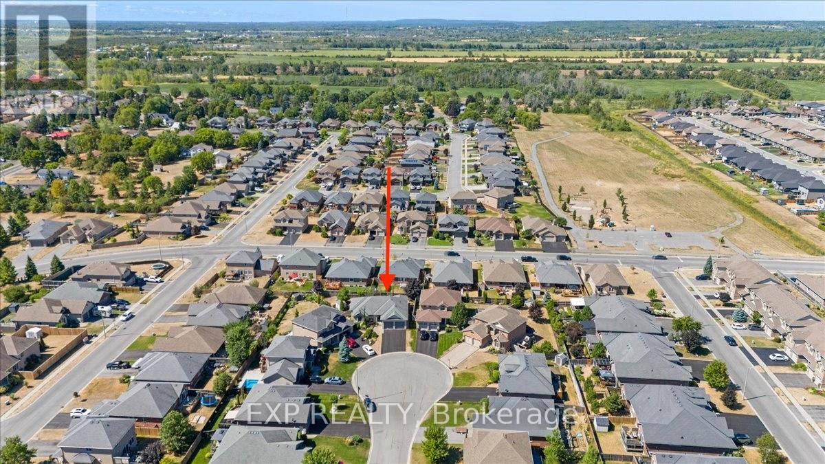 Welcome to this truly one-of-a-kind CUSTOM Duvanco-built bungalow, perfectly nestled at the end of a quiet cul-de-sac in one of the area's most sought-after neighbourhoods. Unlike anything else, this spacious, custom home offers over 2600 sqft of beautifully finished living space on a generous, fully fenced lot ideal for a growing family. With 3 bedrooms on the main floor and 2 more in the bright, finished basement, theres plenty of room for everyone. Walk into the main level open-concept living room. It features a stunning stone feature wall, tray ceiling, pot lights, and hardwood flooring throughout. California shutters add an elegant touch to the main level. The eat-in-kitchen offer quality cabinetry, backsplash, island with a kick plate central vacuum inlet and a walk-in-pantry. Patio doors from the kitchen lead to a raised deck. Step down to the stone patio perfect for summer entertaining. Beautifully landscaped large yard with a hook-up for a hot tub and enough space for a pool. The main level mudroom/laundry offers direct access to the double garage with abundant overhead storage and large garage doors. The main floor primary suite includes a walk-in closet and a 4-piece ensuite bath. Outside, kids can safely play in front of the house with no through traffic, or take a short walk to the nearby park. This home is anything but cookie-cutter, it's a rare opportunity to own something truly special in a family-friendly location. Settlers Ridge Subdivision offers walking trails, a park, wide paved sidewalks, green space and is just minutes to all amenities & the 401. (id:51158)